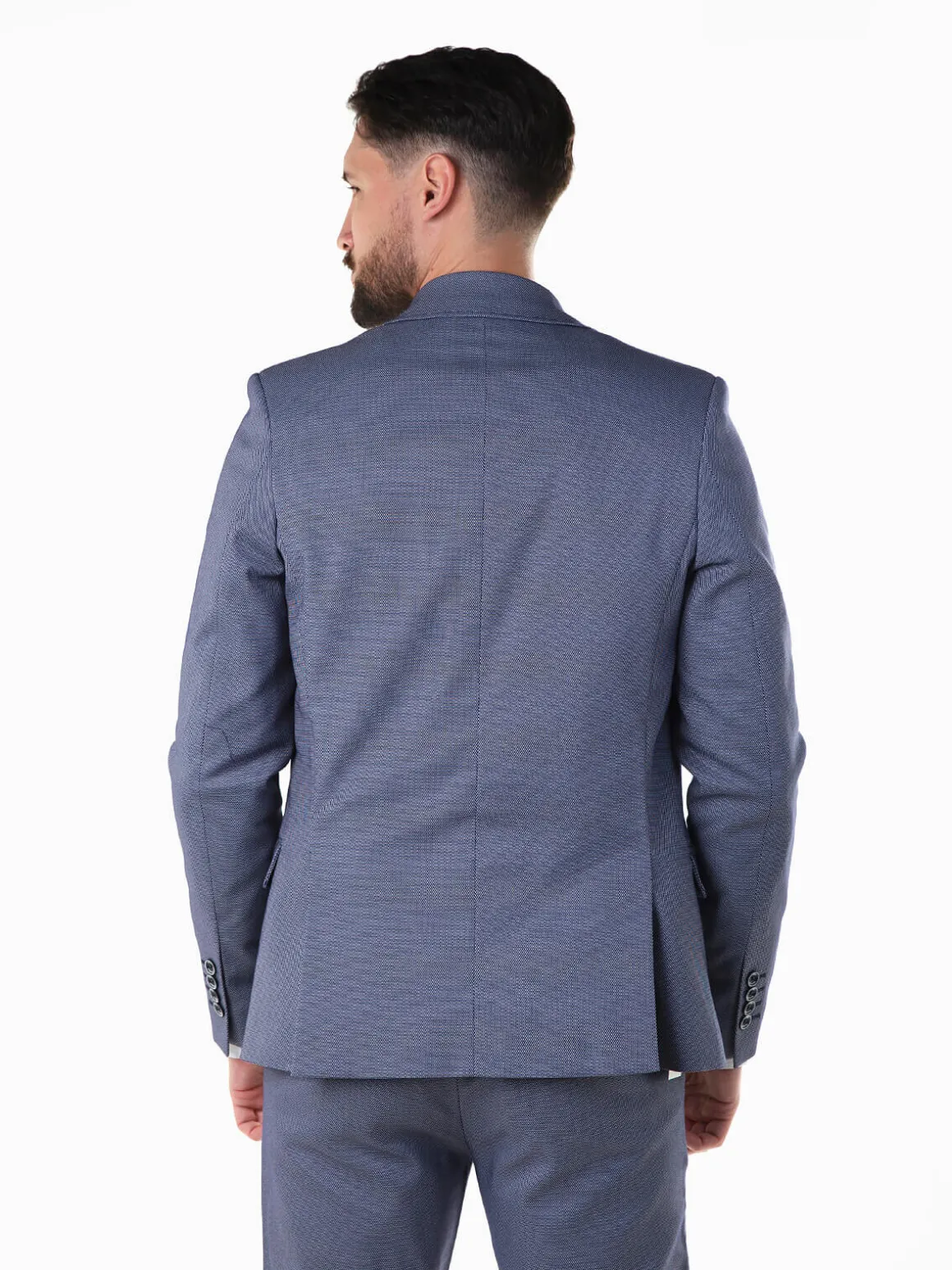 Blazer azul mesclado slim fit para homem. Blazer com manga comprida e punhos abotoados. Gola de abas e lapelas. 2 bolsos e 1 interior. Aperto frontal de dois botões. Altura do Modelo: 180 cm | Tamanho: M