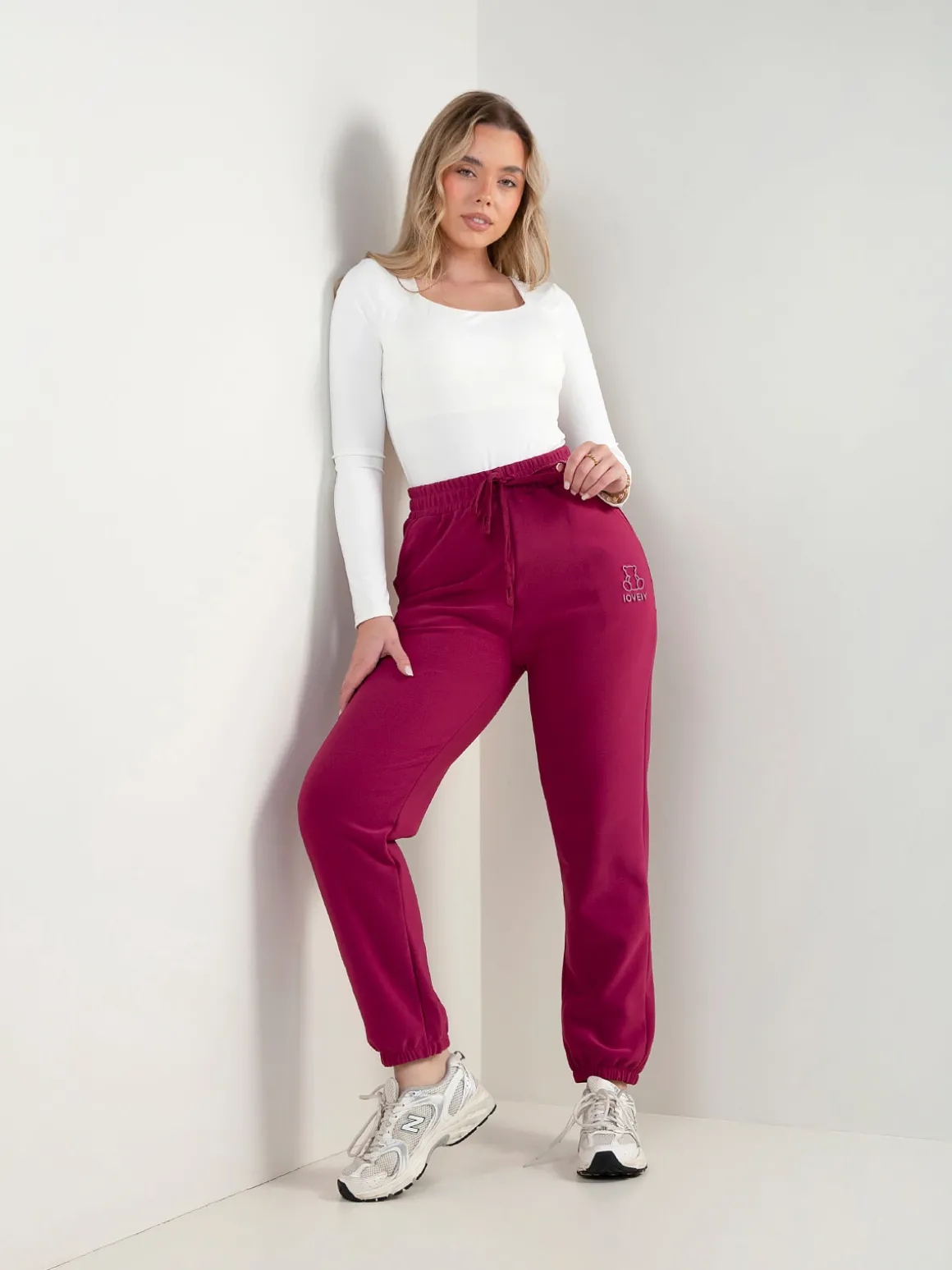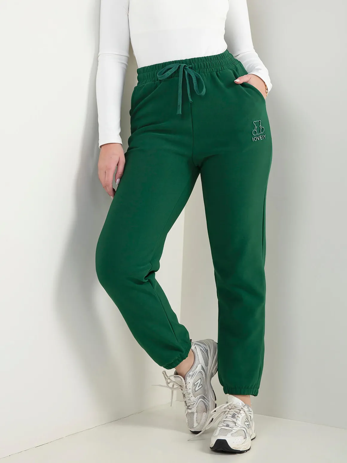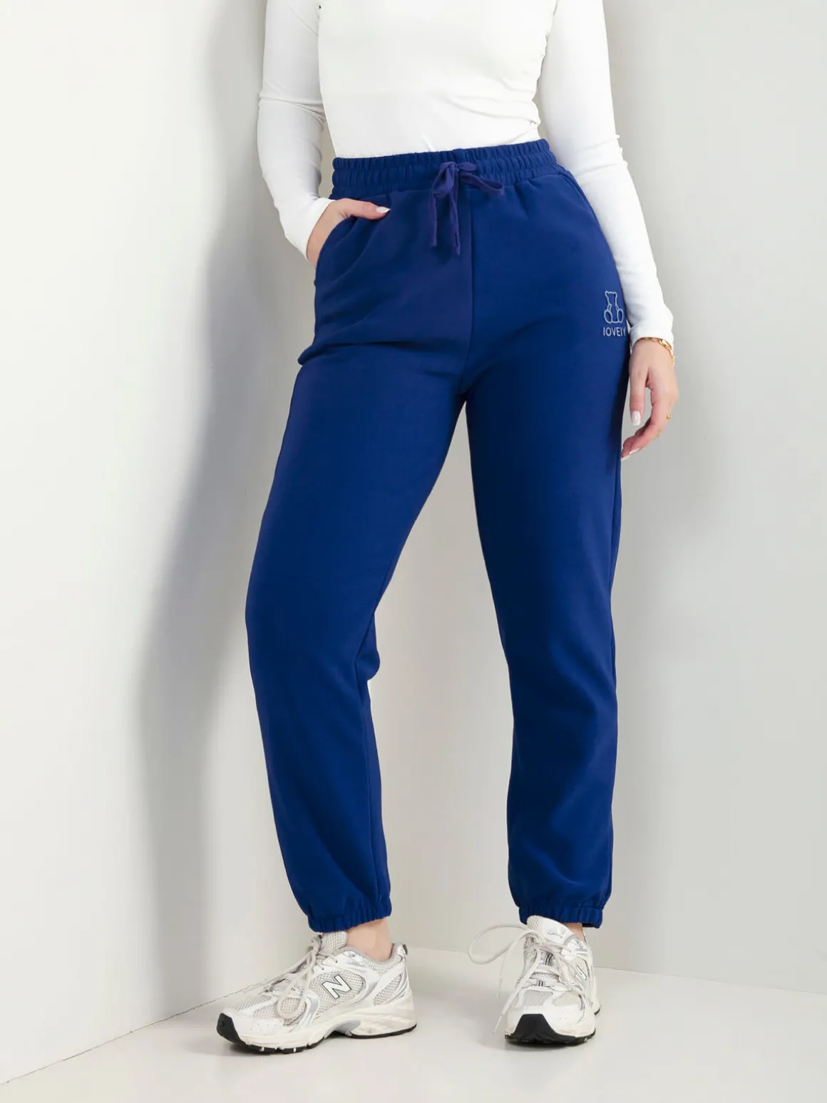 Calças comfy com cintura elástica e cordão ajustável. Têm 2 bolsos laterais e bordado de urso na perna. Interior cardado. Perfeitas para looks descontraídos do dia a dia.Altura da Modelo: 166 cm | Tamanho: M/L