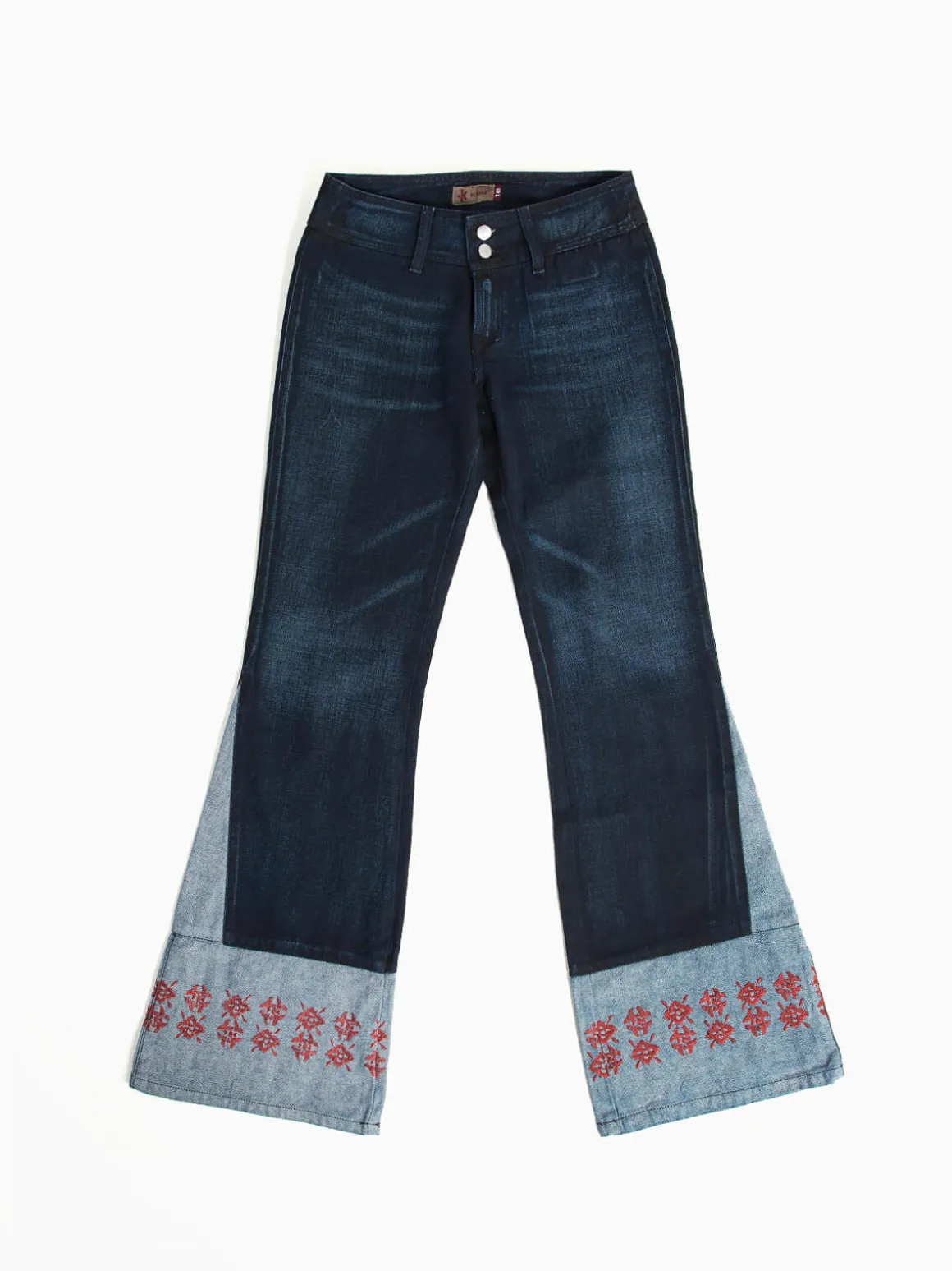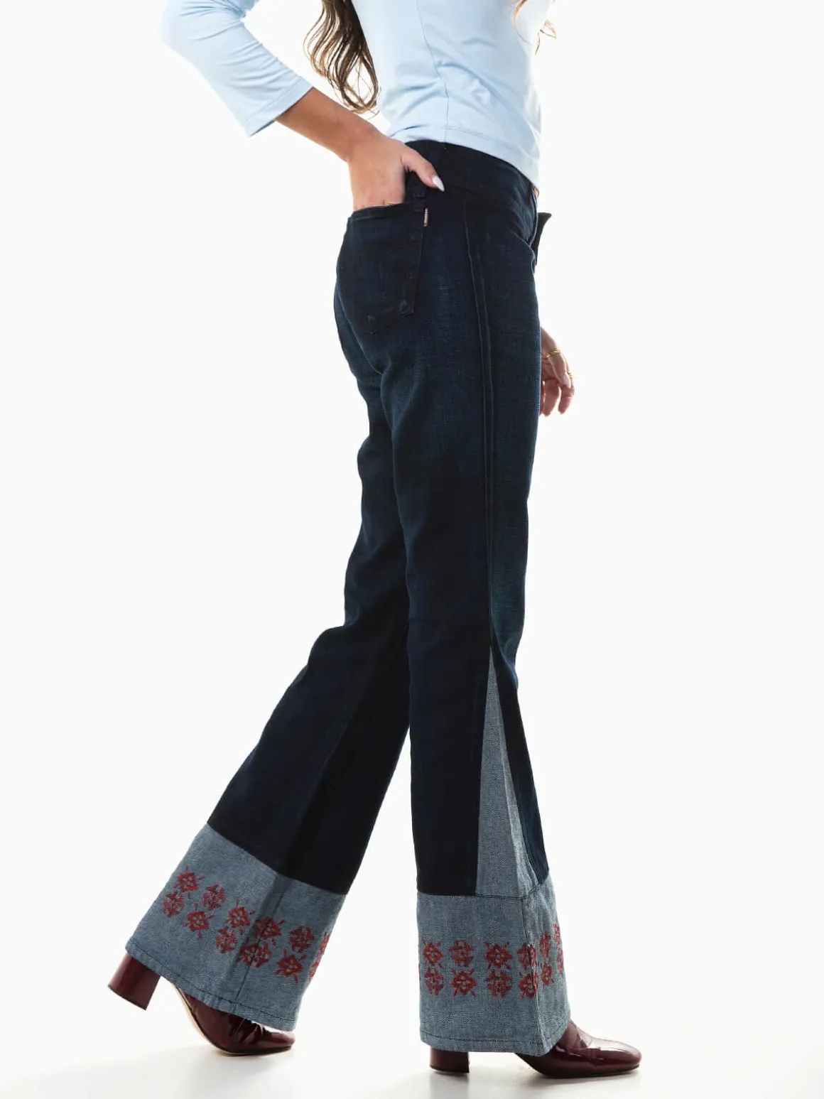 Calças ganga boca de sino com bordados