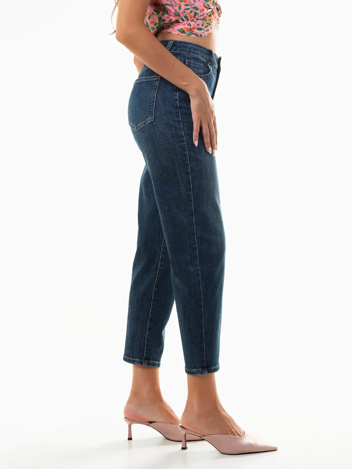 Calças ganga boyfriend cintura alta