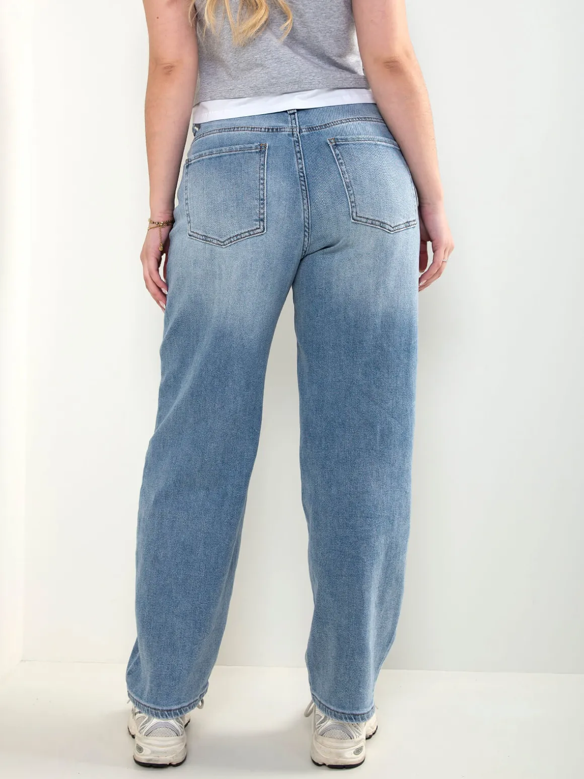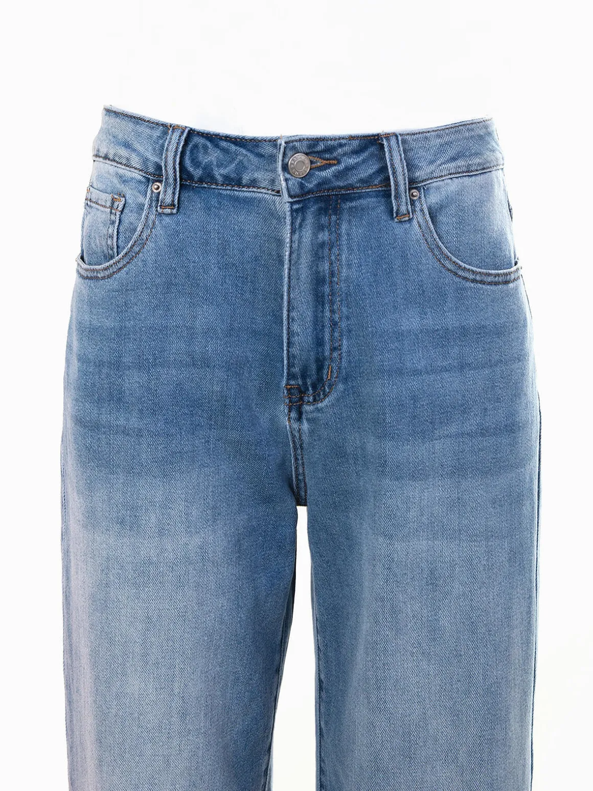Calças de ganga boyfriend com cintura alta, cinco bolsos e aperto com fecho éclair e botão. Modelo confortável e versátil para looks casuais.Altura da Modelo: 166 cm | Tamanho: S