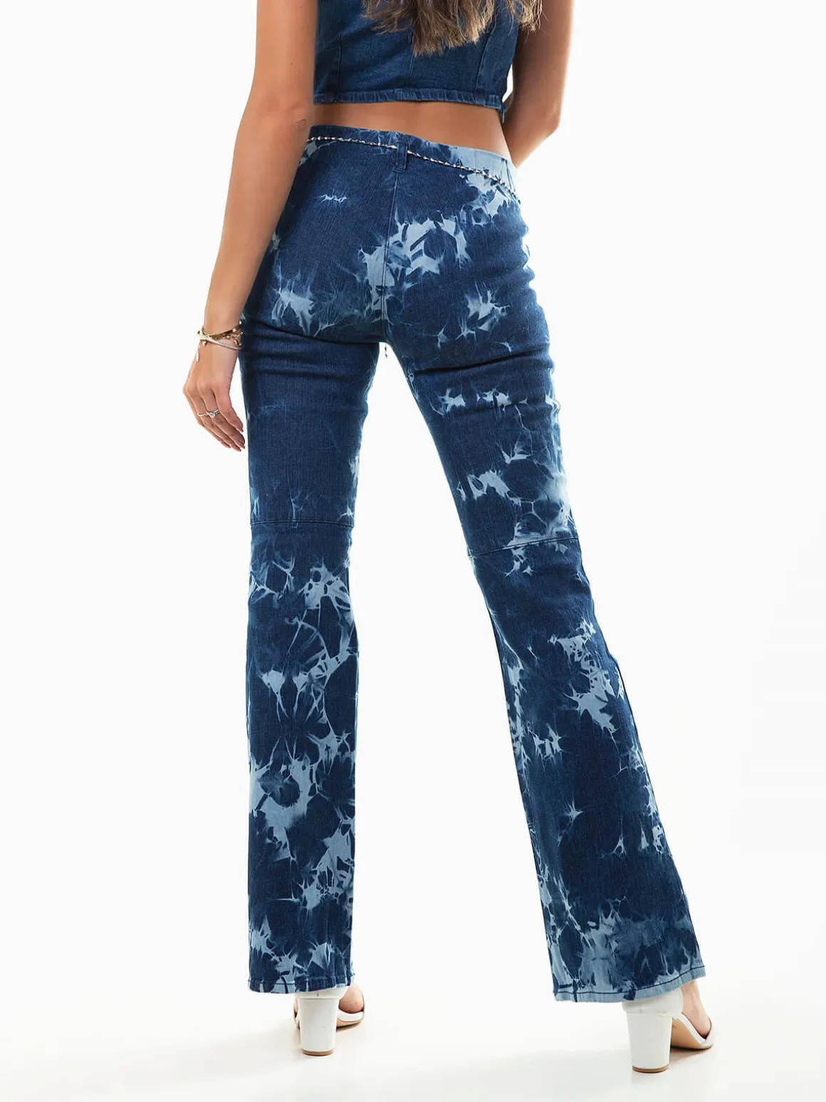 Calças ganga flare manchadas