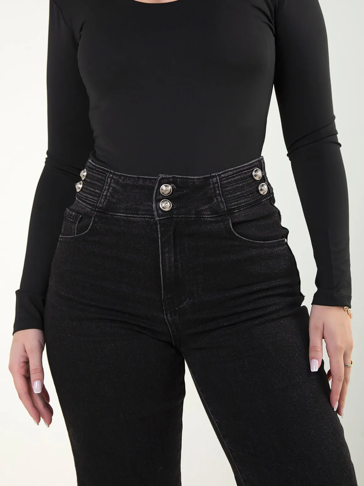 Calças ganga pretas com botões