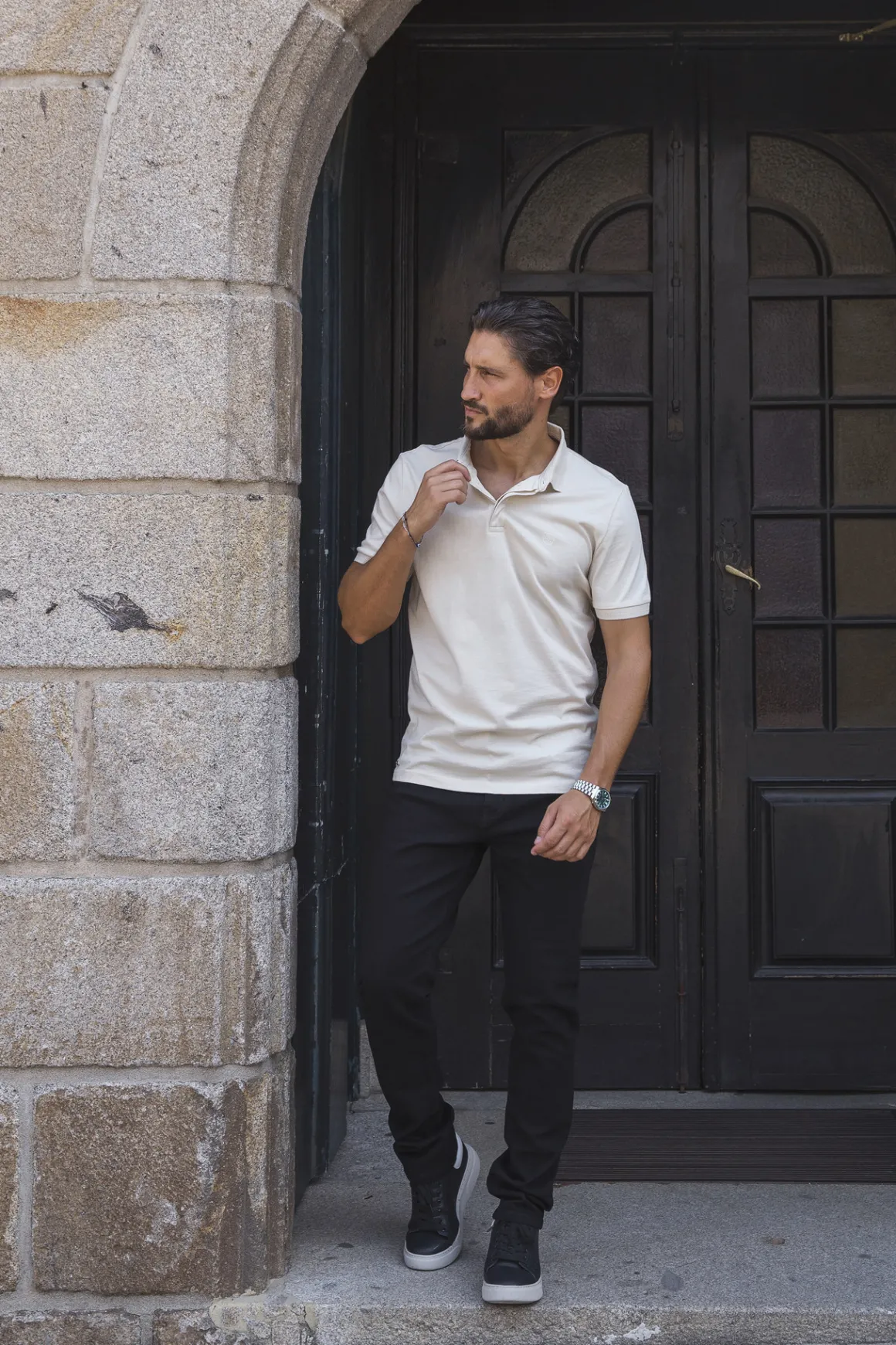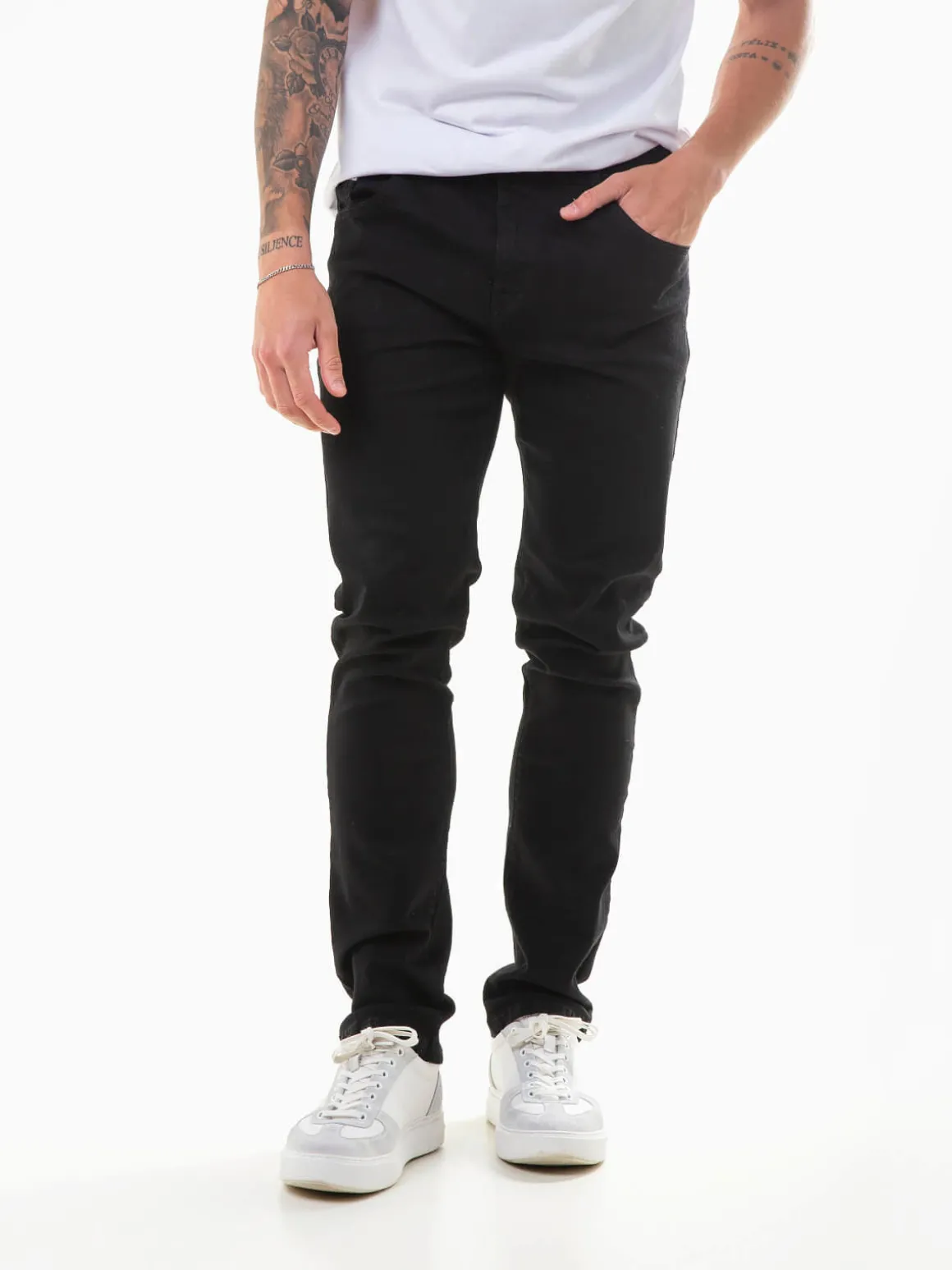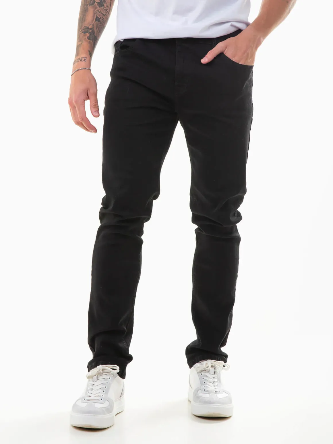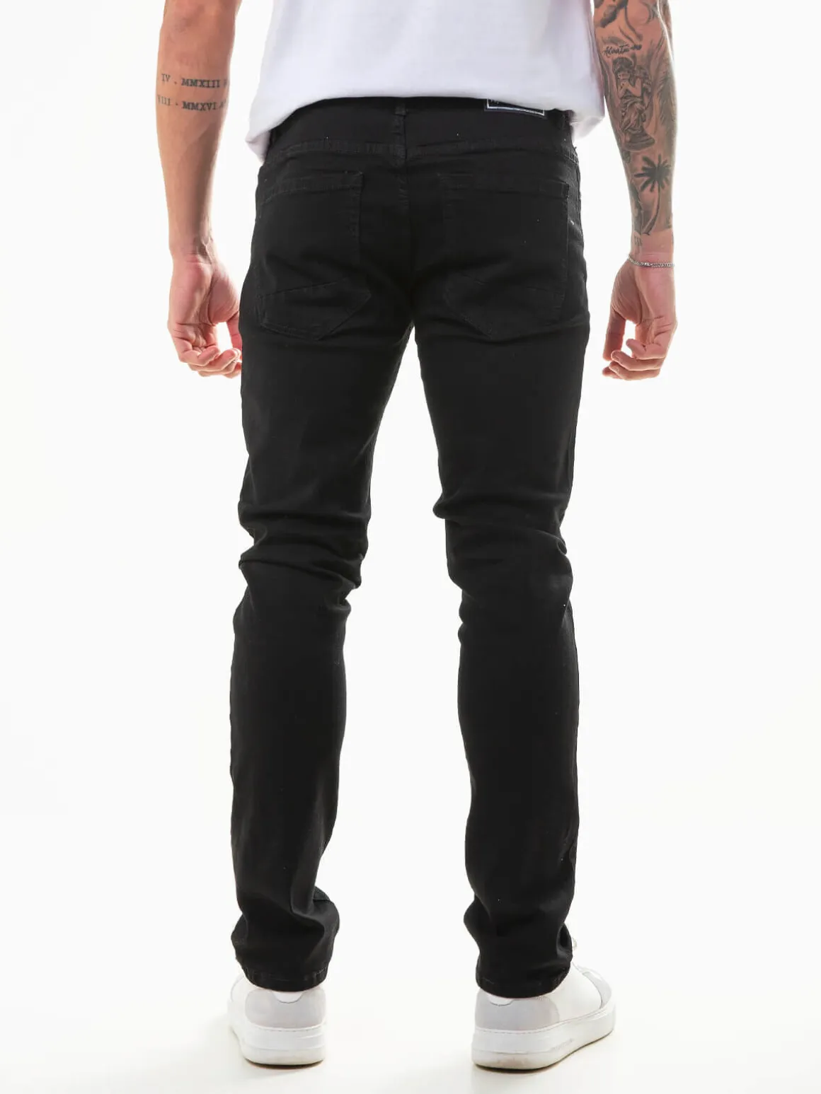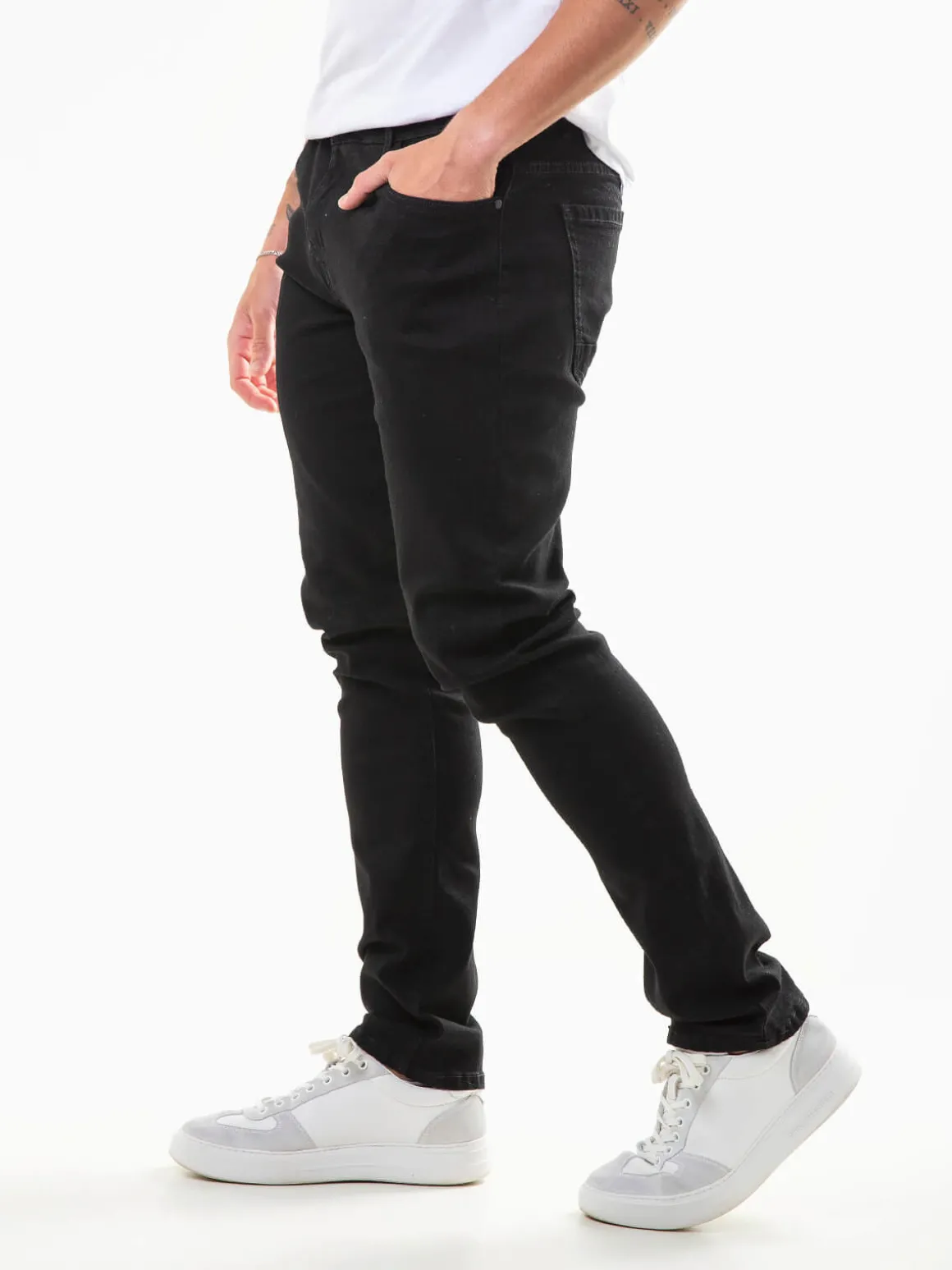 Calças de ganga pretas regular fit para homem. Jeans elásticas com 5 bolsos. Aperto de fecho éclair e botão.Altura do Modelo: 182 cm | Tamanho: 42