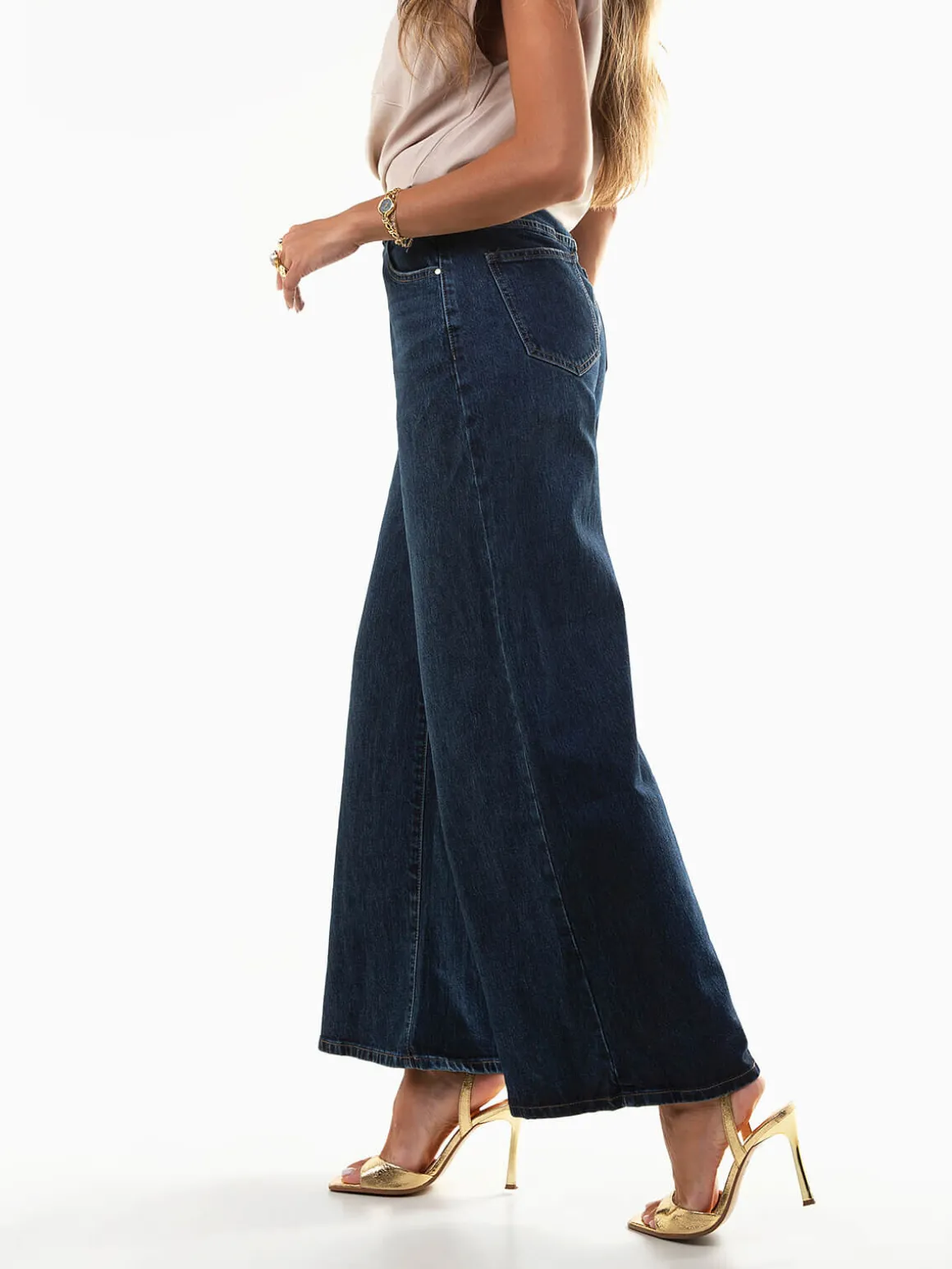 Calças ganga wide leg cintura alta