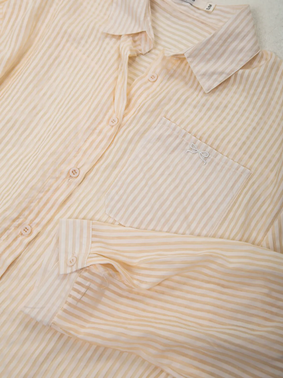 Camisa bege semitransparente às riscas