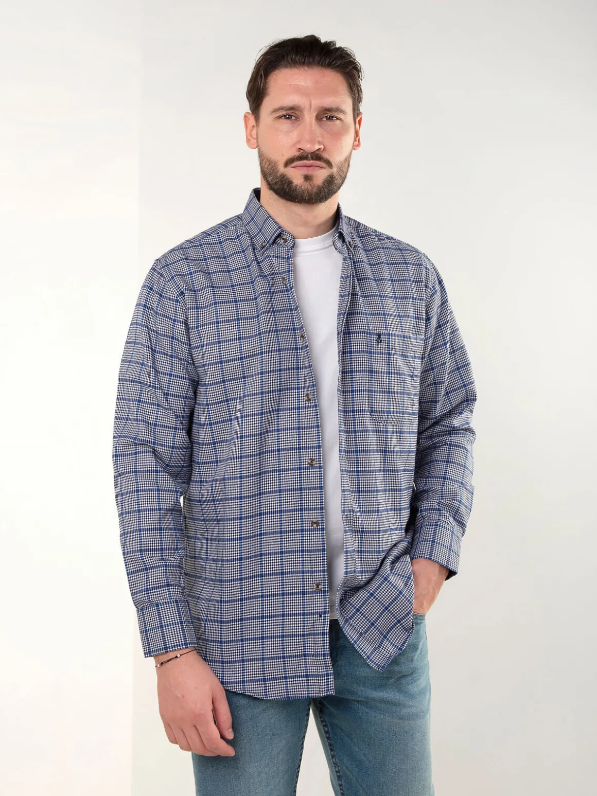 Camisa xadrez azul com bordado
