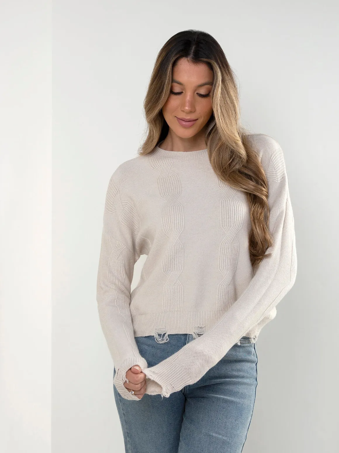 Camisola de malha com padrão em relevo na frente e acabamento desfiado na bainha. Um modelo atual, com atitude, perfeito para dar destaque ao look sem esforço.Altura da Modelo: 175 cm | Tamanho: Tamanho Único