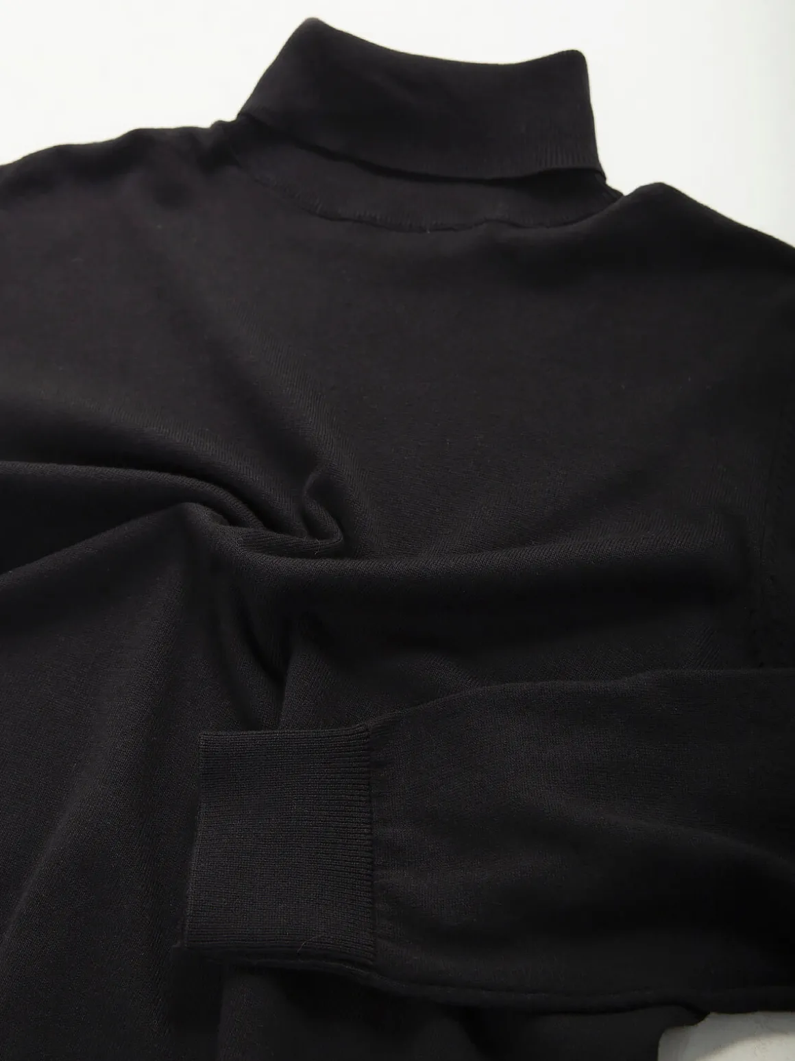 Camisola de malha fina para homem com gola alta de toque suave e corte confortável. Modelo versátil, perfeito para combinar com calças de alfaiataria ou jeans escuros. Altura do Modelo: 180 cm | Tamanho: L
