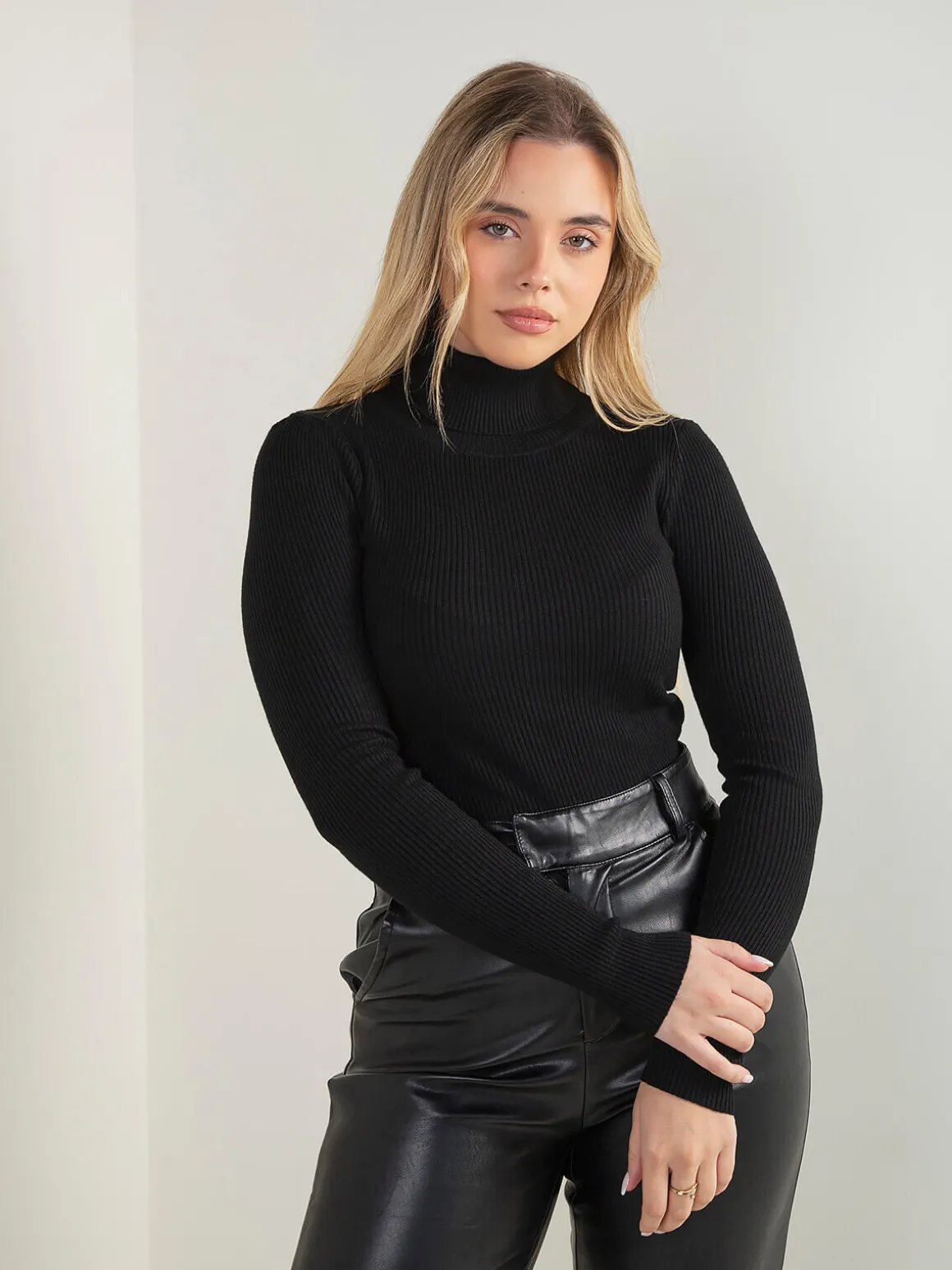 Camisola de malha canelada fina com gola alta e manga comprida. Modelo confortável, suave ao toque e com um caimento ajustado que funciona tanto em looks do dia a dia como em combinações mais sofisticadas.Altura da Modelo: 166 cm | Tamanho: S/M
