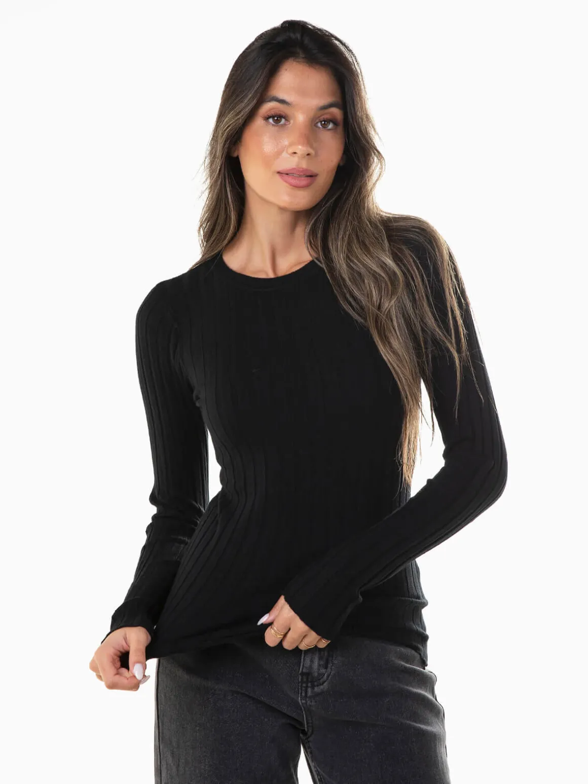 Camisola de malha canelada confecionada com mistura de viscose para maior conforto. Camisola manga comprida com decote redondo acabado em nervuras. Altura da Modelo: 175 cm | Tamanho: Tamanho Único