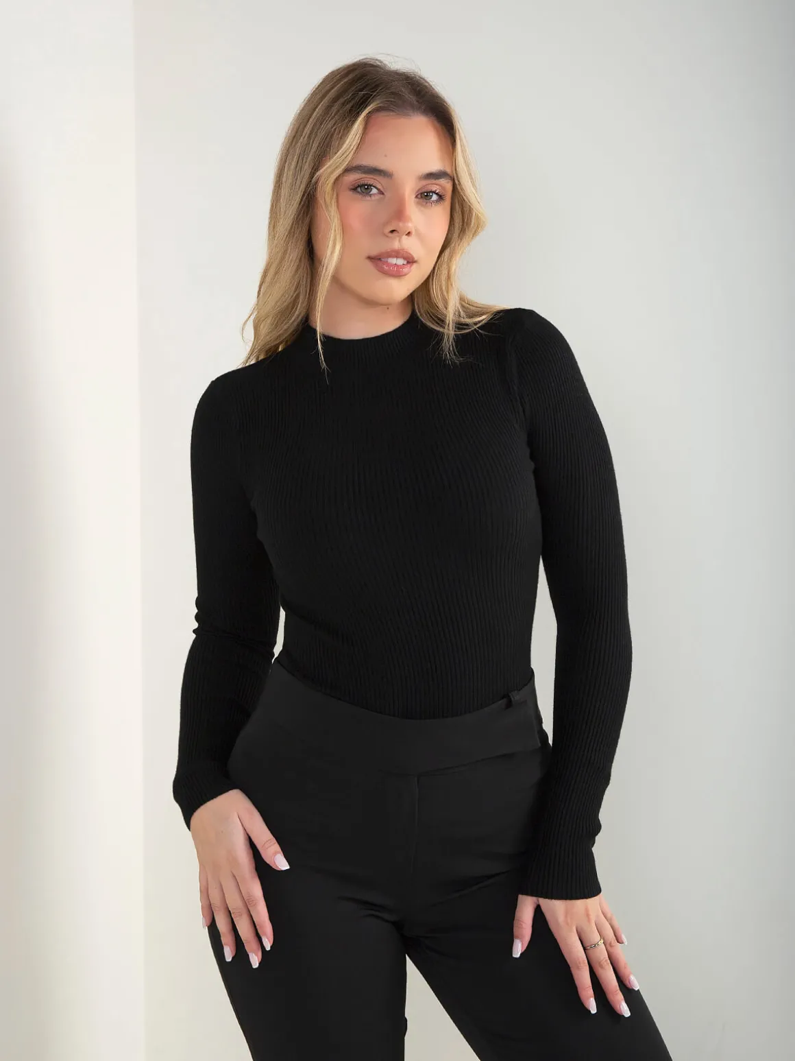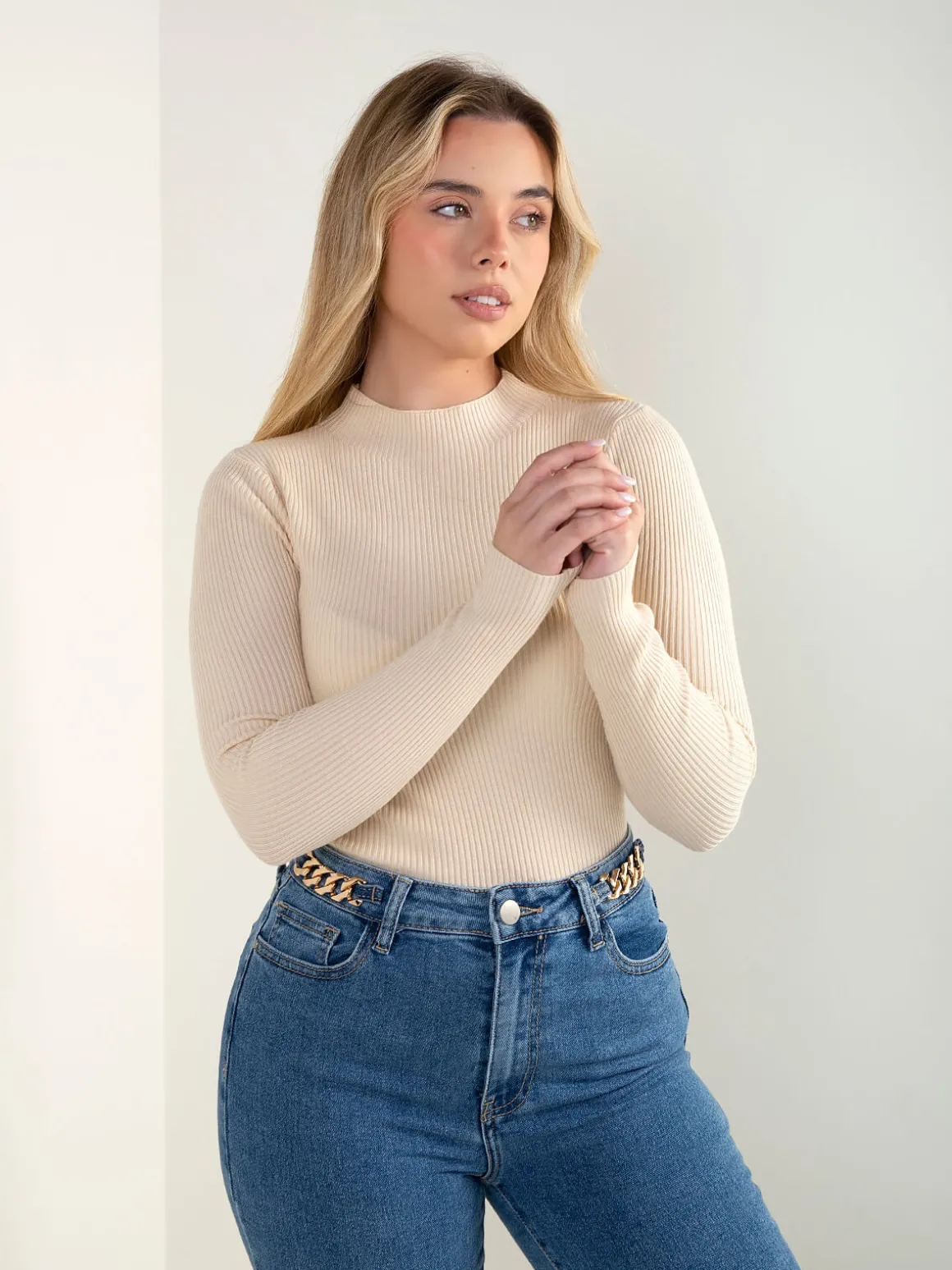 Camisola malha canelada com gola perkins e manga comprida. Modelo justo e confortável, ideal para looks simples e urbanos no dia a dia.Altura da Modelo: 166 cm | Tamanho: S/M