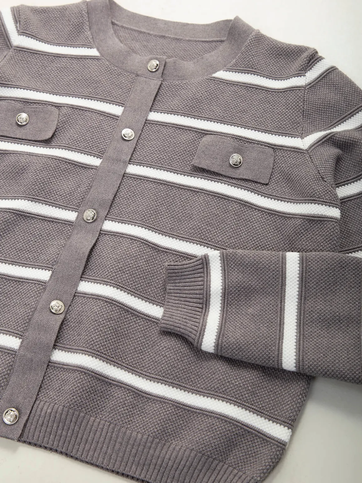 Camisola de malha para senhora com efeito casaco, ideal para looks versáteis e modernos. Apresenta manga comprida, decote redondo e botões decorativos à frente, com acabamentos canelados que garantem conforto e estilo. Um essencial para combinar com calças, saias ou jeans, perfeito para criar outfits atuais e cheios de personalidade.Altura da Modelo: 175 cm | Tamanho: Tamanho Único