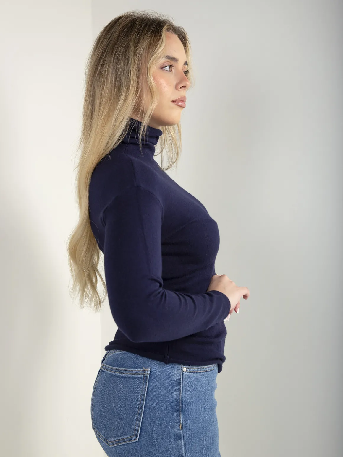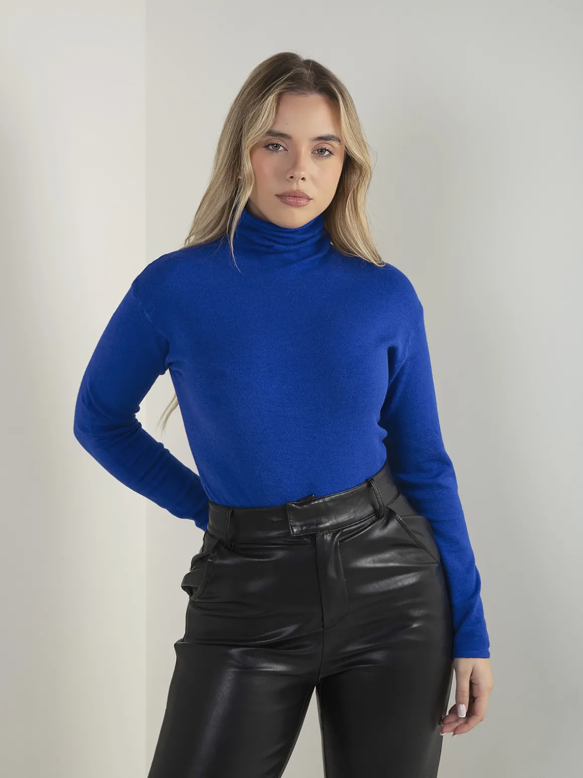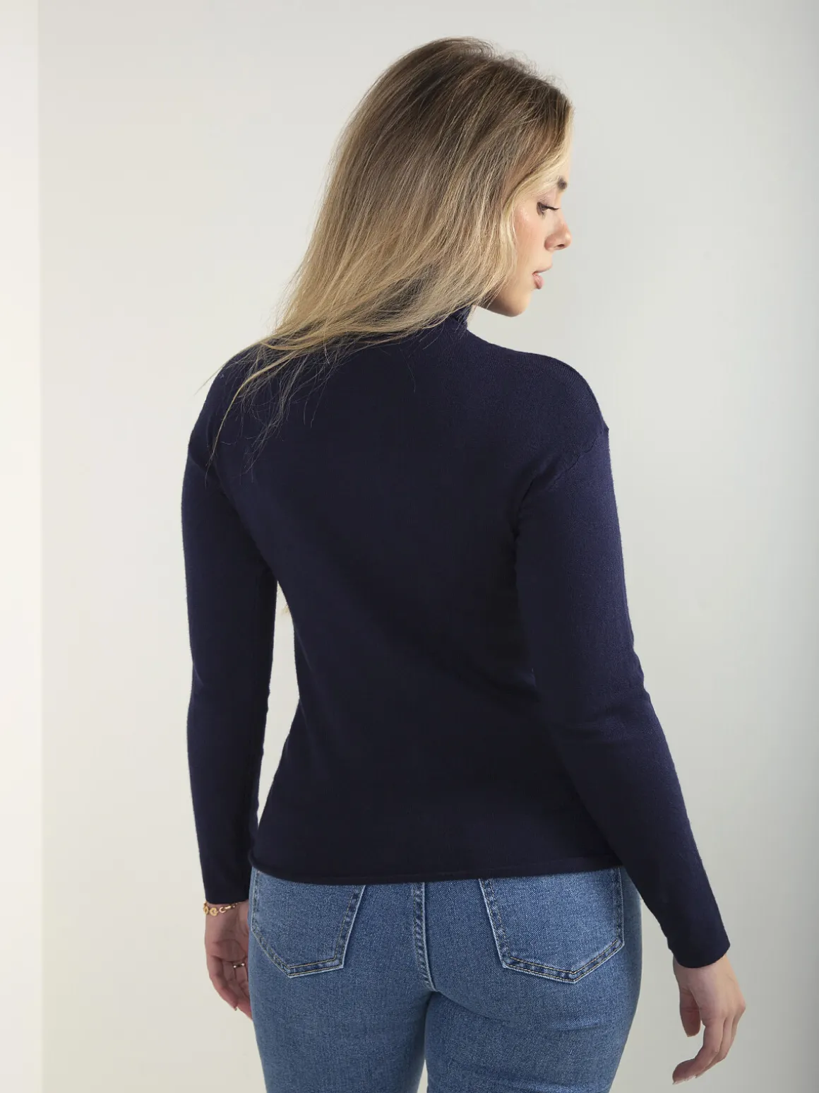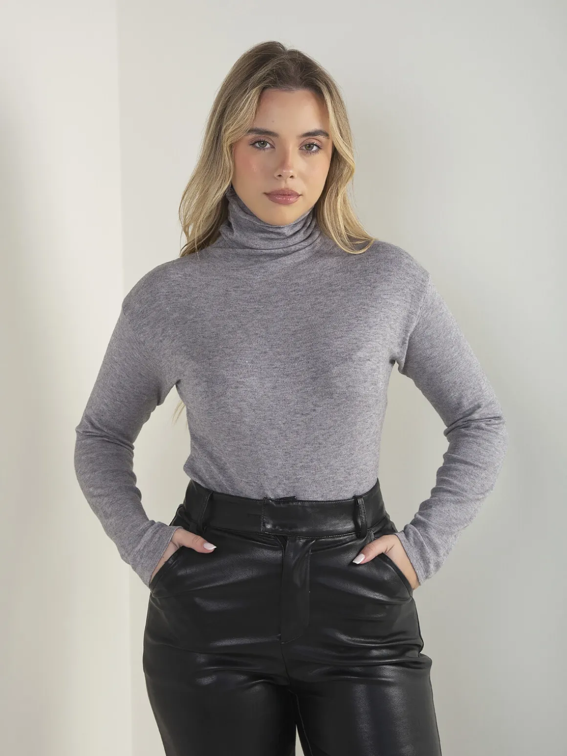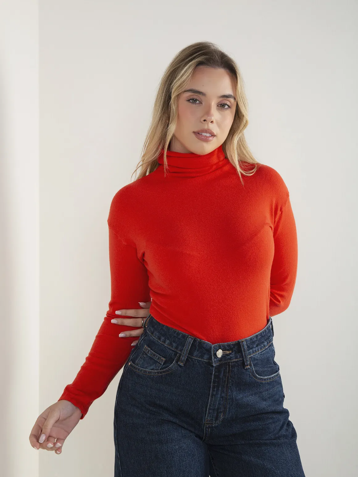 Camisola de malha fina com gola rolling, manga comprida e corte confortável. Modelo básico e versátil, fácil de conjugar no dia a dia.Altura da Modelo: 166 cm | Tamanho: S/M