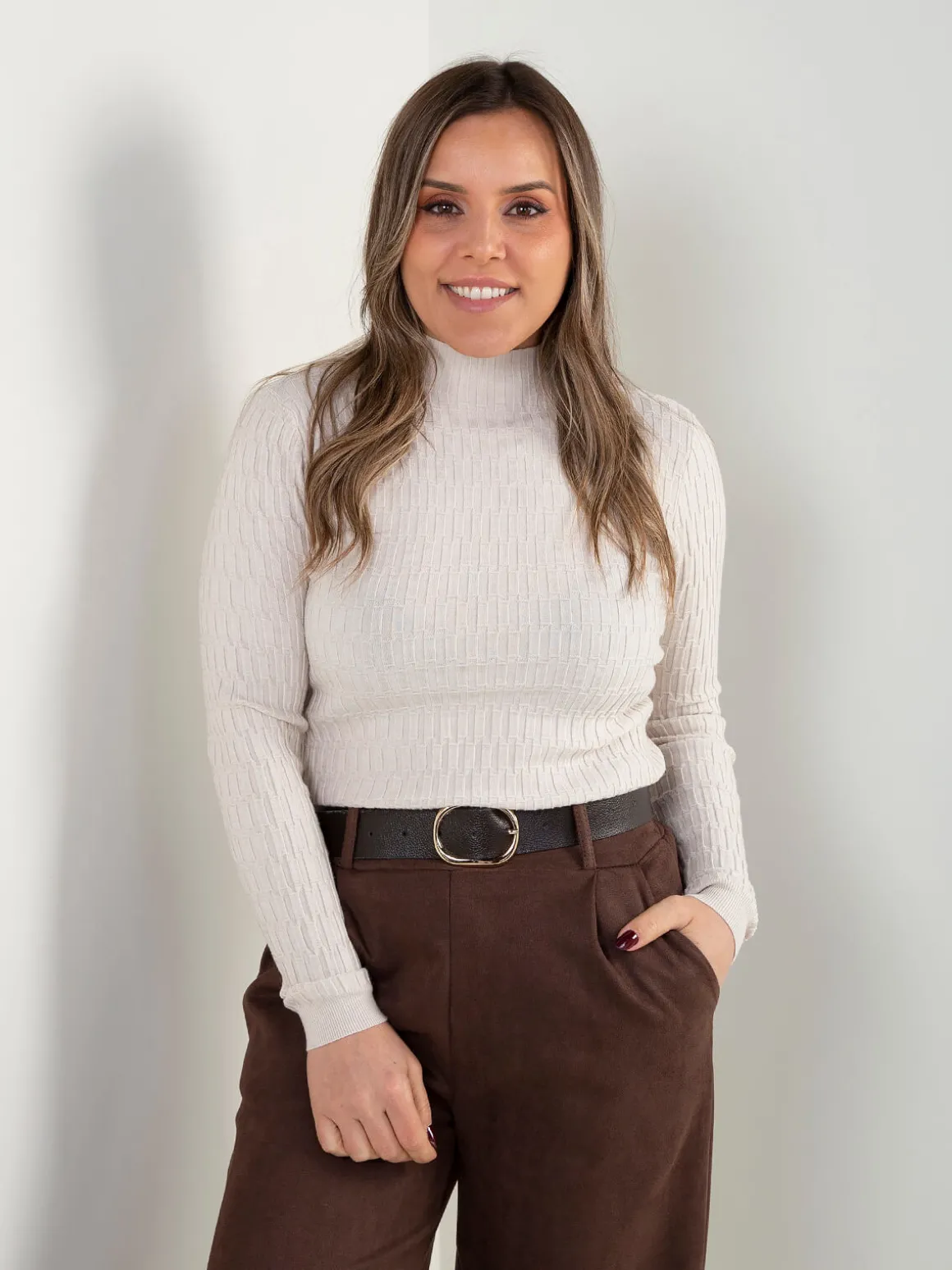 Camisola de malha com textura geométrica em relevo e gola subida. Modelo de manga comprida, com punhos e gola canelados. Um essencial versátil para looks de meia-estação, fácil de conjugar tanto em coordenados mais clássicos como em combinações mais modernas.Altura da Modelo: 160 cm | Tamanho: Tamanho Único