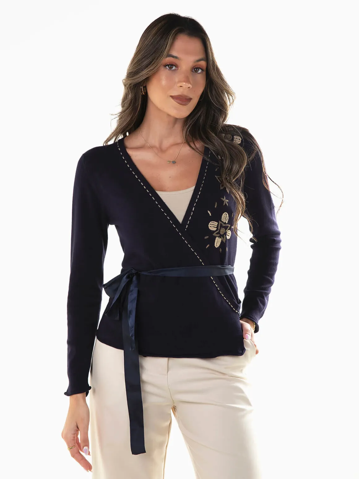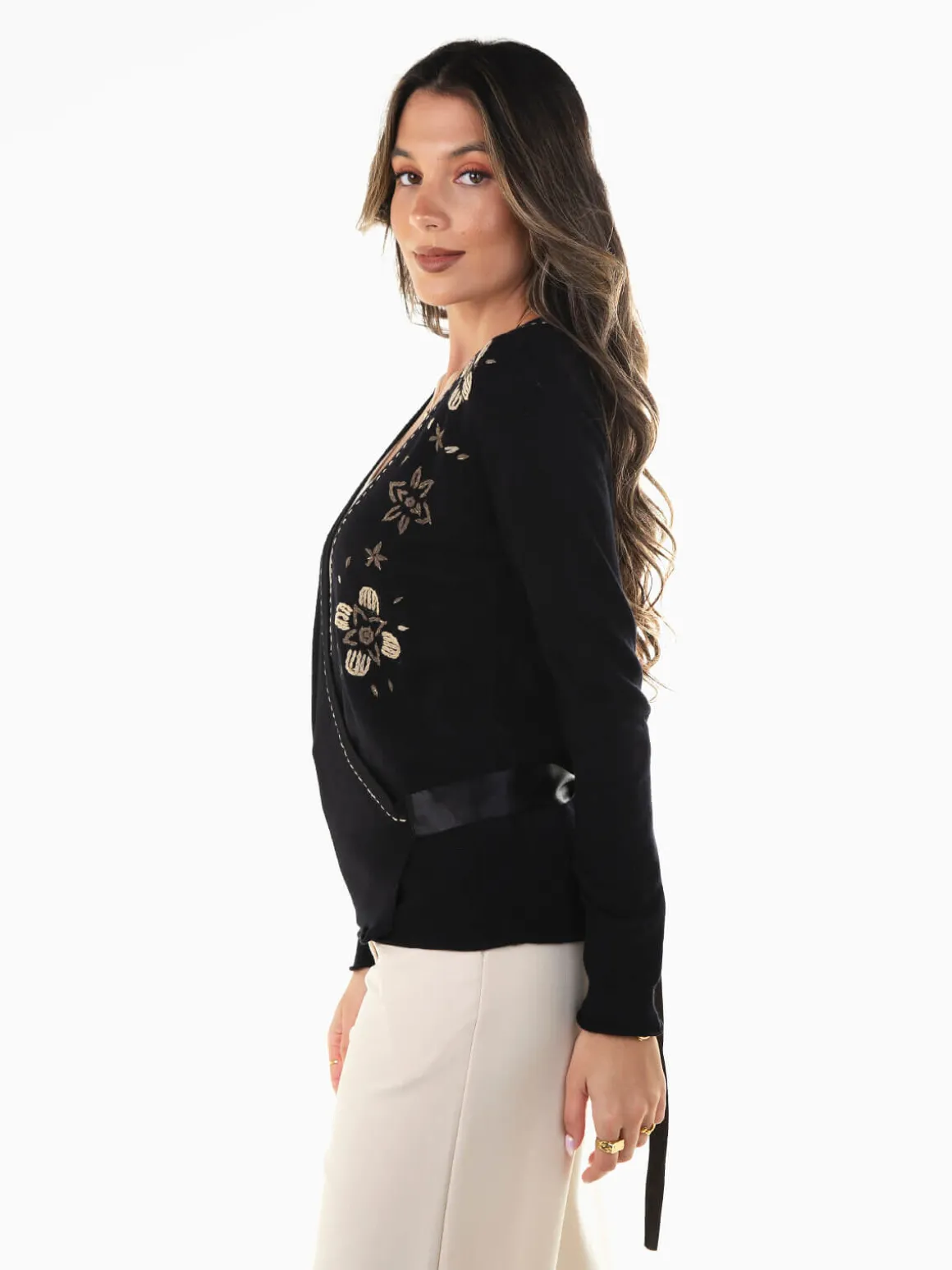 Casaco malha com bordados