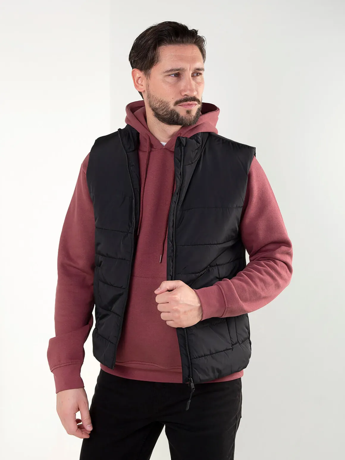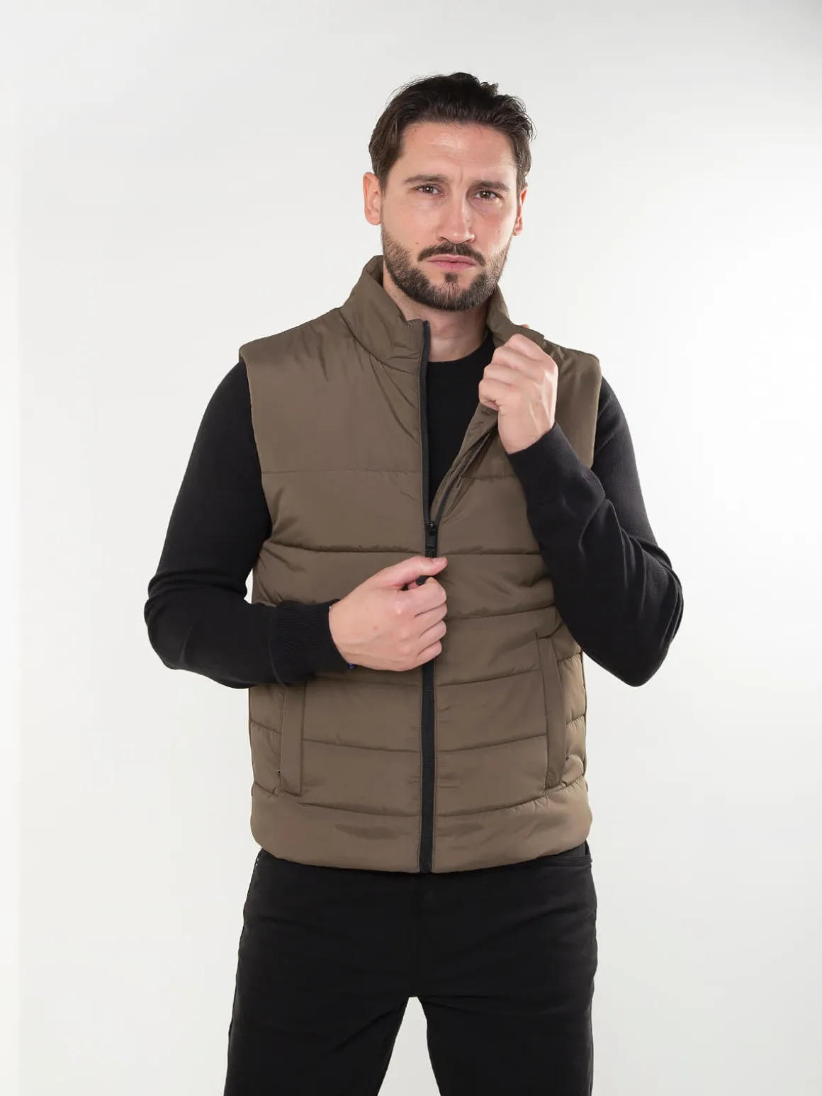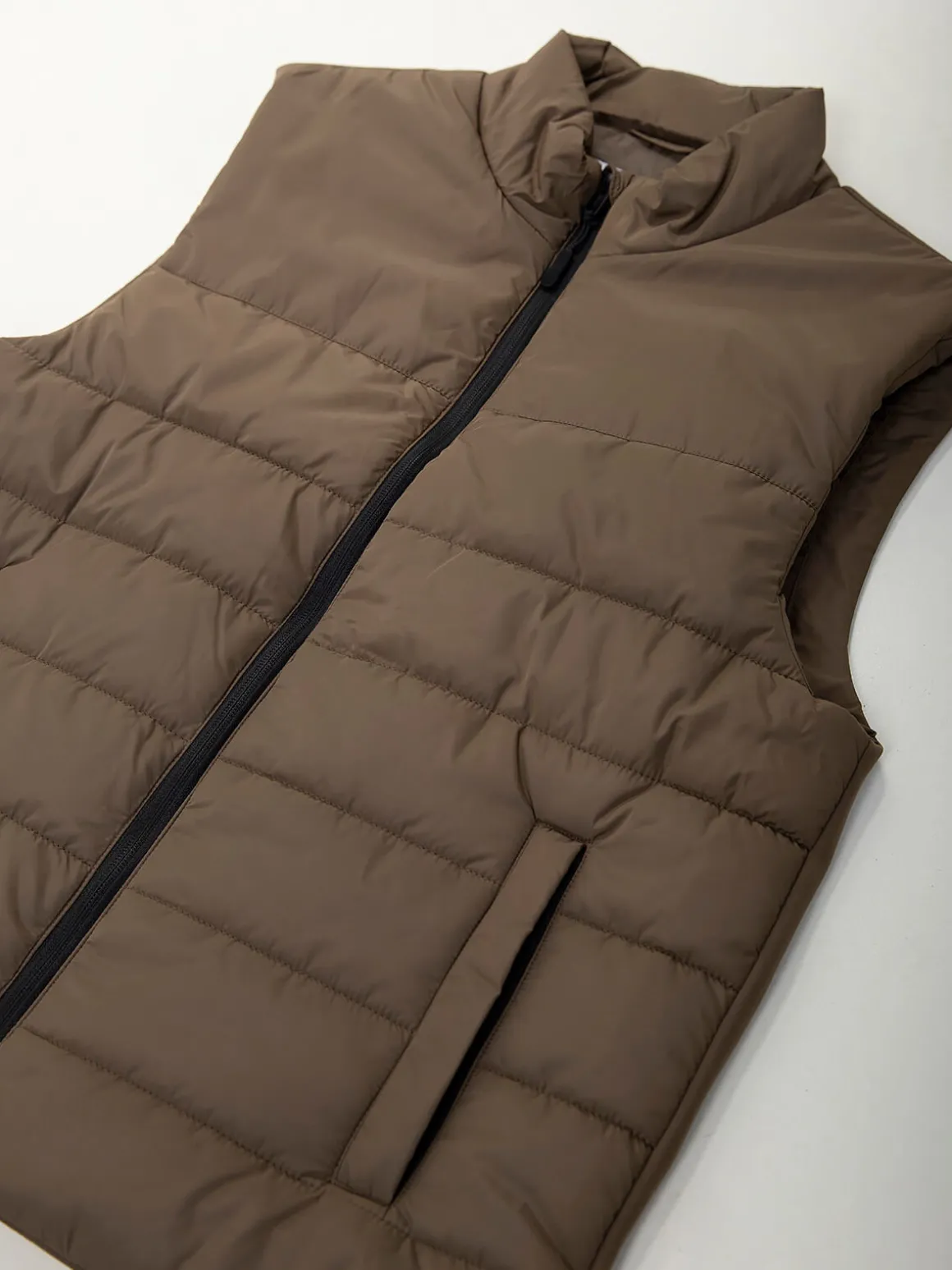 Colete acolchoado em tecido leve, com fecho zíper e 2 bolsos laterais. Modelo confortável, prático e com proteção para chuva ligeira.Altura do Modelo: 180 cm | Tamanho: M