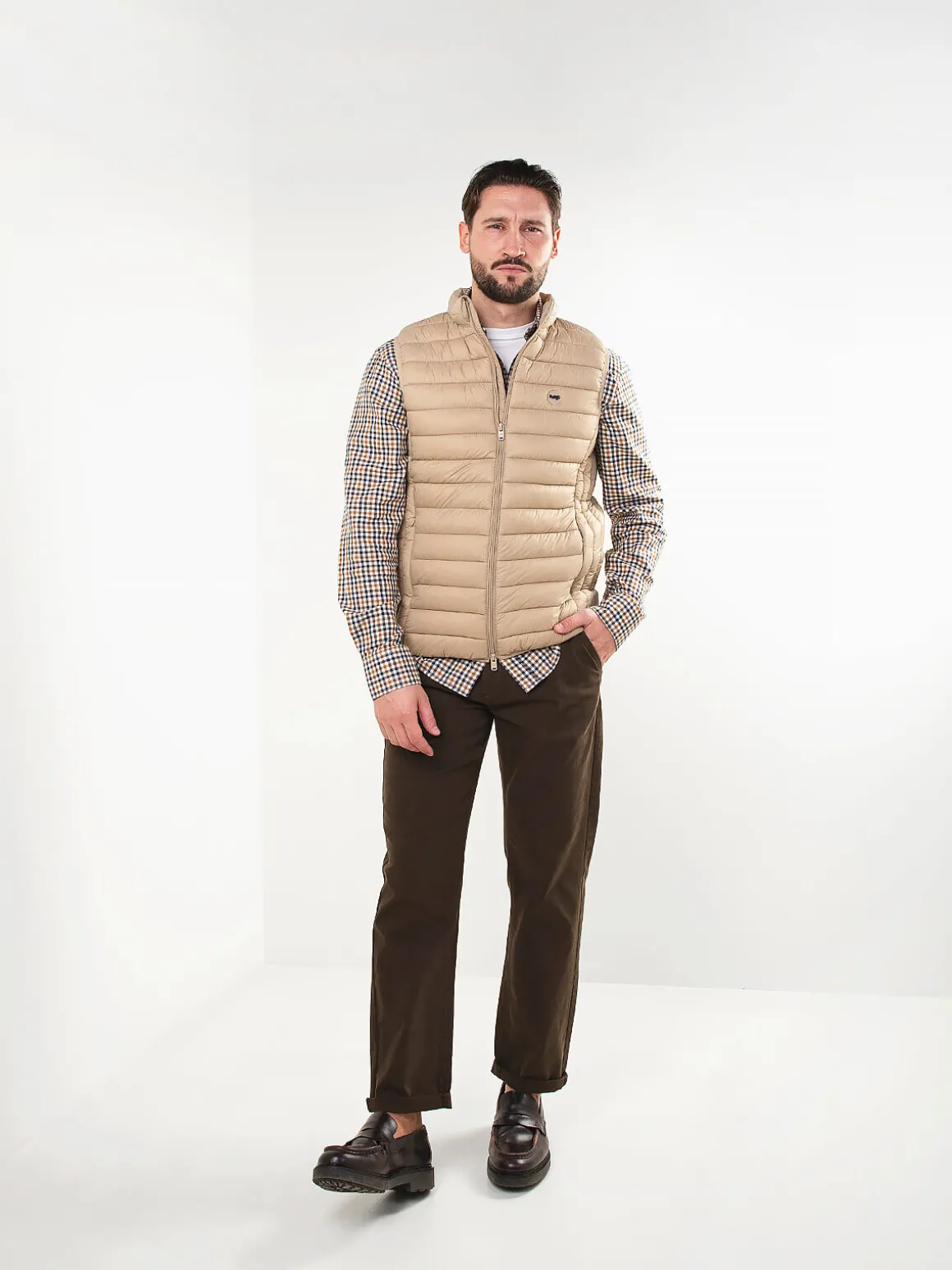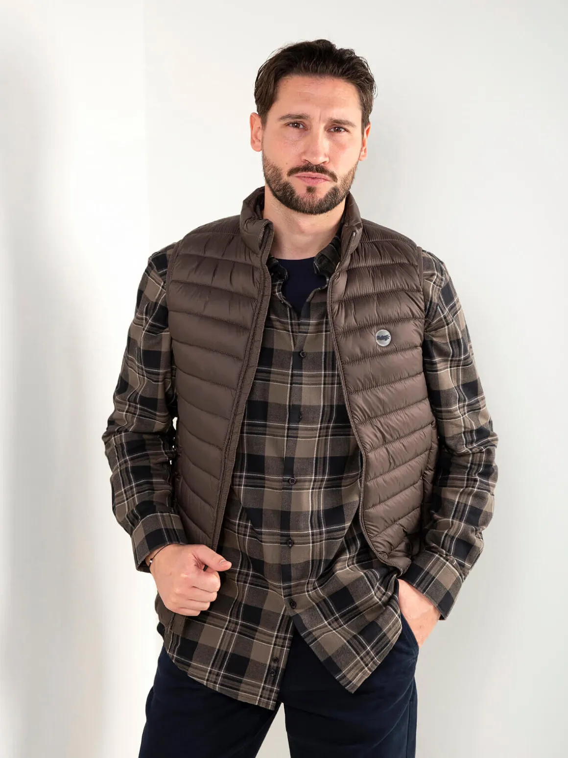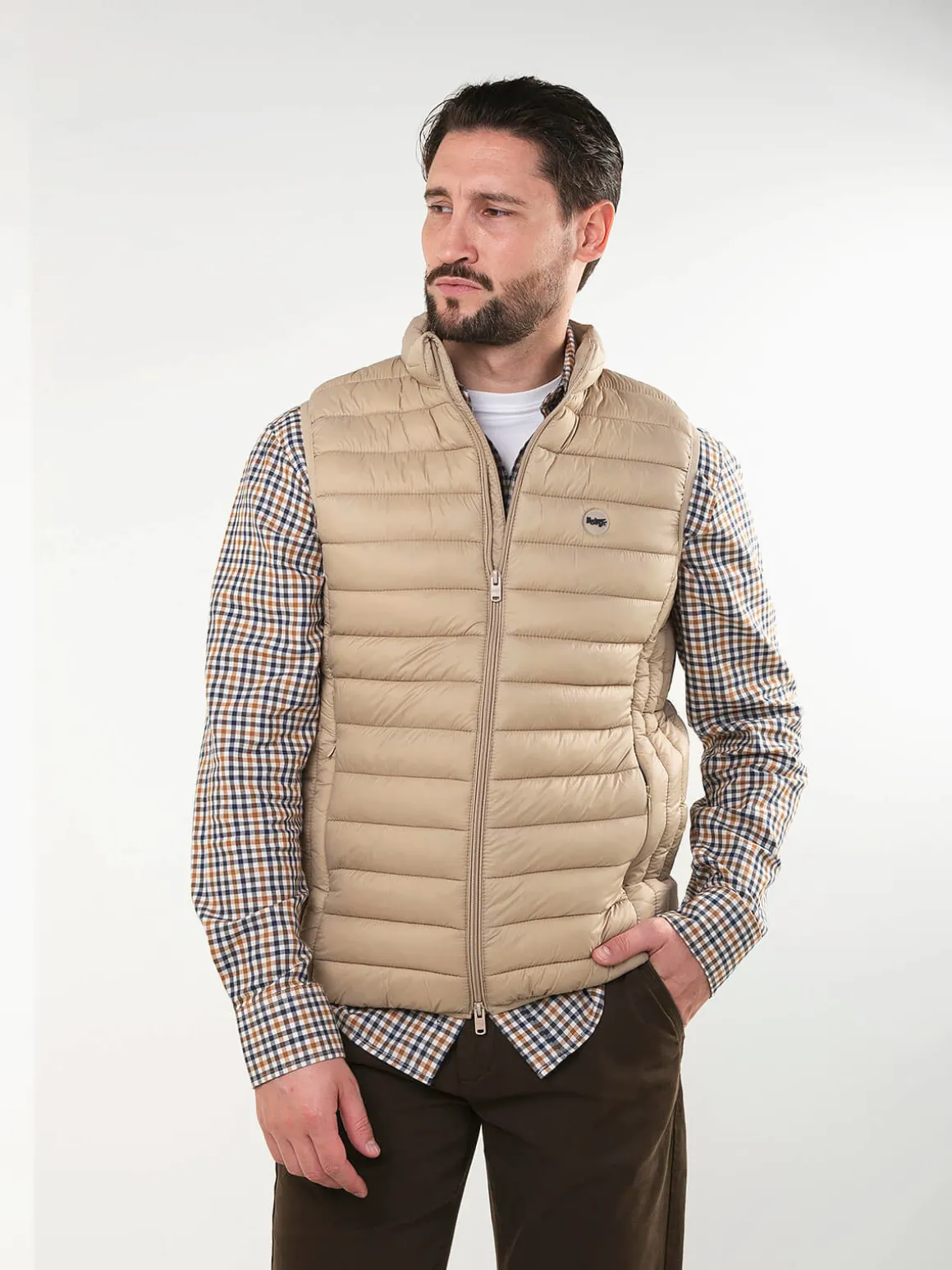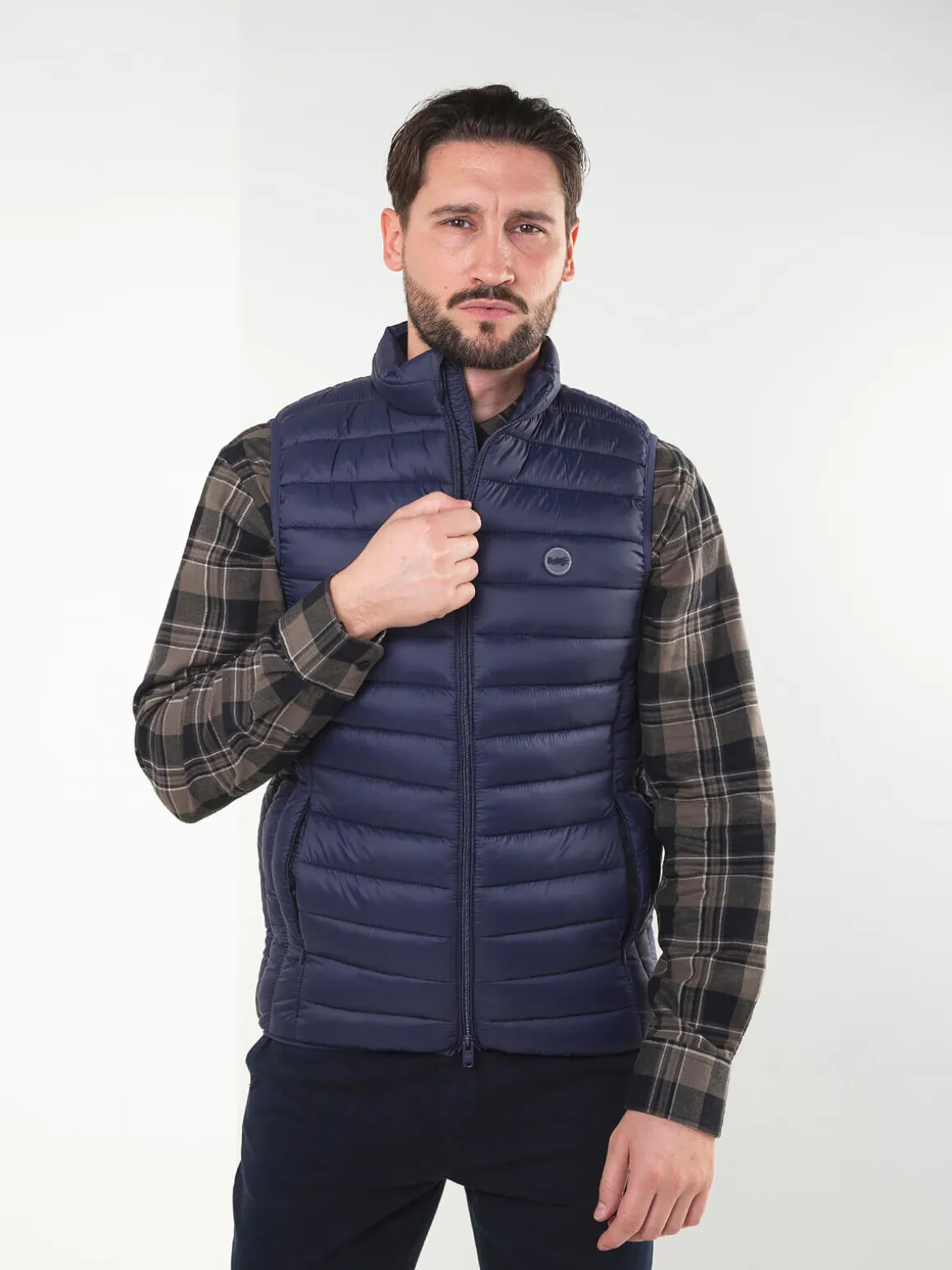 Colete acolchoado leve com gola subida e fecho em zíper. Modelo confortável, fácil de usar no dia a dia e perfeito para sobrepor em looks casuais. Inclui bolsos laterais discretos.Altura do Modelo: 180 cm | Tamanho: L