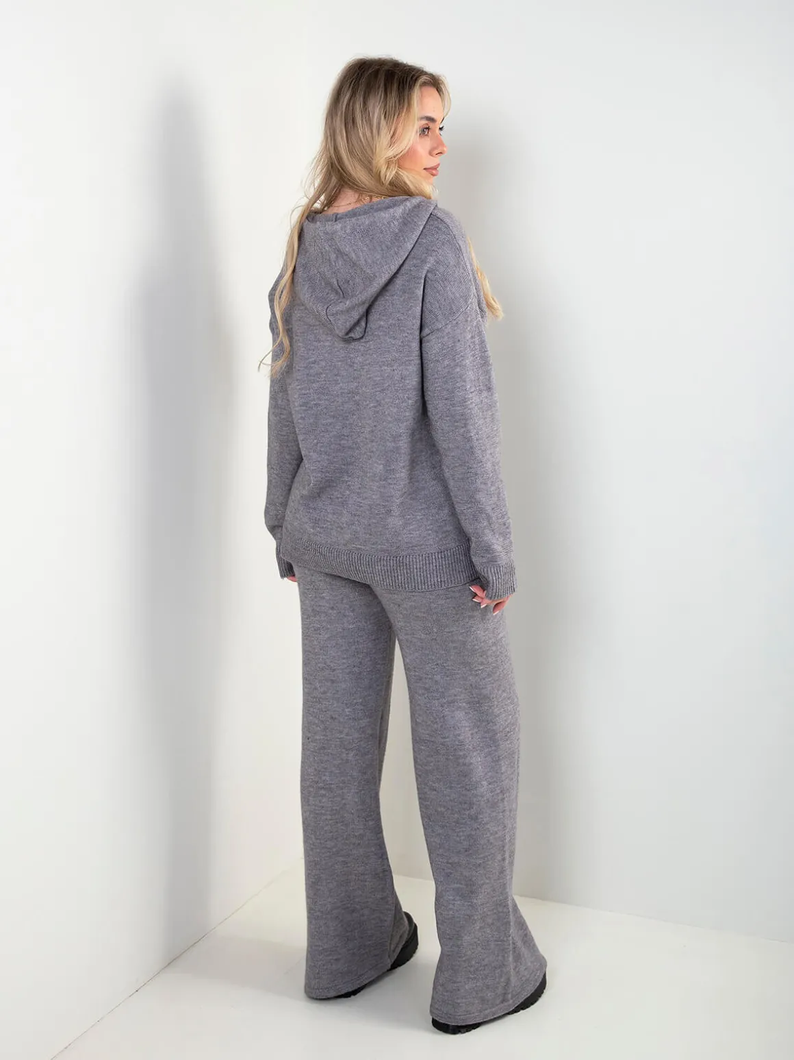Conjunto de senhora em malha composto por sweatshirt com capuz e calças de corte fluido. Sweatshirt de manga comprida com acabamento canelado e detalhe frontal. Calças confortáveis, ideais para looks descontraídos e atuais, perfeitas para o dia a dia.Altura da Modelo: 166 cm | Tamanho: Tamanho Único