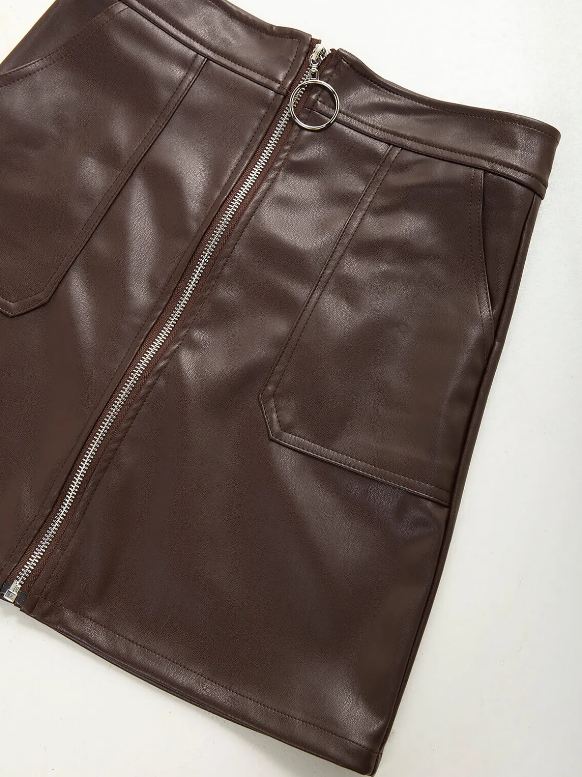 Saia curta efeito pele com fecho