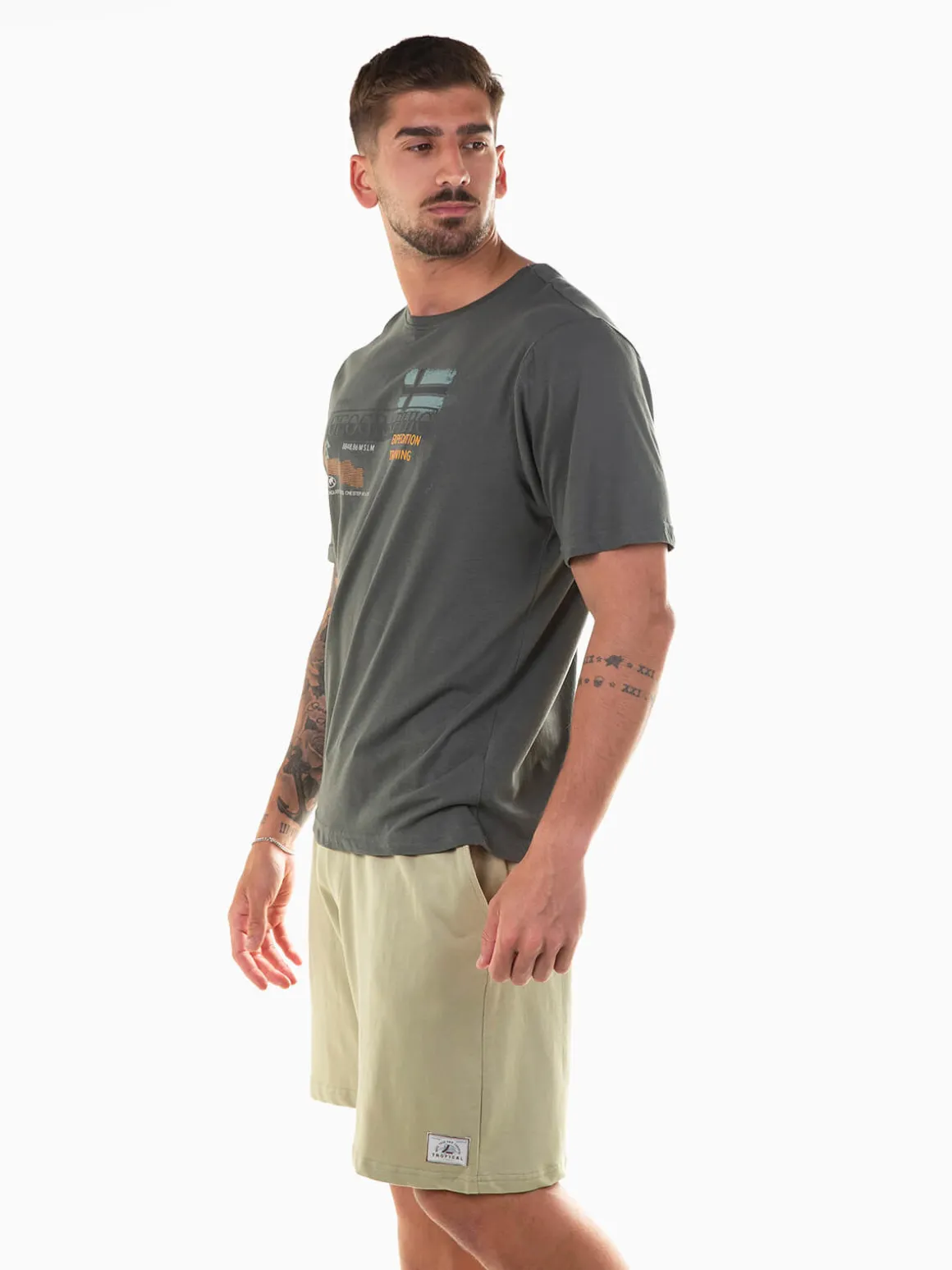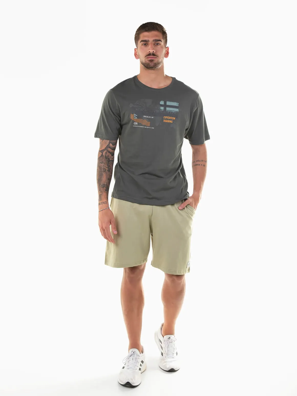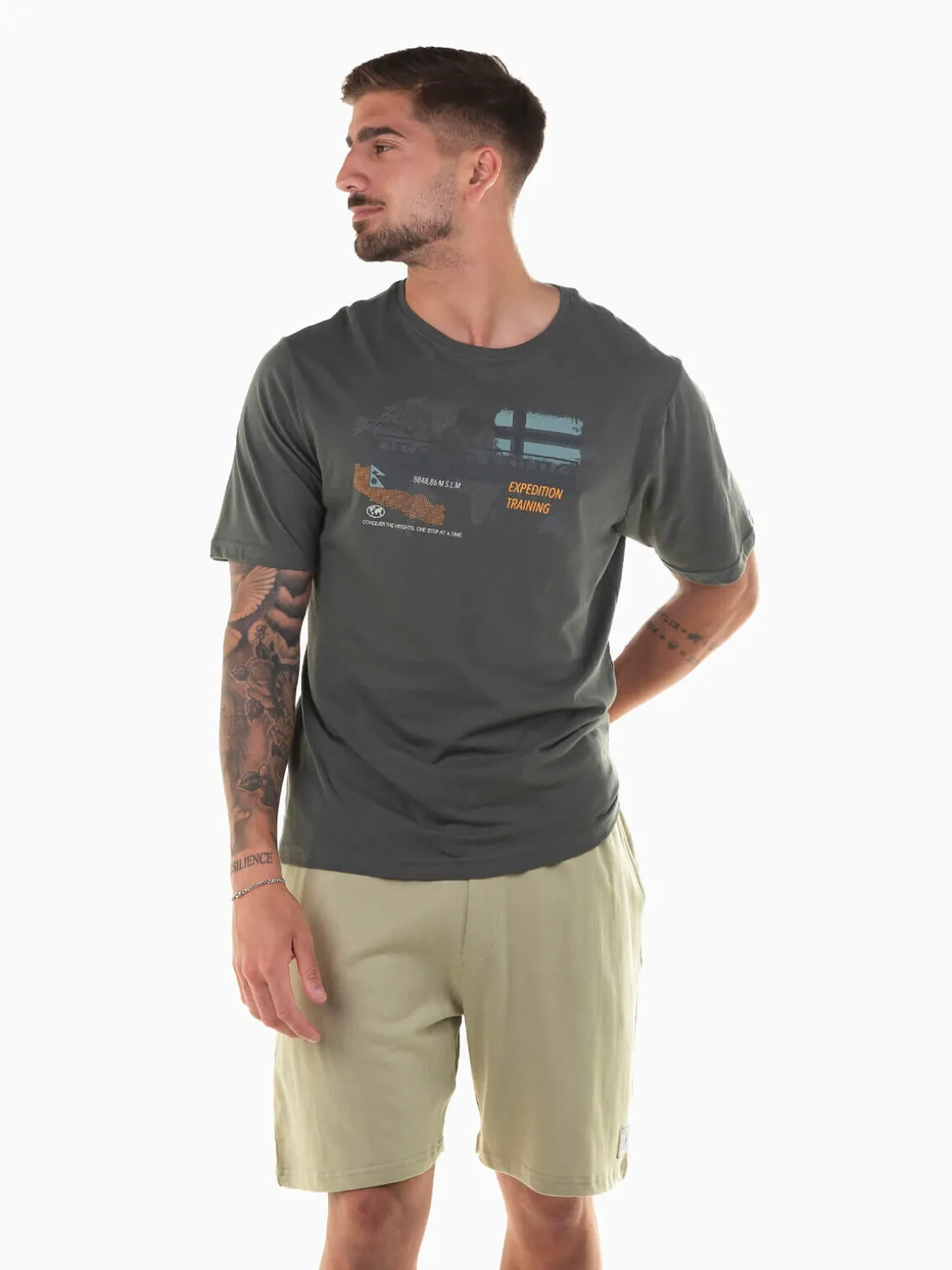 T-shirt de manga curta com estampado à frente. T-shirt 100% algodão para homem com gola redonda. Altura do Modelo: 182 cm | Tamanho: L
