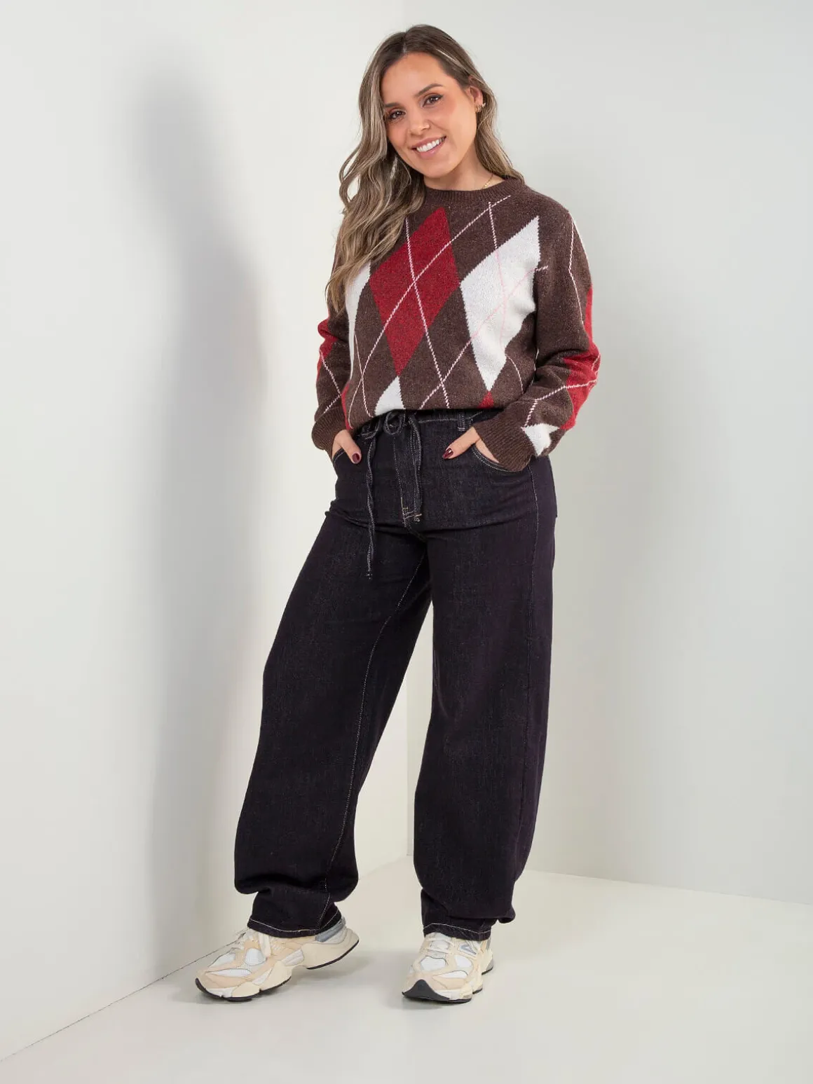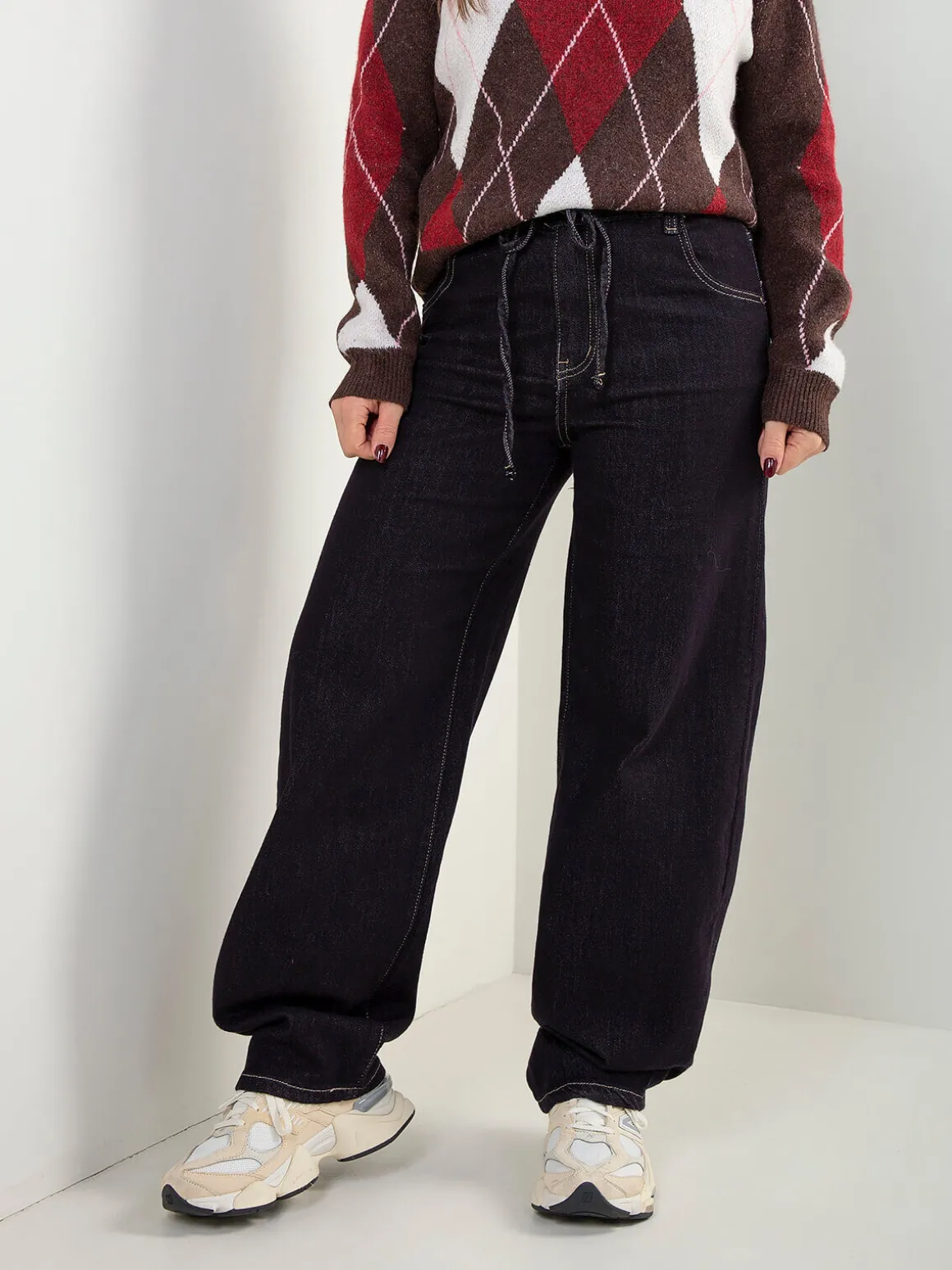 Calças de ganga com corte balloon, cintura elástica e cordão ajustável. Perna ampla, conforto garantido, 5 bolsos e aquele volume certo que define o modelo. Funcionam tanto com malha ajustada como com peças mais oversized.Altura da Modelo: 160 cm | Tamanho: 36