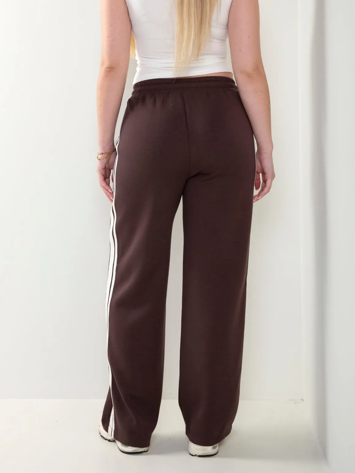 Calças wide leg com cintura elástica e faixa lateral contrastante. 2 bolsos. Confortáveis e ideais para looks athleisure modernos e versáteis.Altura da Modelo: 166 cm | Tamanho: M/L