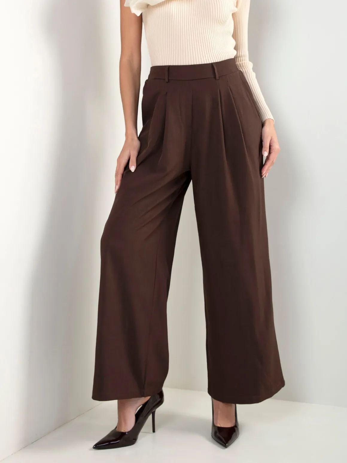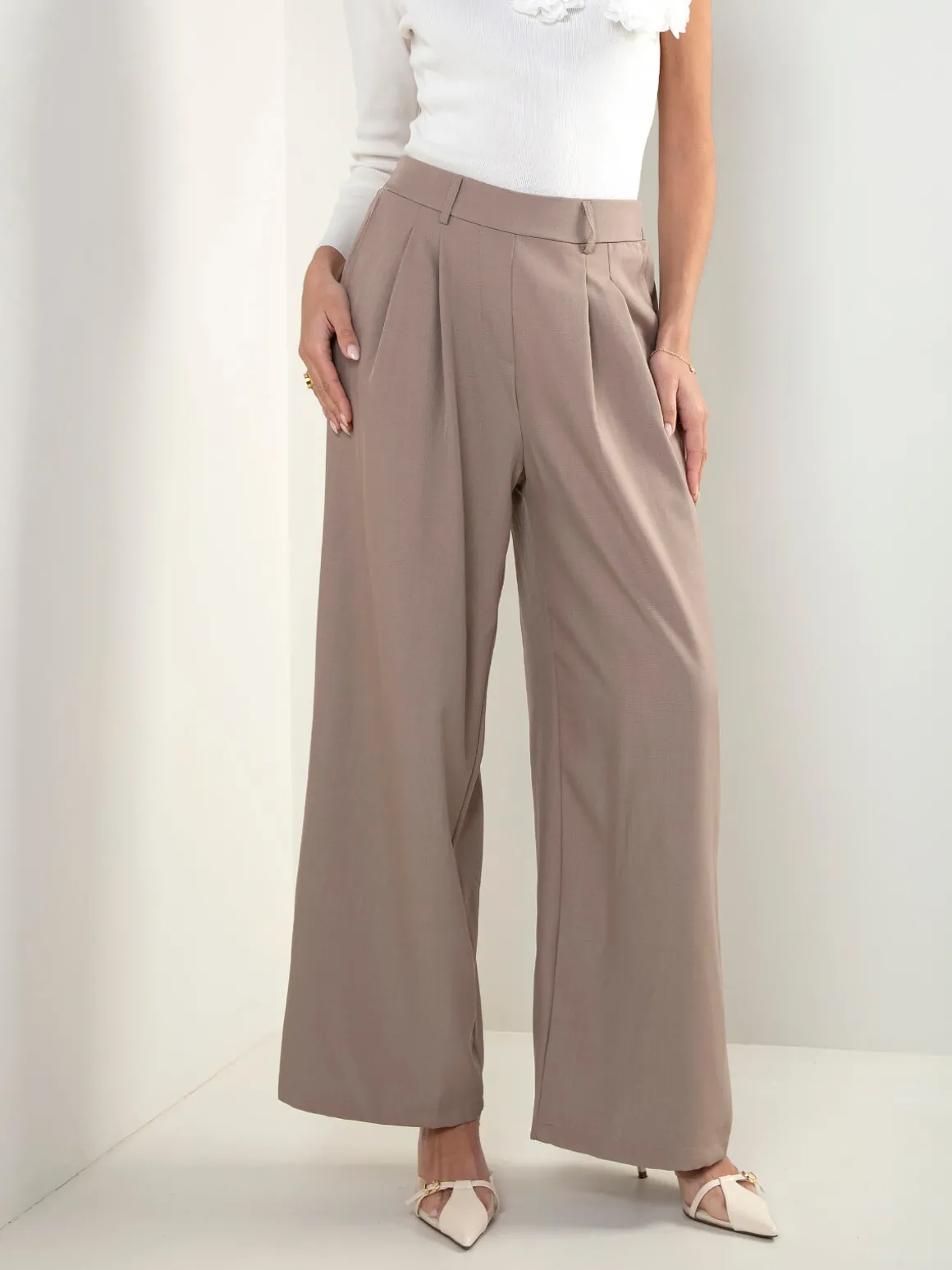 Calças fluídas cintura alta
