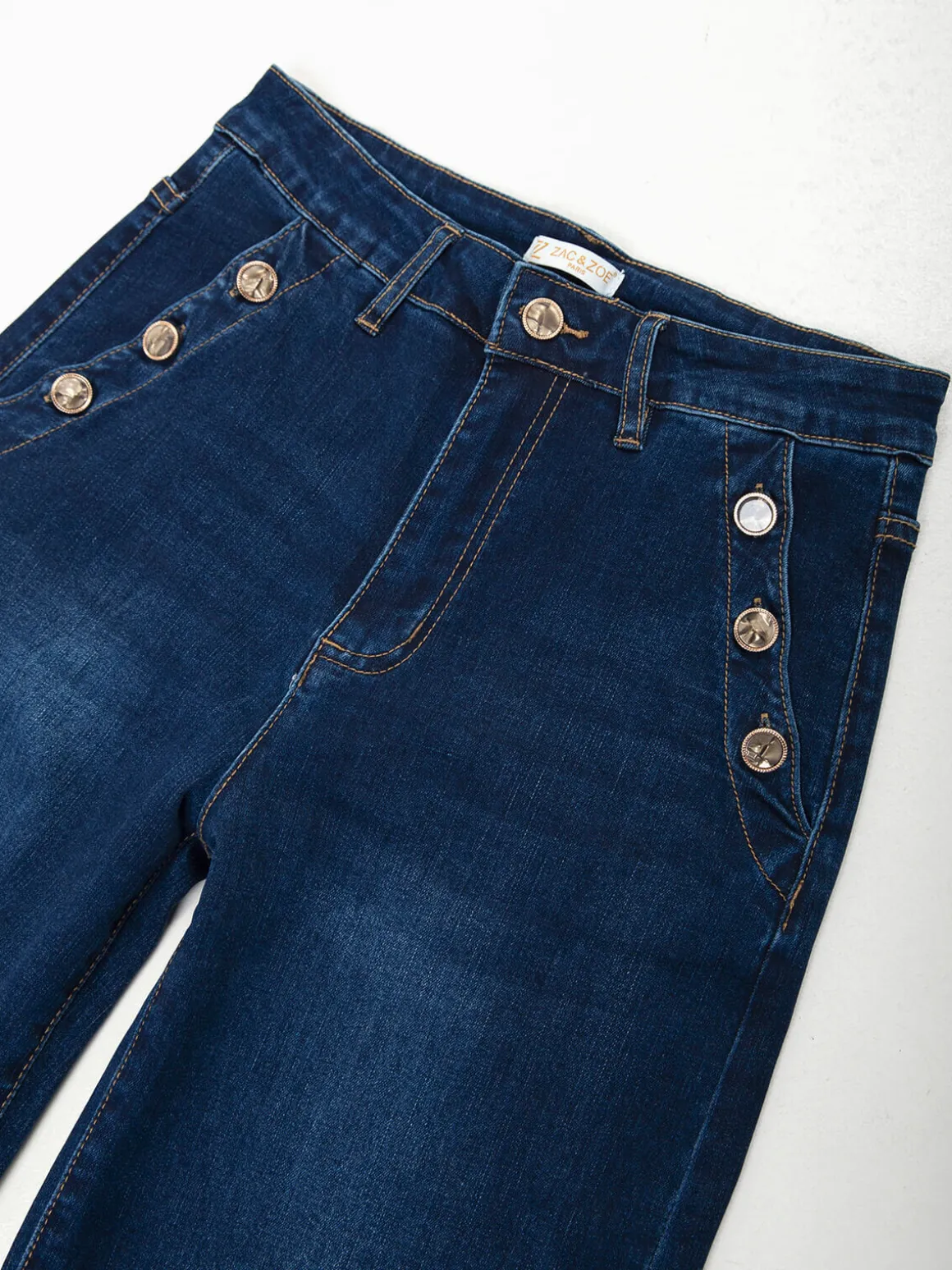 Calças ganga com botões dourados