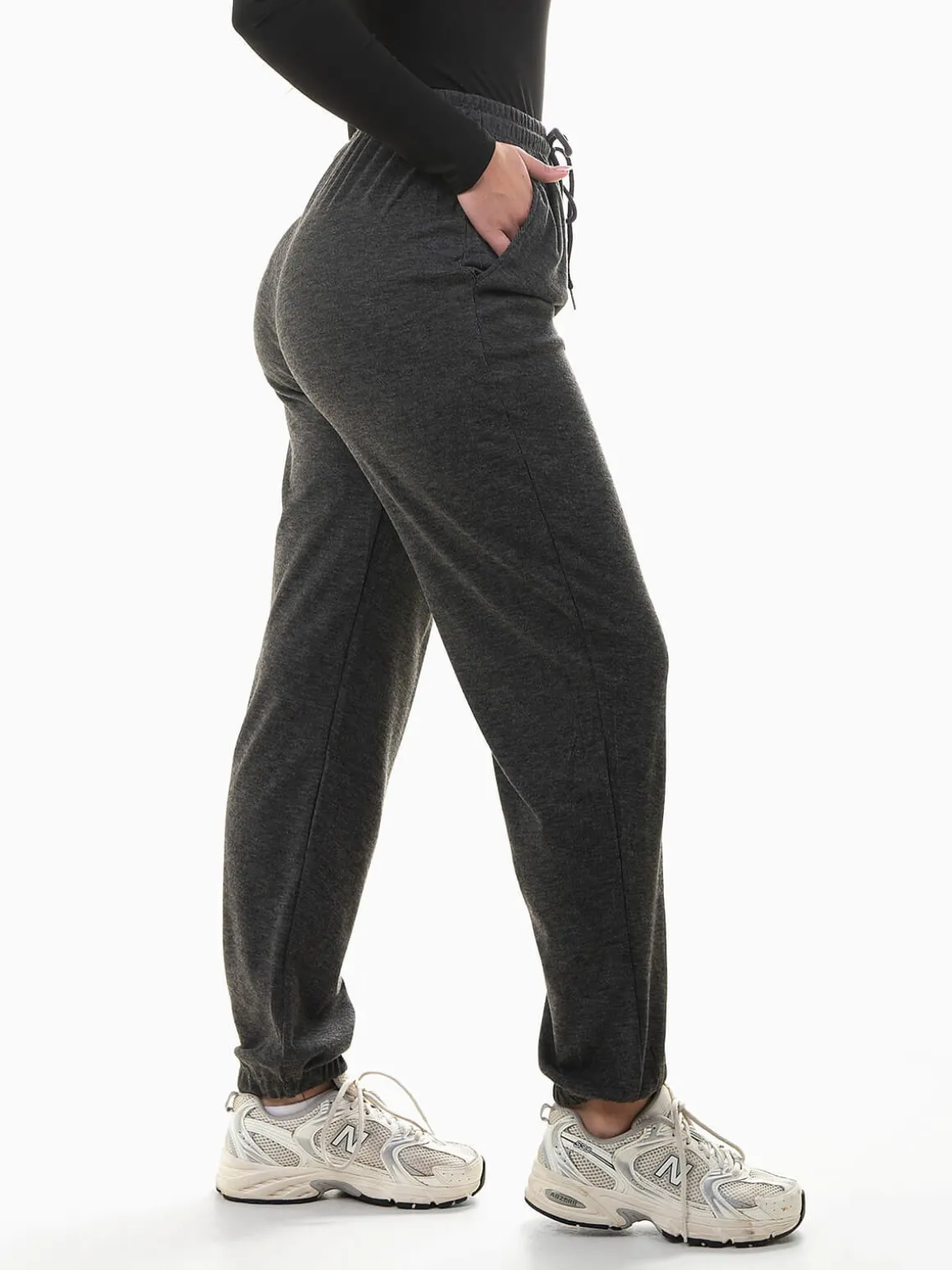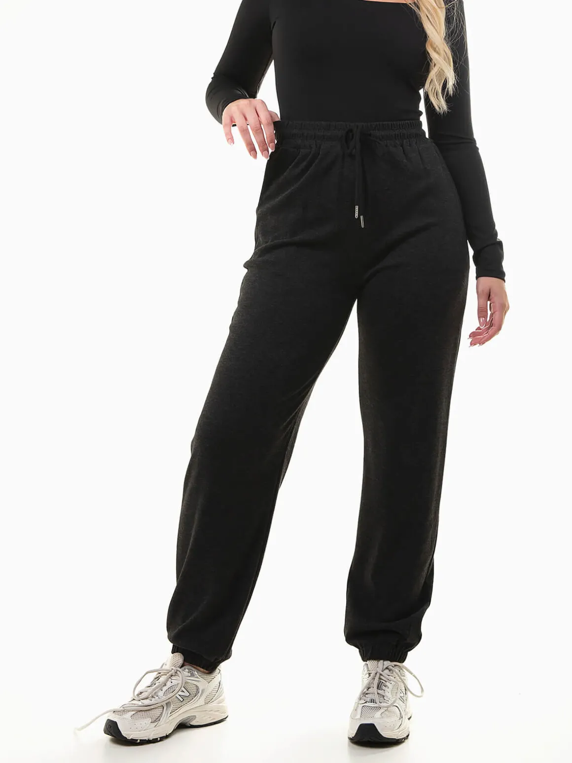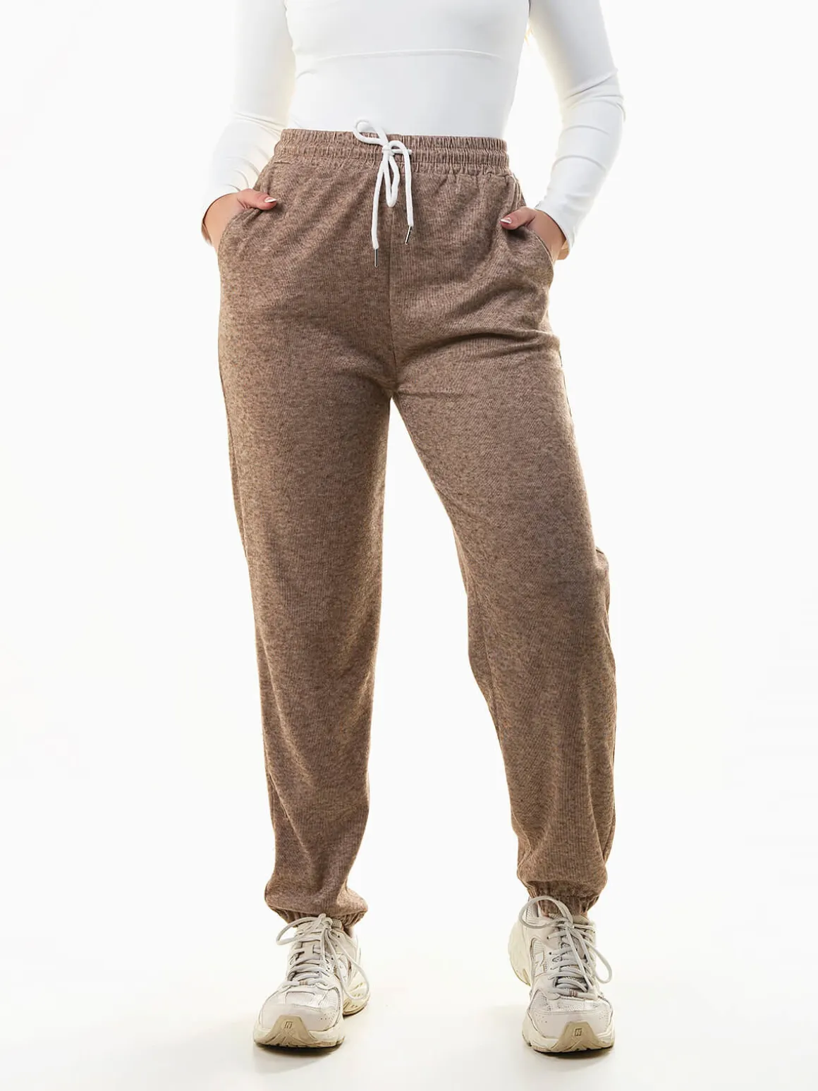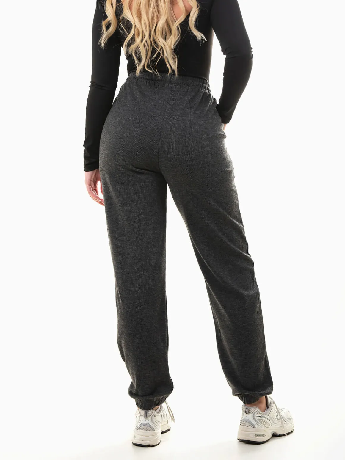 Calças jogger em malha canelada mesclada com cintura alta e cordão ajustável, 2 bolsos e punhos elásticos para conforto e estilo. Combina com tops justos ou sweatshirts oversize para um look casual moderno e versátil.Altura da Modelo: 166 cm | Tamanho: M/L