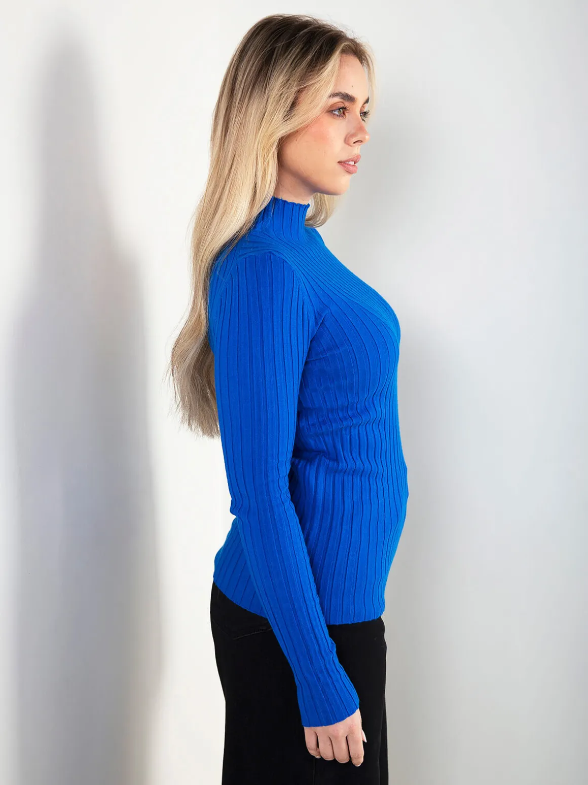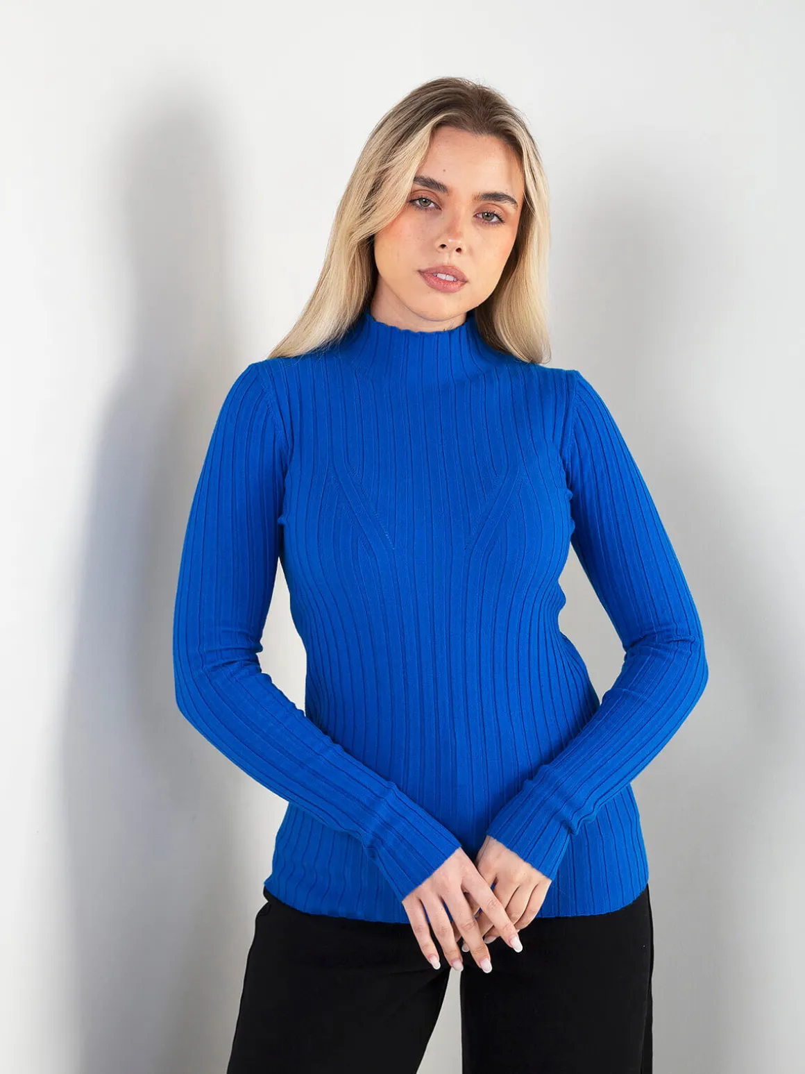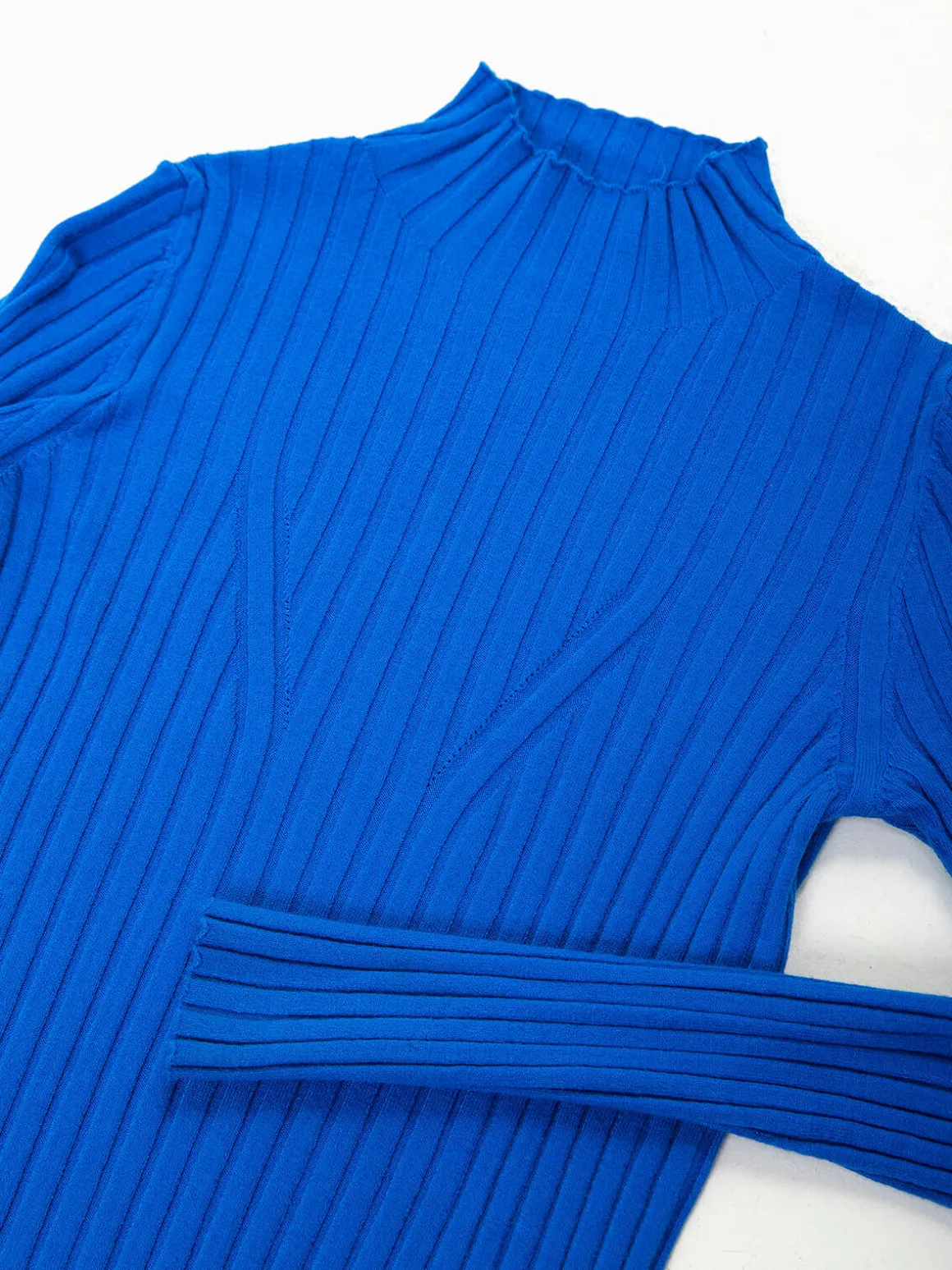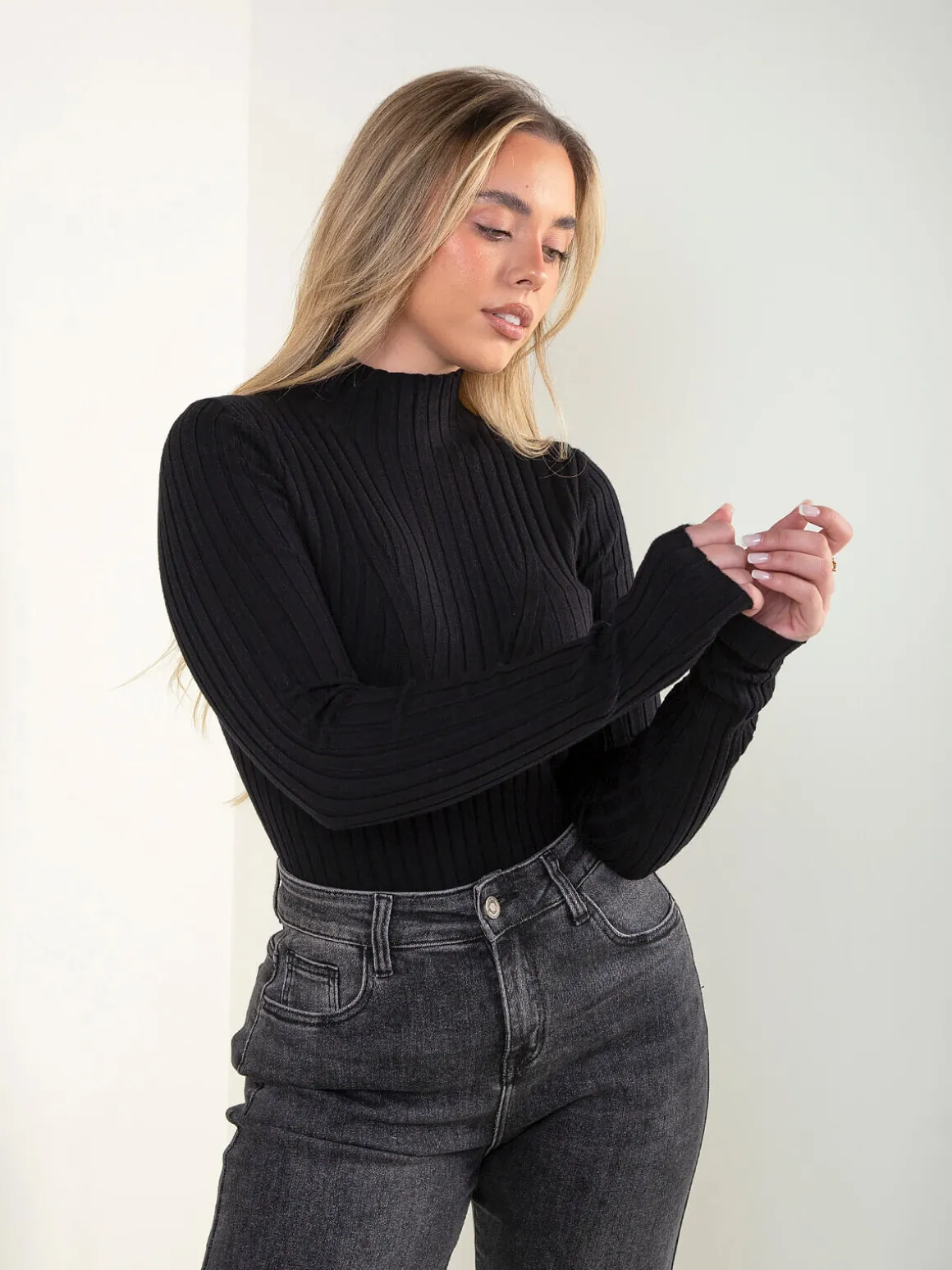 Camisola de malha fina canelada, com gola perkins e detalhe de corte na frente. Macia, confortável é perfeita para combinar com jeans de cintura alta ou calças de alfaiataria. Altura da Modelo: 166 cm | Tamanho: S/M