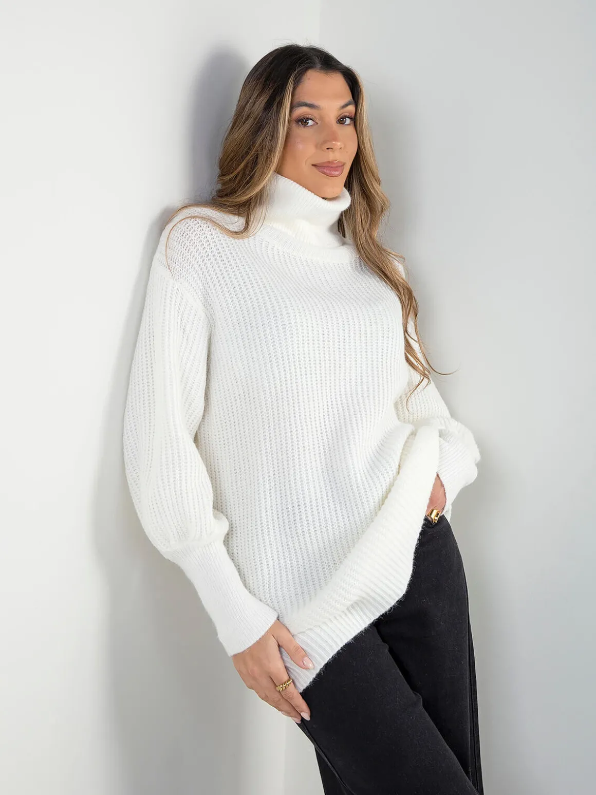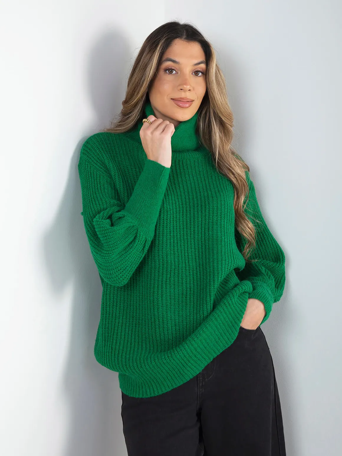 Camisola de malha estruturada com gola alta dobrável, manga comprida e modelo confortável. A textura da malha confere um acabamento cuidado, ideal para looks de inverno práticos e intemporais, fáceis de conjugar com calças de ganga ou calças de alfaiataria.Altura da Modelo: 175 cm | Tamanho: Tamanho Único