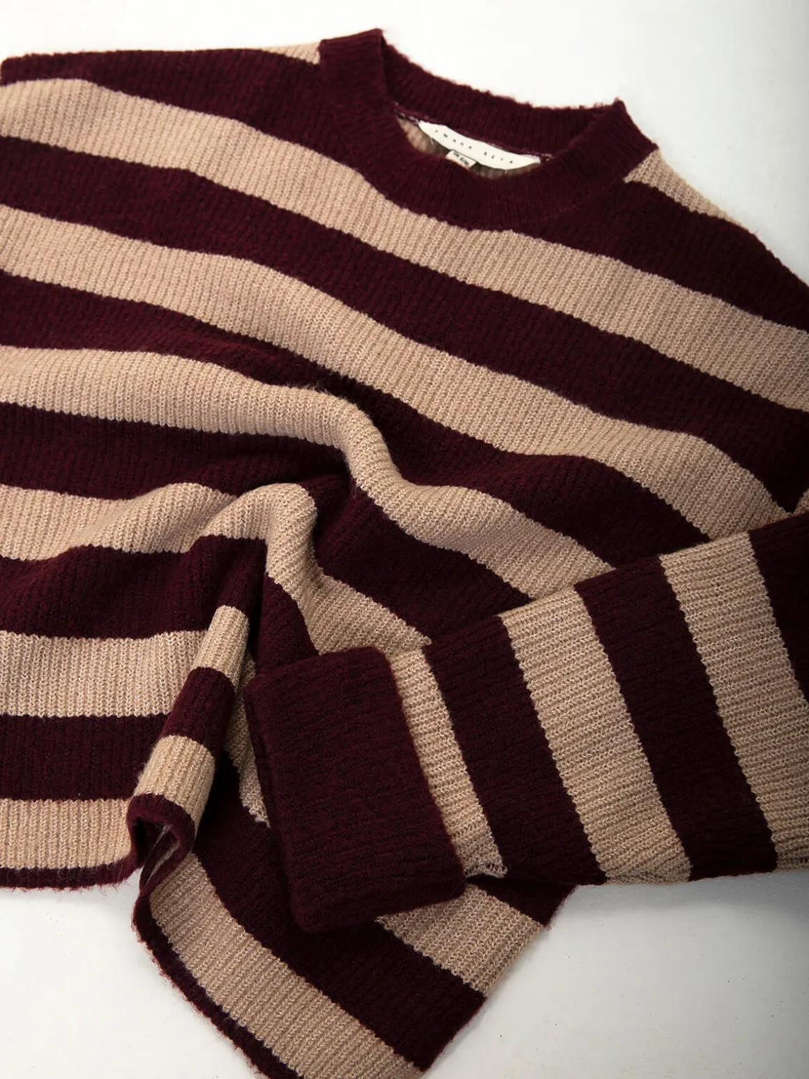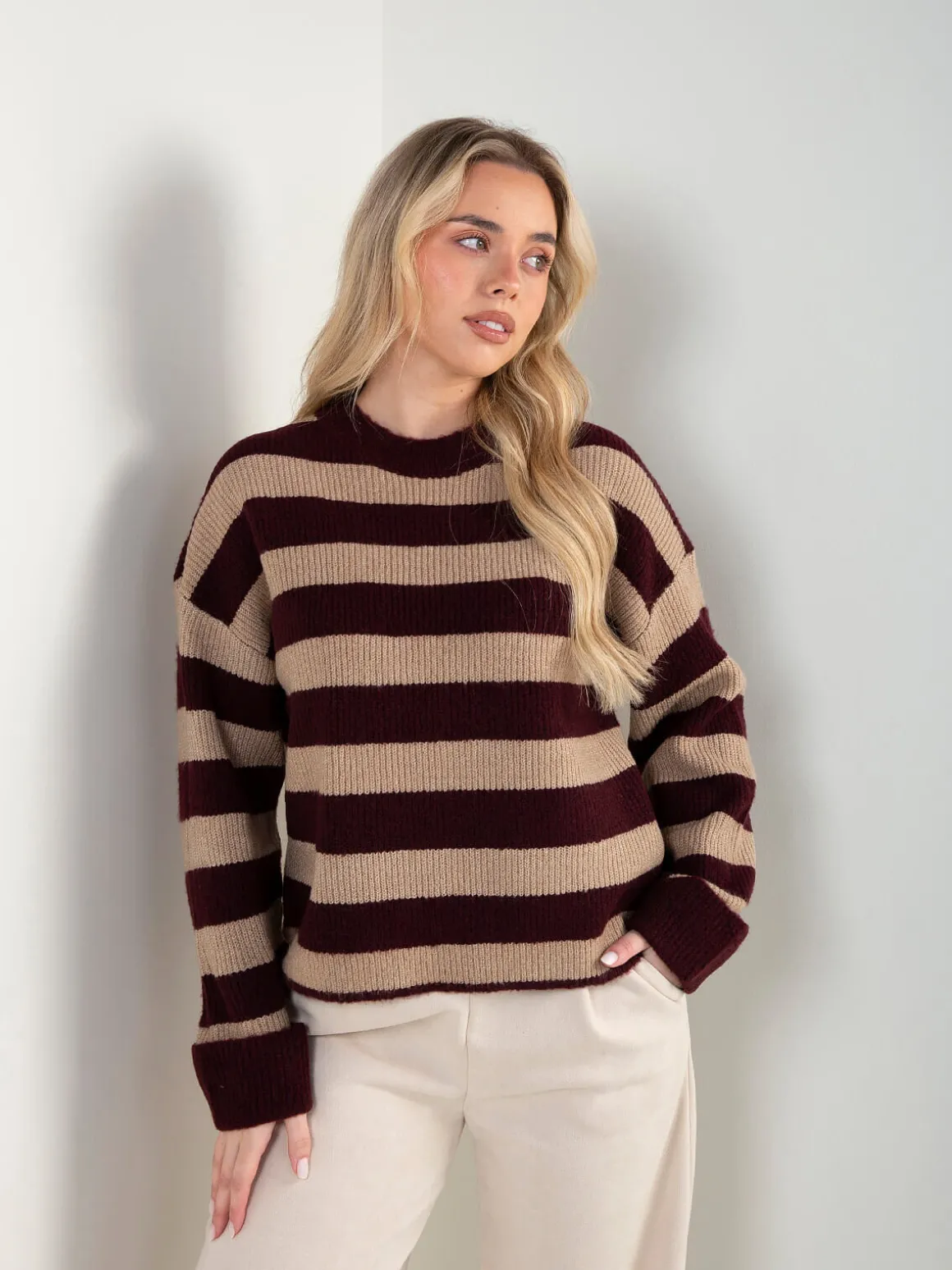 Camisola em malha com padrão às riscas e decote redondo. Um clássico intemporal, fácil de combinar em looks casuais ou mais cuidados.Altura da Modelo: 166 cm | Tamanho: S/M