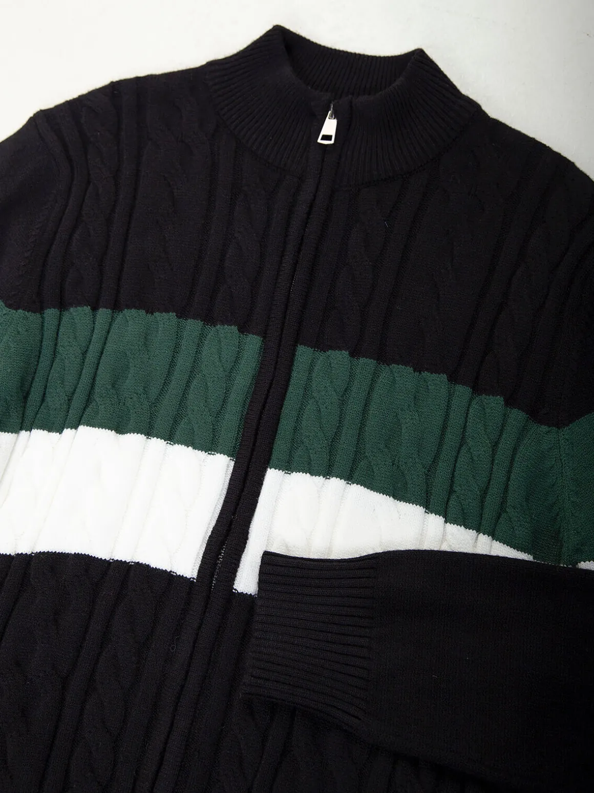 Casaco malha entrançada gola subida