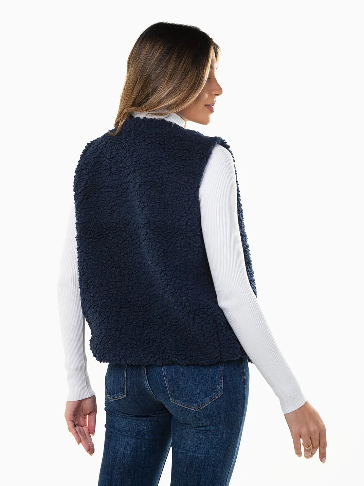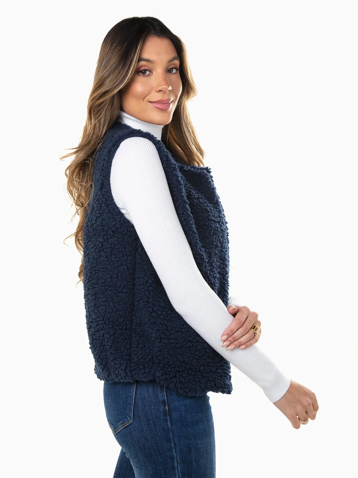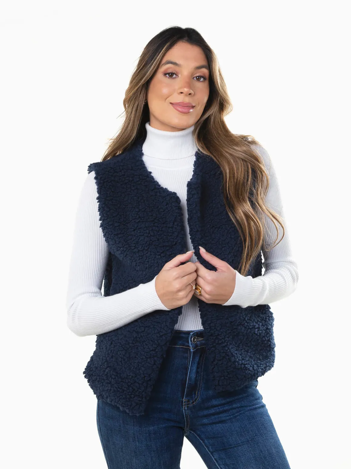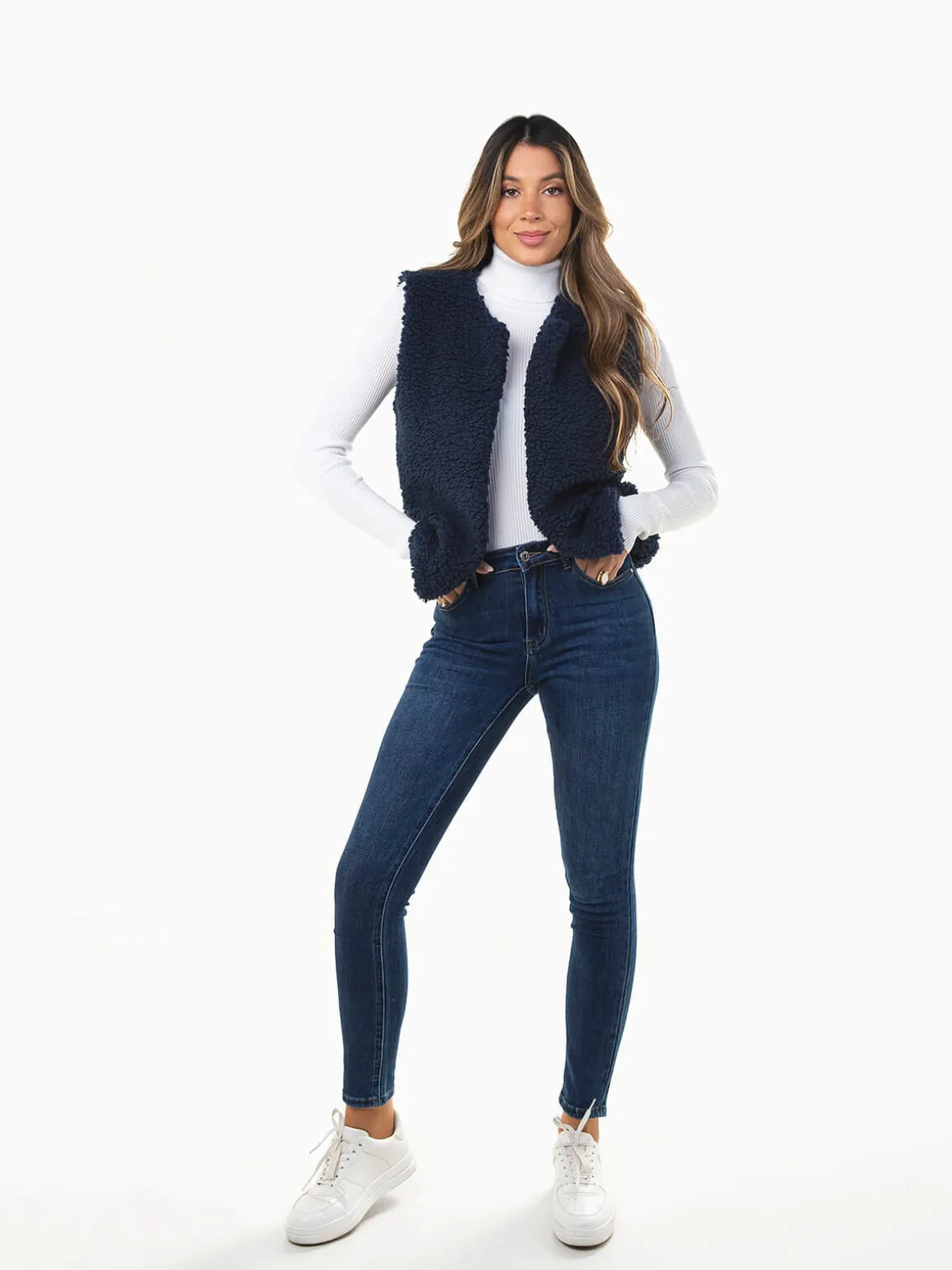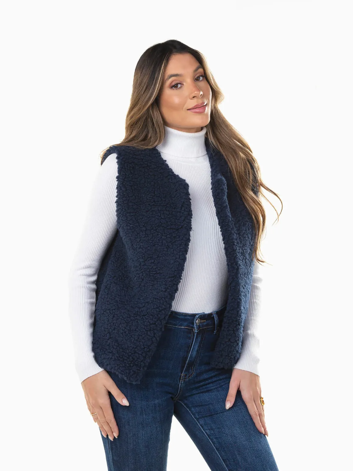 Colete aberto com efeito pelo de ovelha, forrado no interior e com decote redondo. Uma peça leve, prática e perfeita para criar camadas confortáveis no dia a dia.Altura da Modelo: 175 cm | Tamanho: Tamanho Único