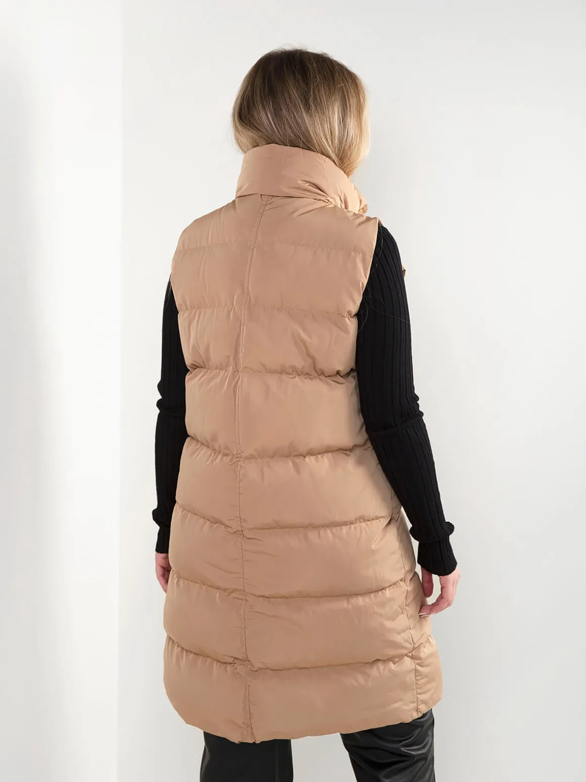 Colete comprido acolchoado com gola subida