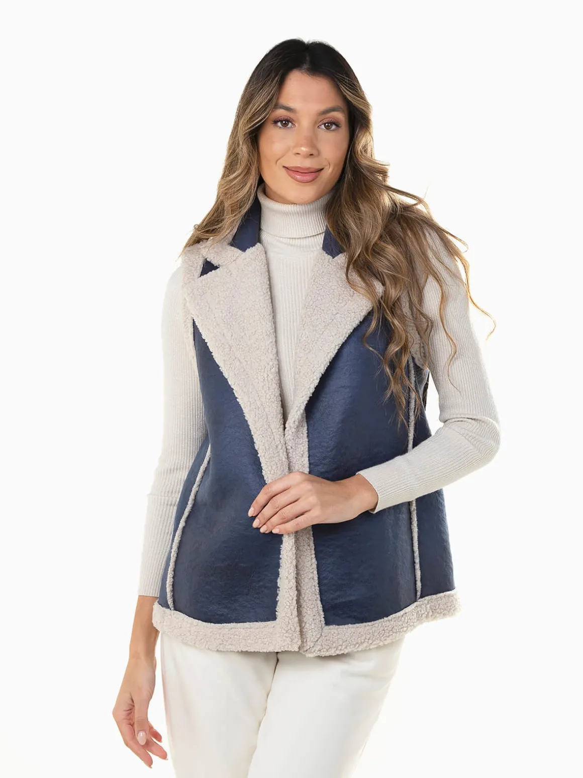 Colete efeito pele envelhecida com pelo