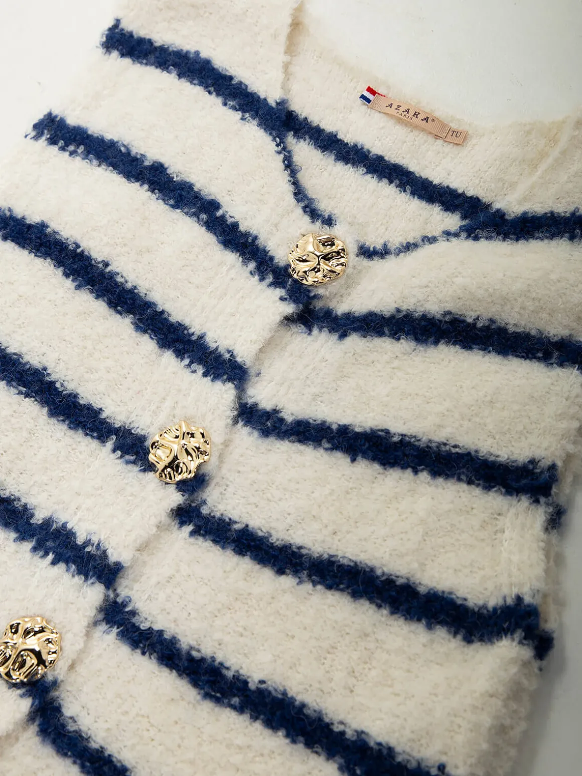Be the first to review “Colete malha às riscas com botões dourados” Cancelar resposta