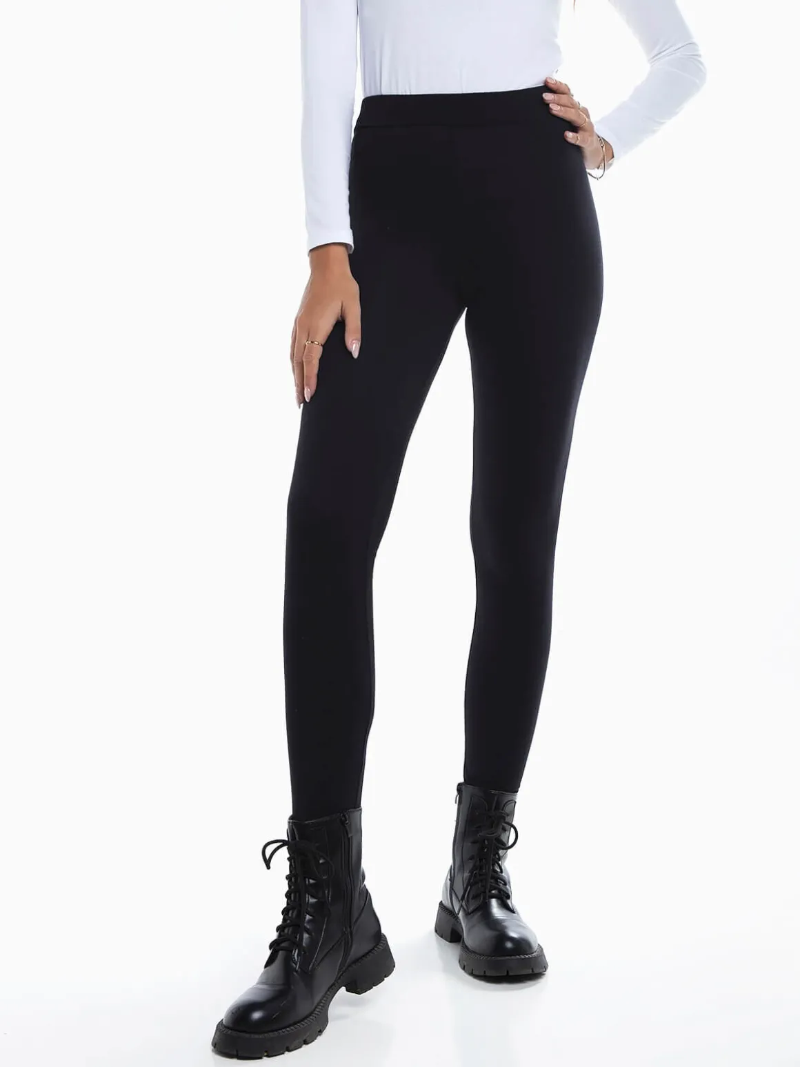 Leggings básicas elásticos para senhora. Leggings cintura alta em tecido de algodão para maior conforto. Altura da Modelo: 175 cm | Tamanho: S