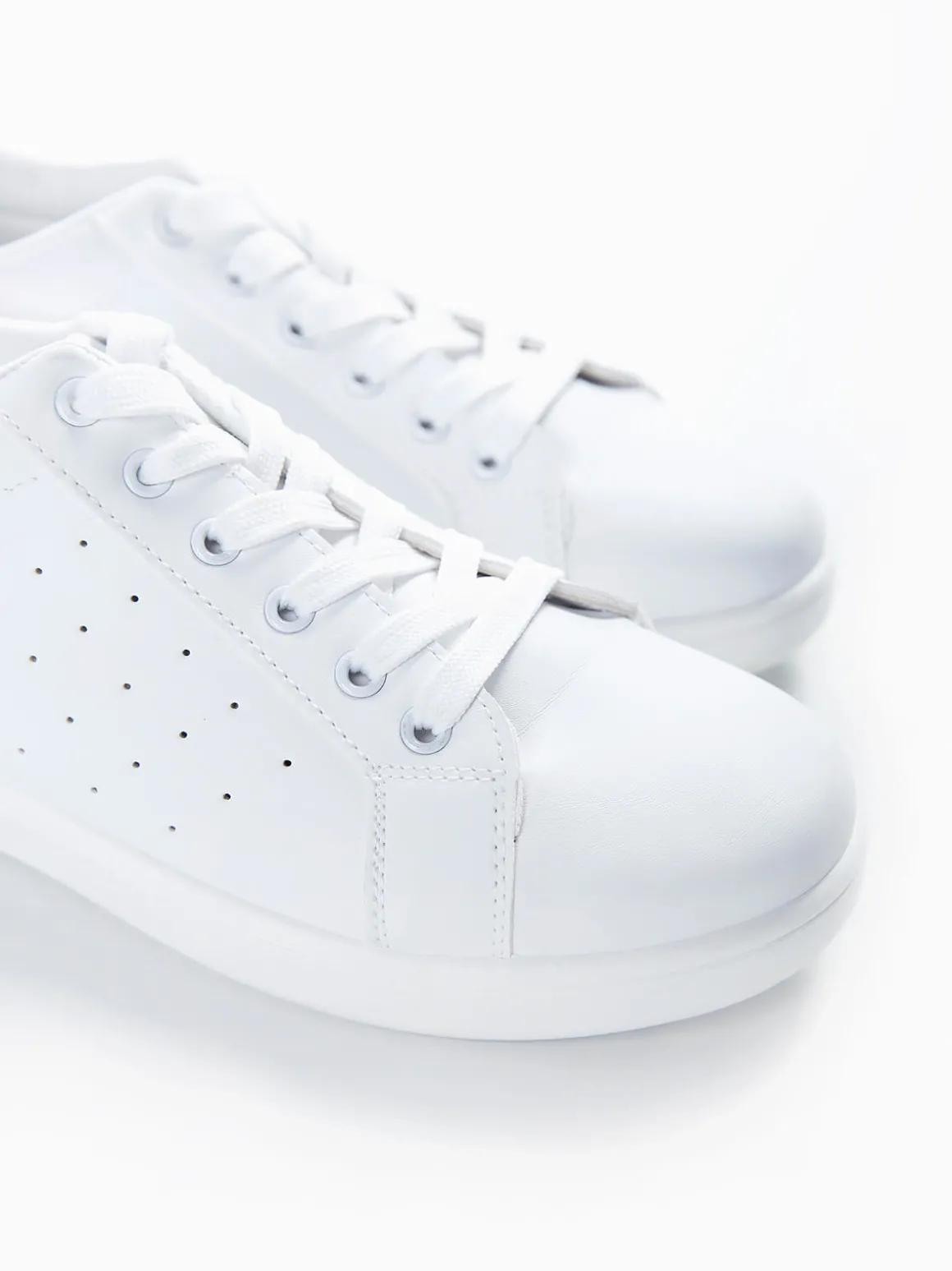 Sapatilhas desportivas brancas com vermelho para senhora. Ténis efeito pele com biqueira redonda. Aperto de cordões. Altura da sola: 2cm