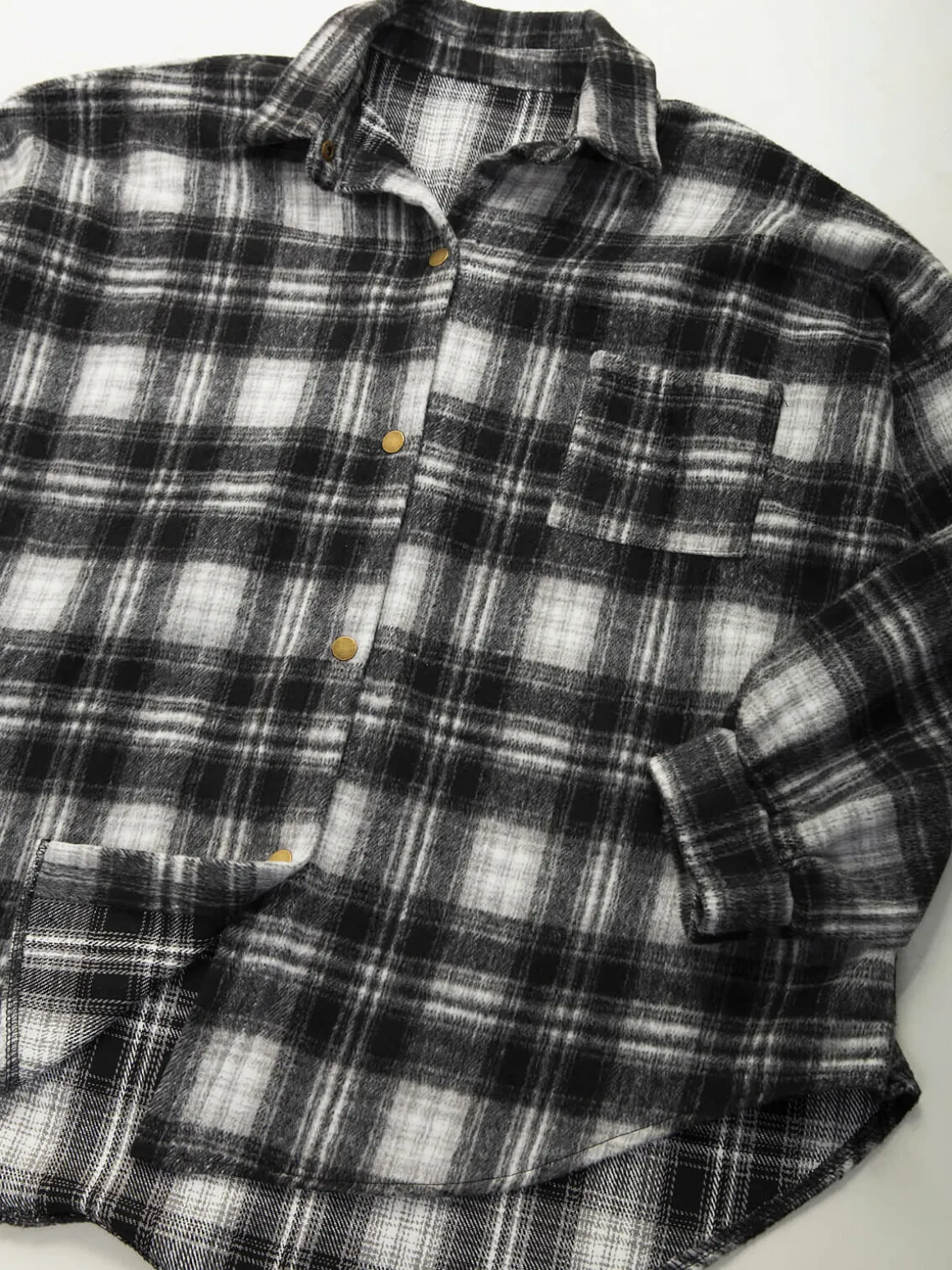 A sobrecamisa em flanela xadrez é a peça-chave para um look descontraído e atual. De corte oversize, com gola de abas, bolso no peito e aperto de botões de mola, conjuga conforto e estilo num só. O padrão xadrez dá-lhe a vibe casual e trendy perfeita para os dias mais frios. Usa-a aberta com t-shirt básica e jeans para um visual urbano ou fecha-a para um efeito mais cozy.Altura da Modelo: 175 cm | Tamanho: Tamanho Único