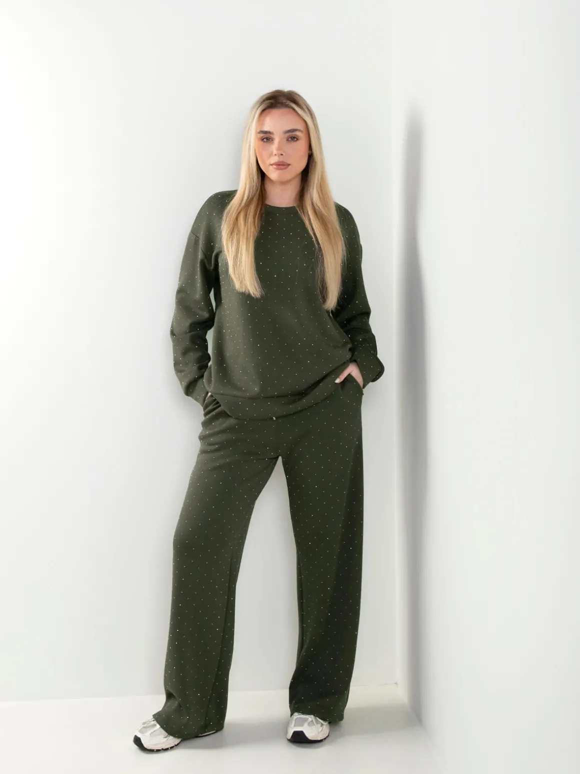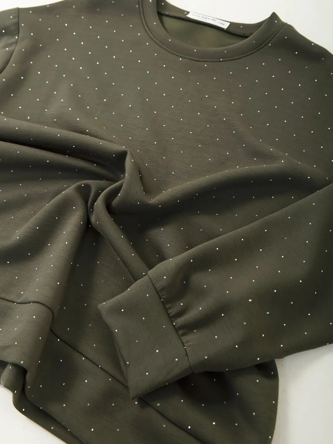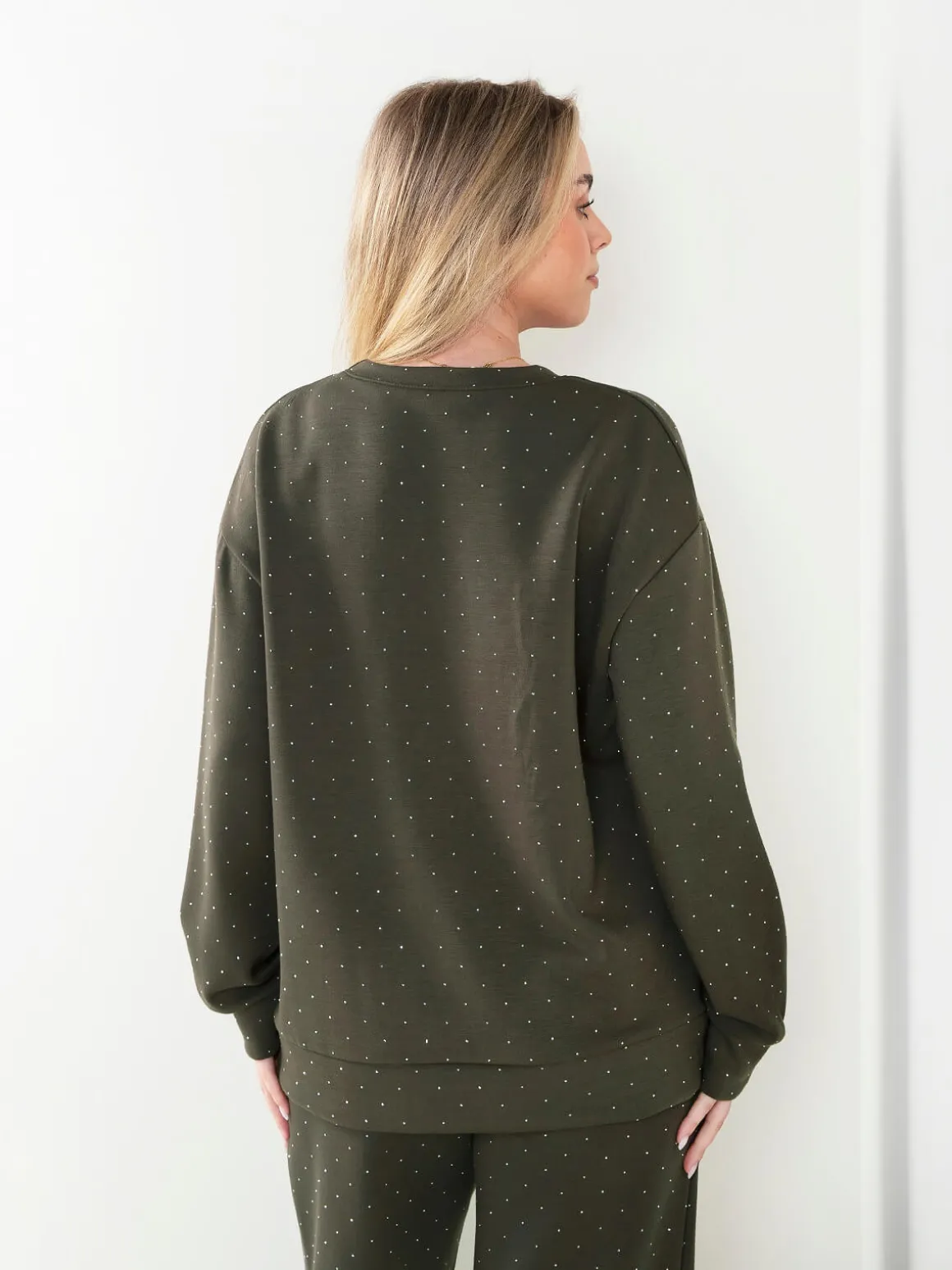 Sweatshirt de manga comprida com aplicação discreta de brilho. Decote redondo. Confortável e moderna, perfeita para looks casuais de meia estação ou para combinar com as calças a condizer.Altura da Modelo: 166 cm | Tamanho: S/M