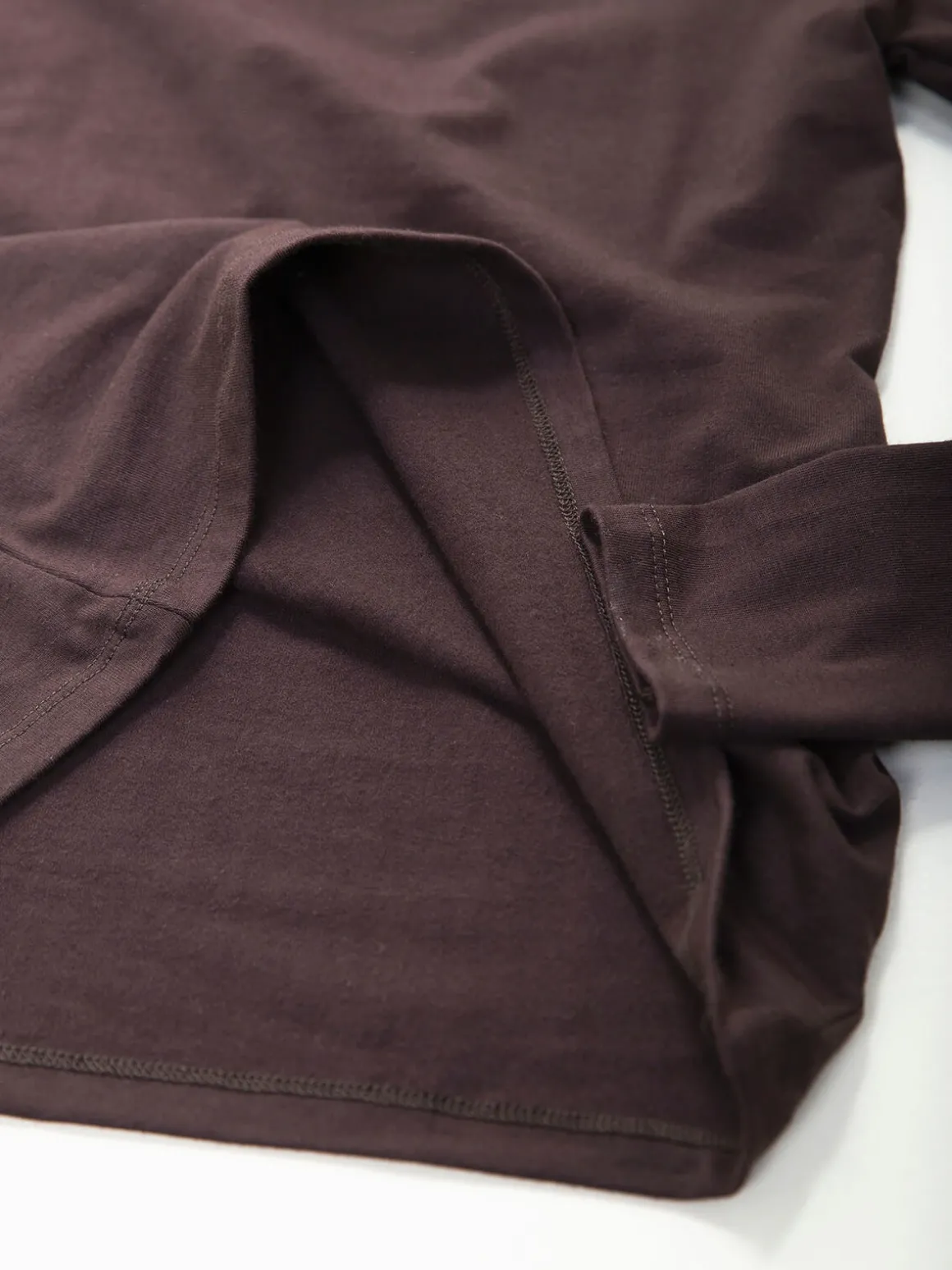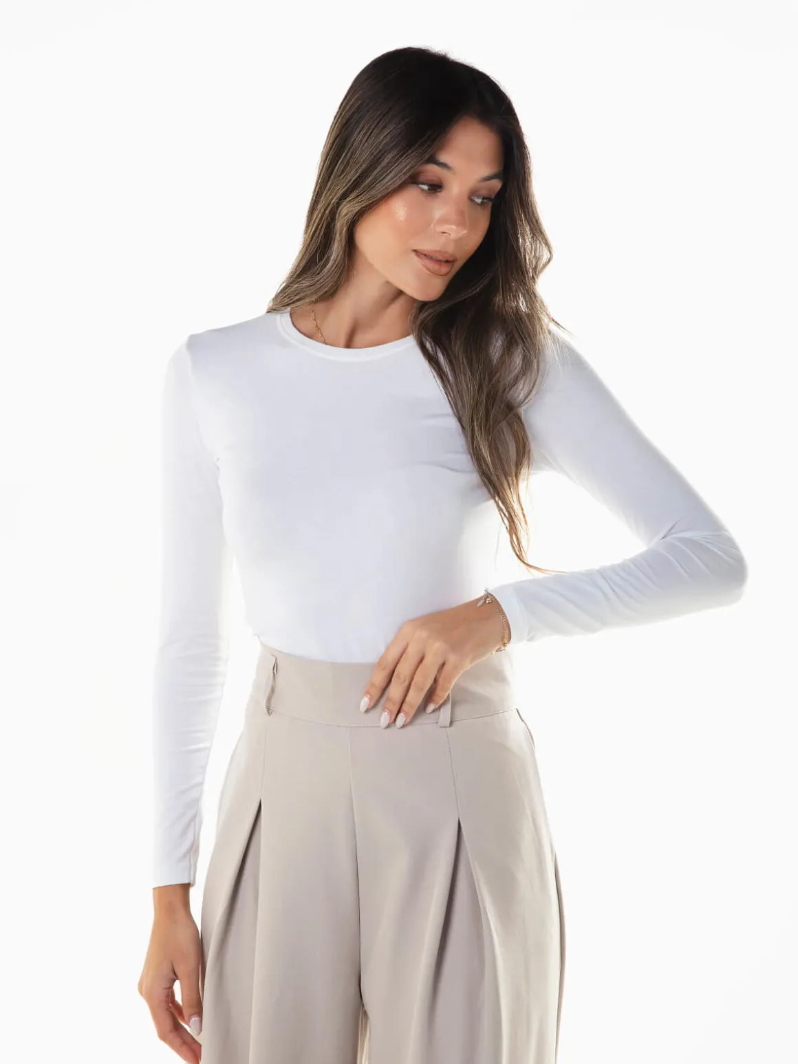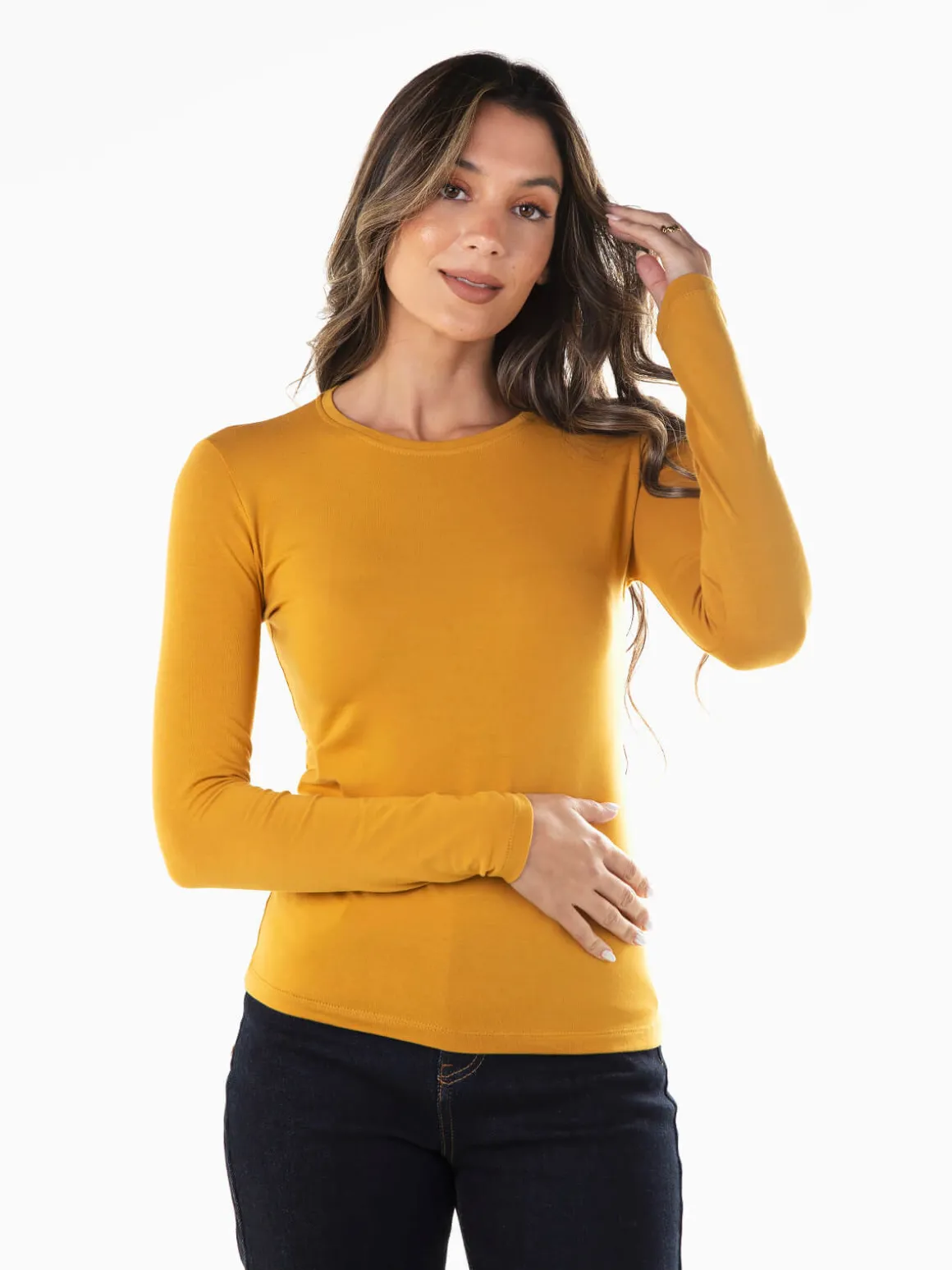 T-shirt básica de manga comprida com interior cardado. T-shirt para mulher com decote redondo. Altura da Modelo: 175 cm | Tamanho: S