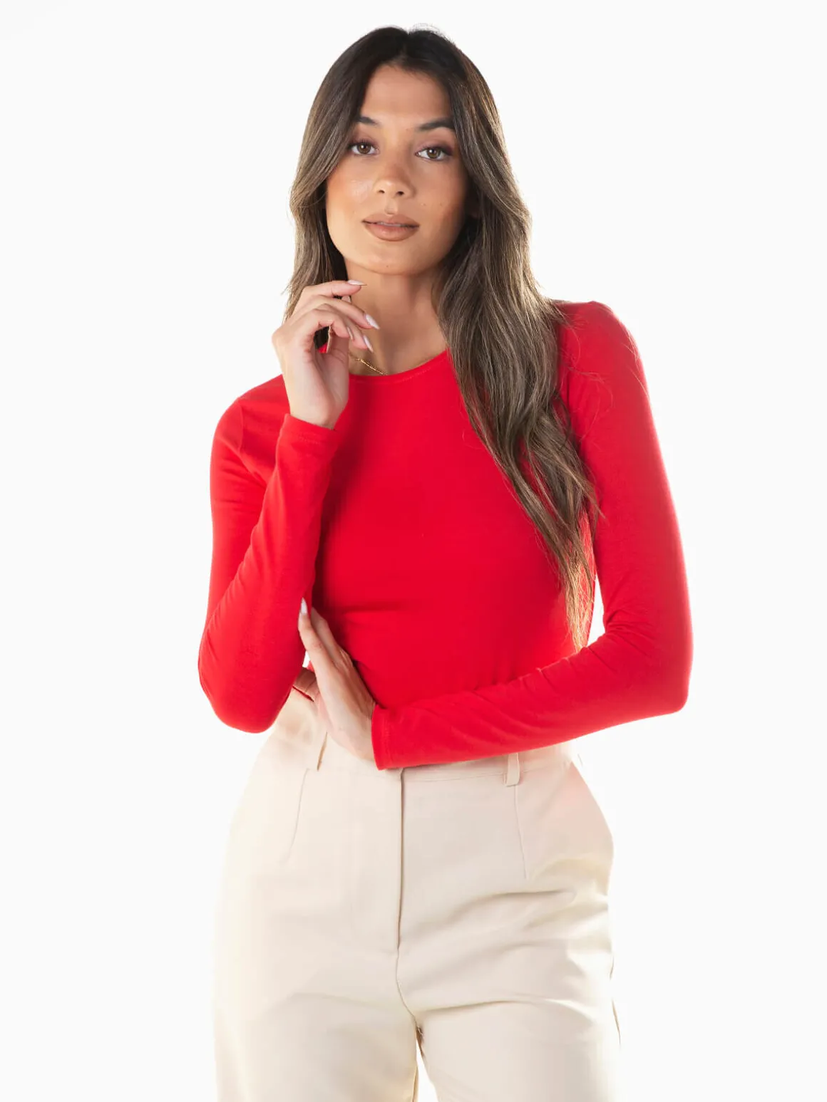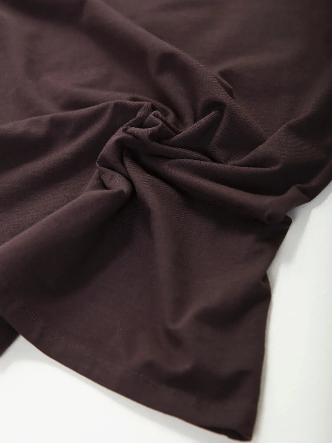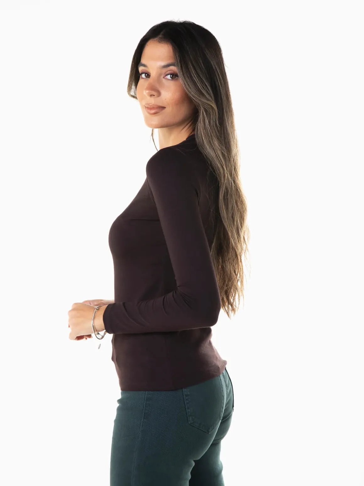 T-shirt básica de manga comprida com interior cardado. T-shirt para mulher com decote redondo. Altura da Modelo: 175 cm | Tamanho: S