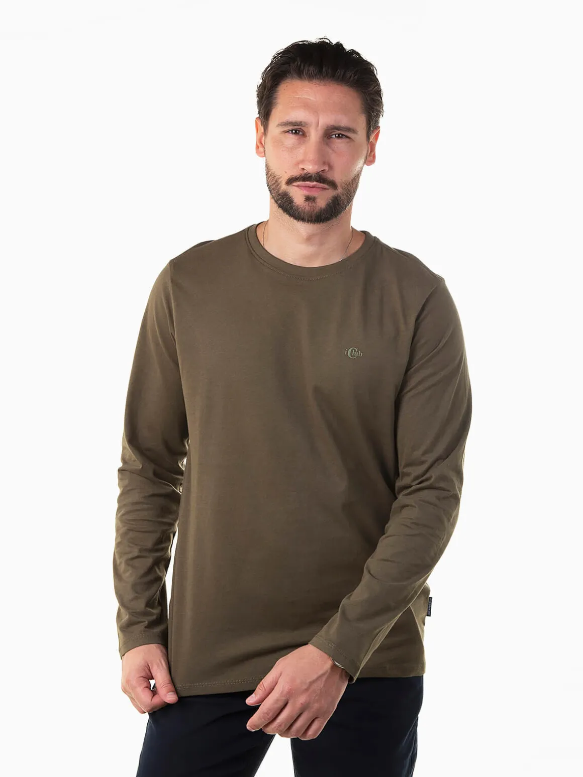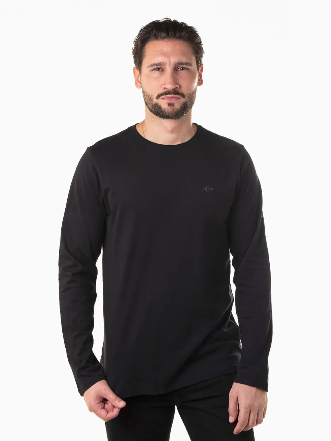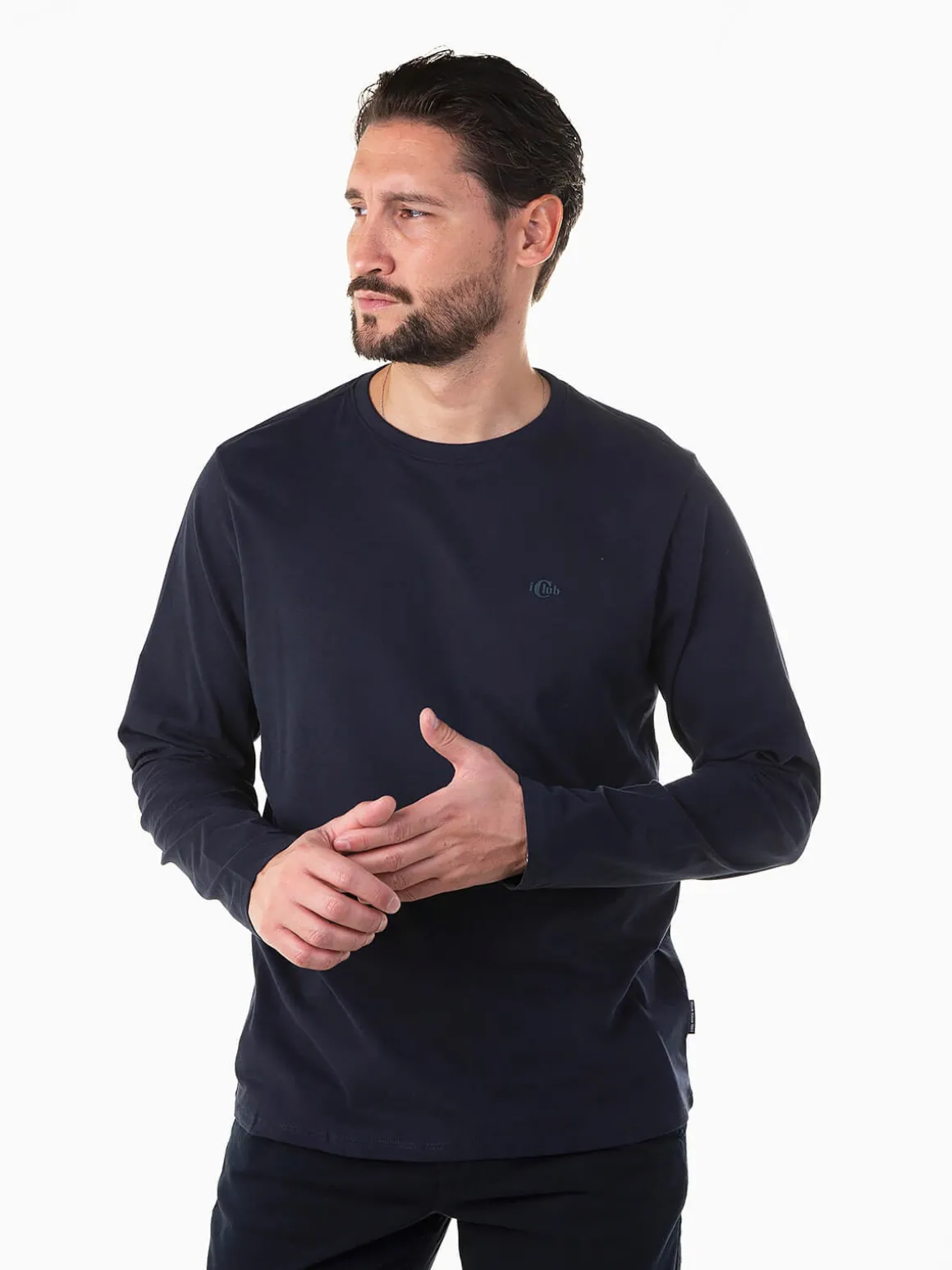 T-shirt de manga comprida para homem com gola redonda e estampado no peito a combinar com a cor da peça. Modelo básico e versátil, perfeito para o dia a dia.Altura do Modelo: 180 cm | Tamanho: M