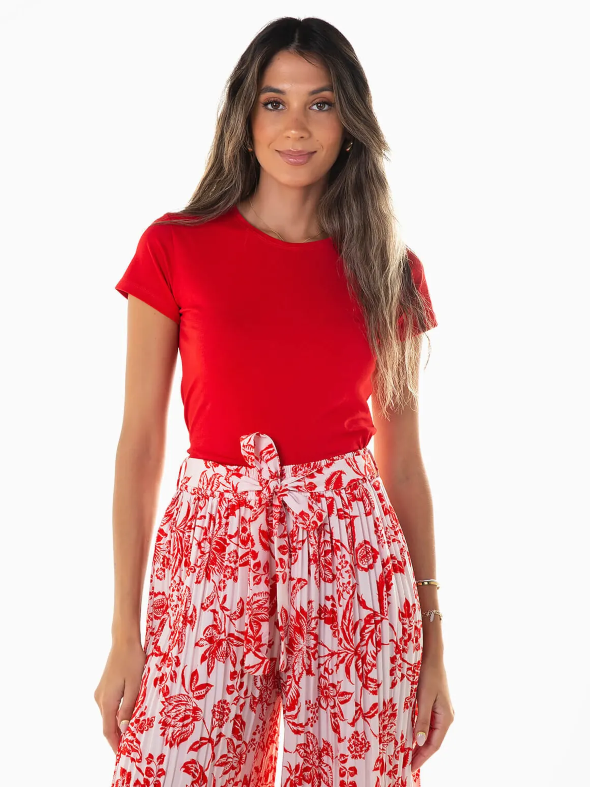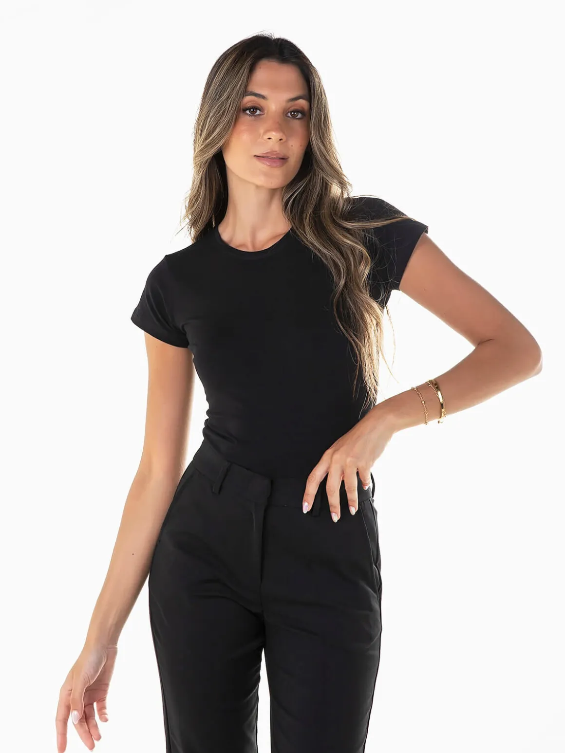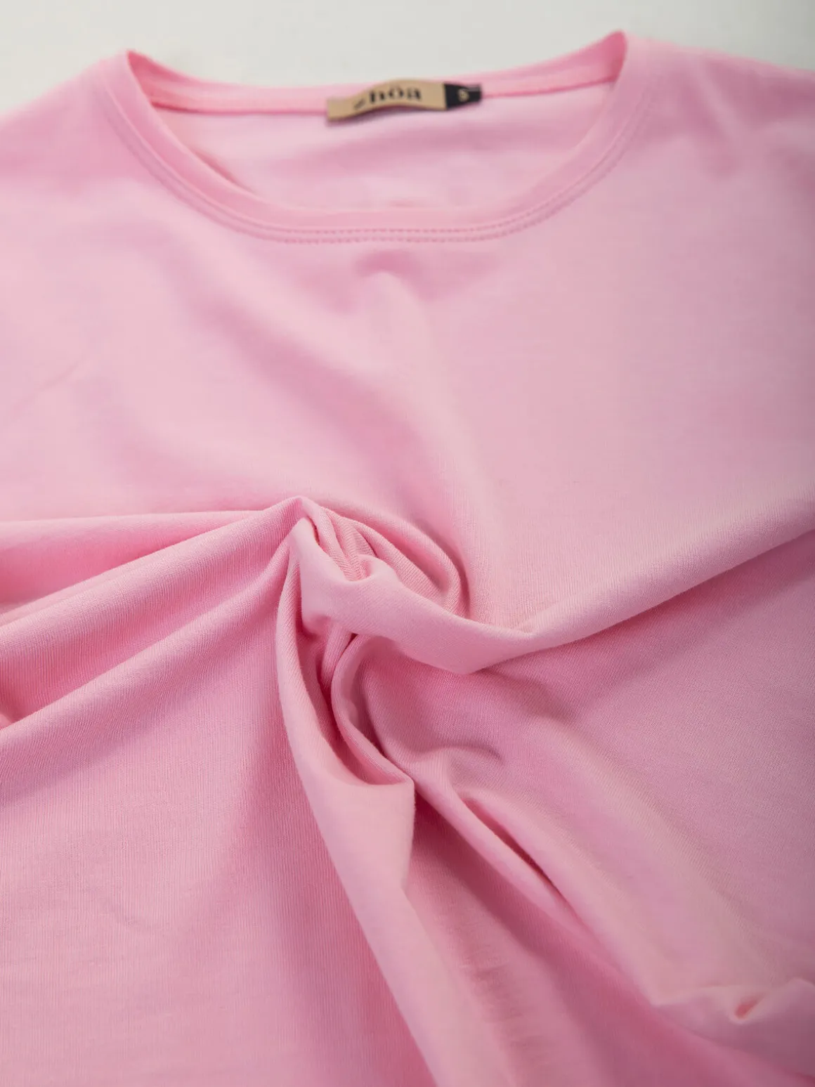 T-shirt básica de manga curta para senhora. T-shirt algodão com decote redondo. Altura da Modelo: 175 cm | Tamanho: S