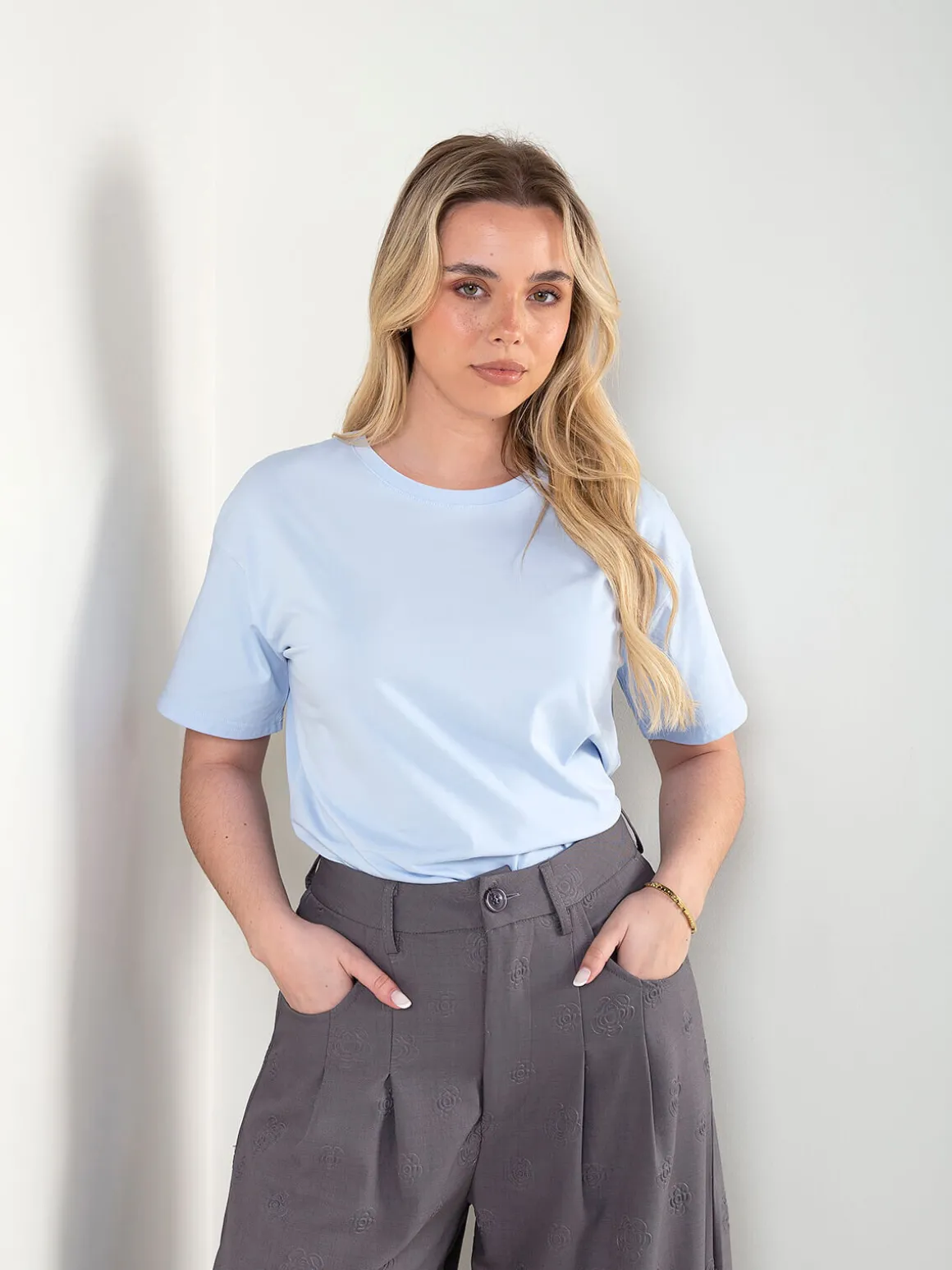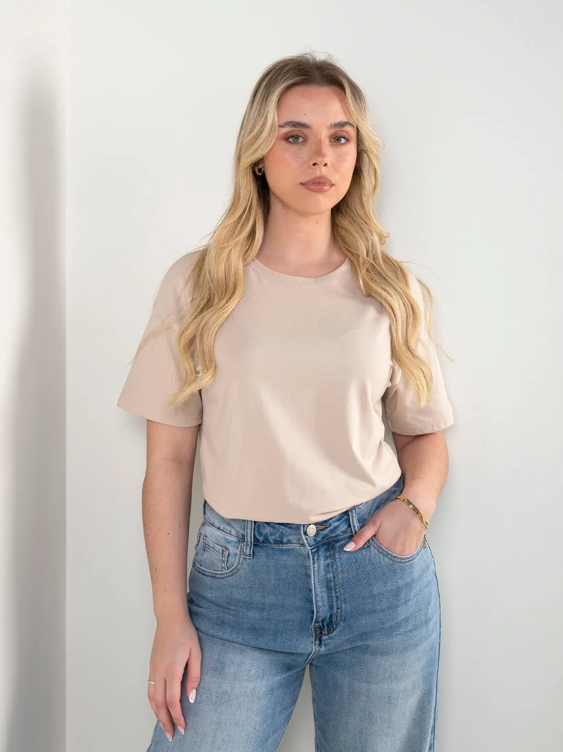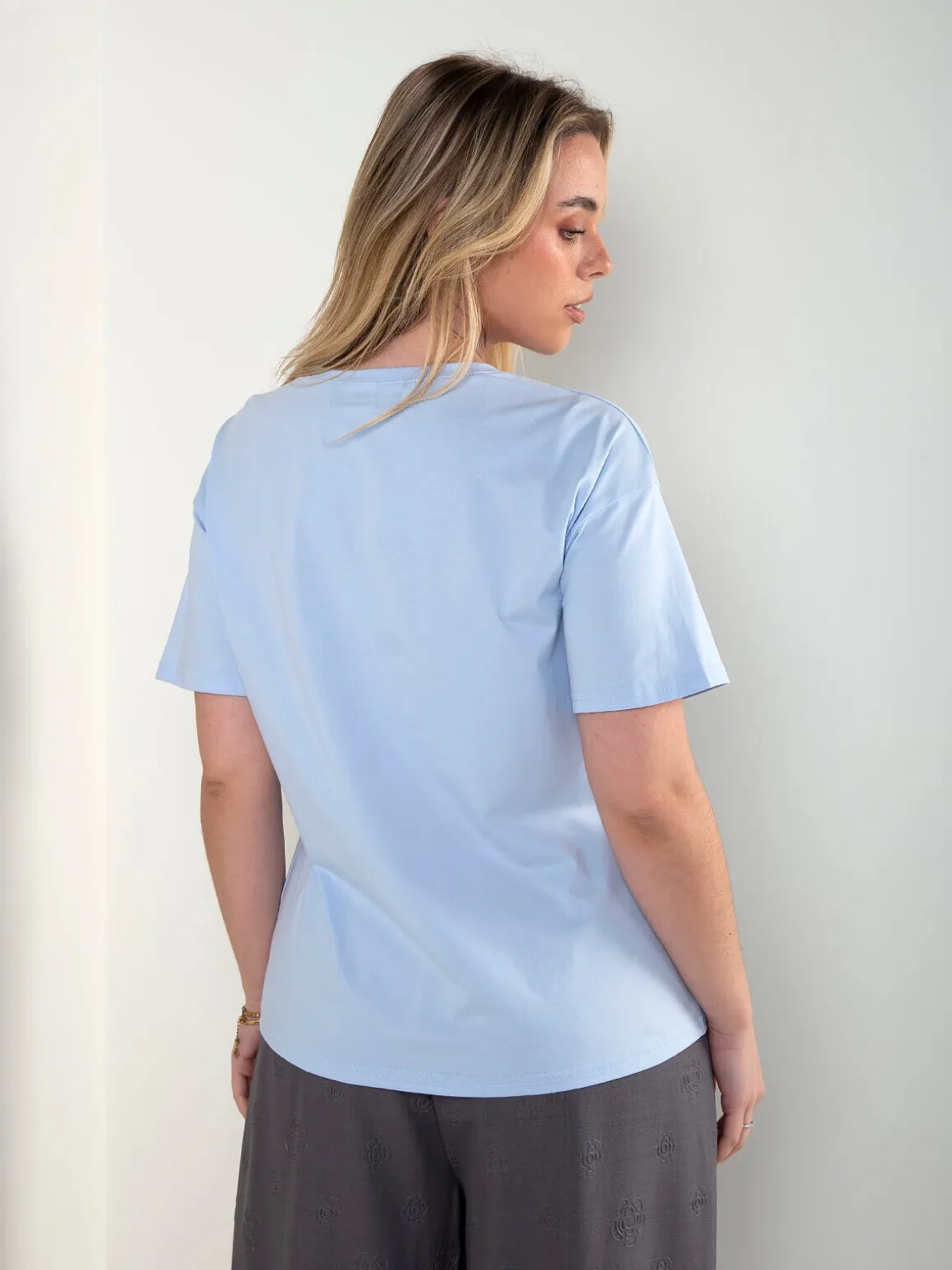 T-shirt básica com decote redondo e manga curta. Uma peça versátil e confortável ideal para combinar com jeans ou calças de alfaiataria para um look simples e atual.Altura da Modelo: 166 cm | Tamanho: S/M