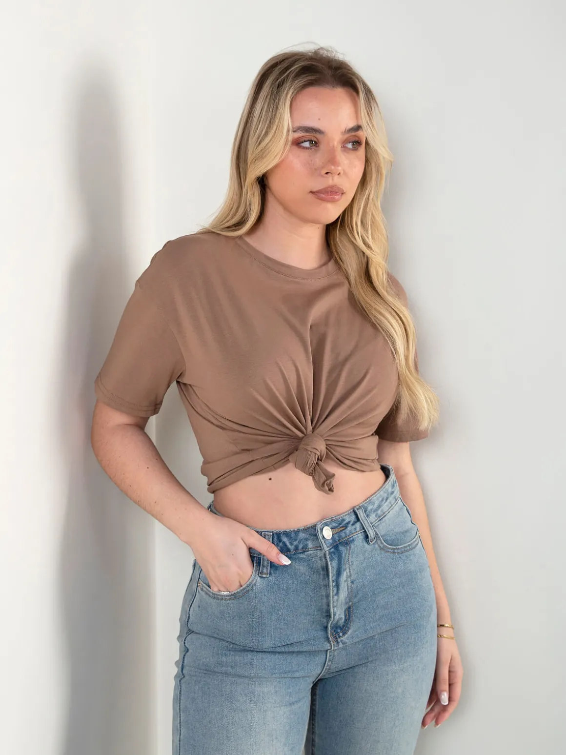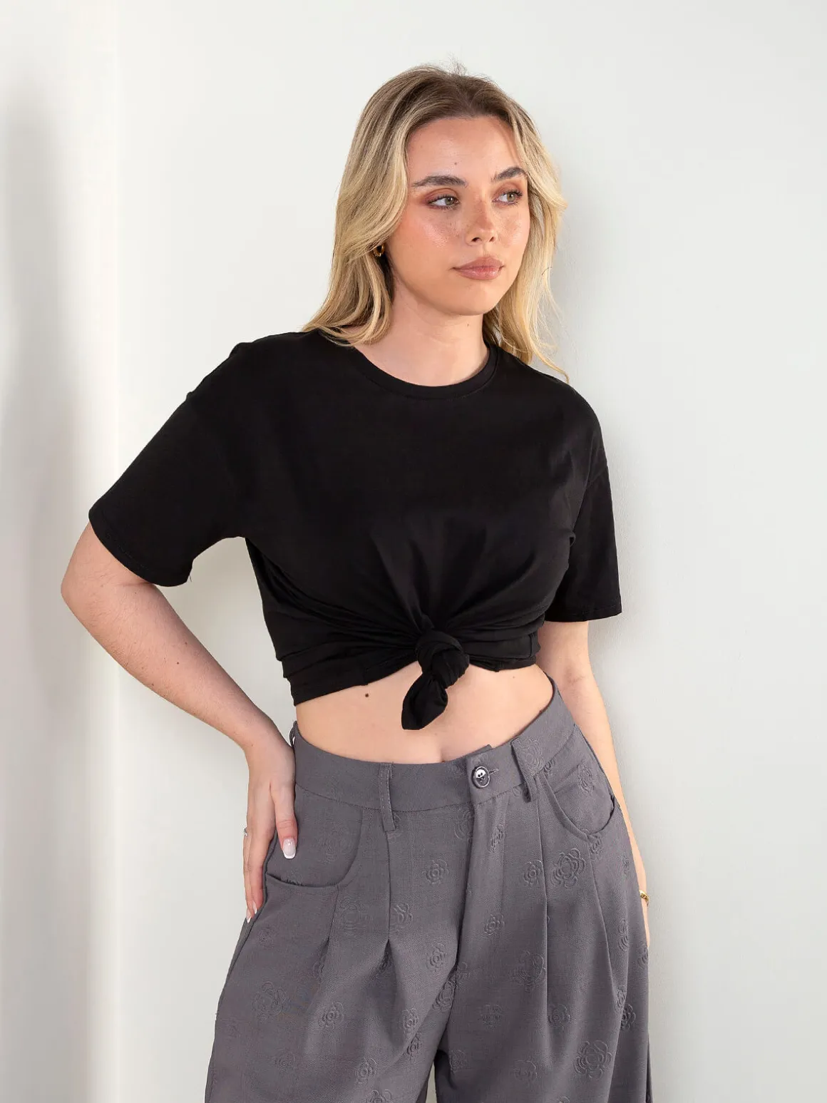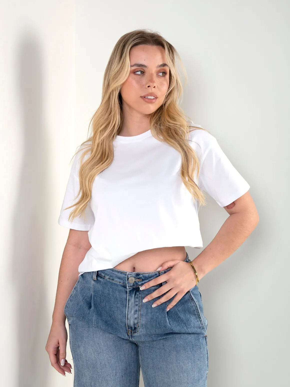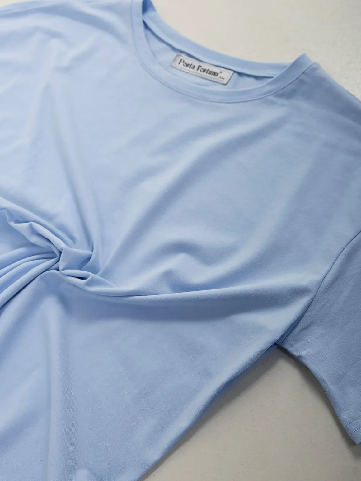 T-shirt básica com decote redondo e manga curta. Uma peça versátil e confortável ideal para combinar com jeans ou calças de alfaiataria para um look simples e atual.Altura da Modelo: 166 cm | Tamanho: S/M