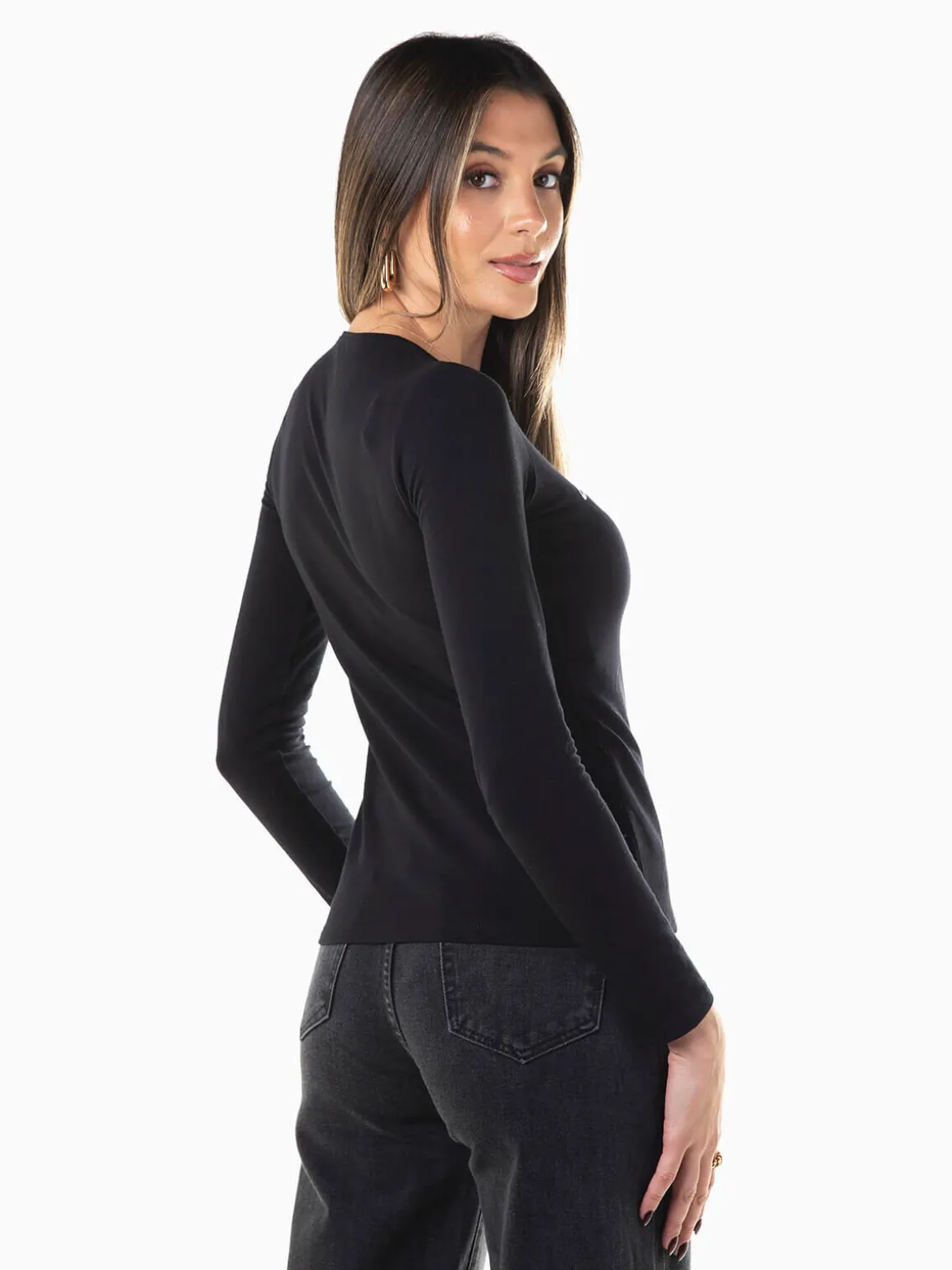 T-shirt de manga comprida com mensagem estampada no peito. T-shirt de algodão com interior cardado e decote redondo. Altura da Modelo: 175 cm | Tamanho: S